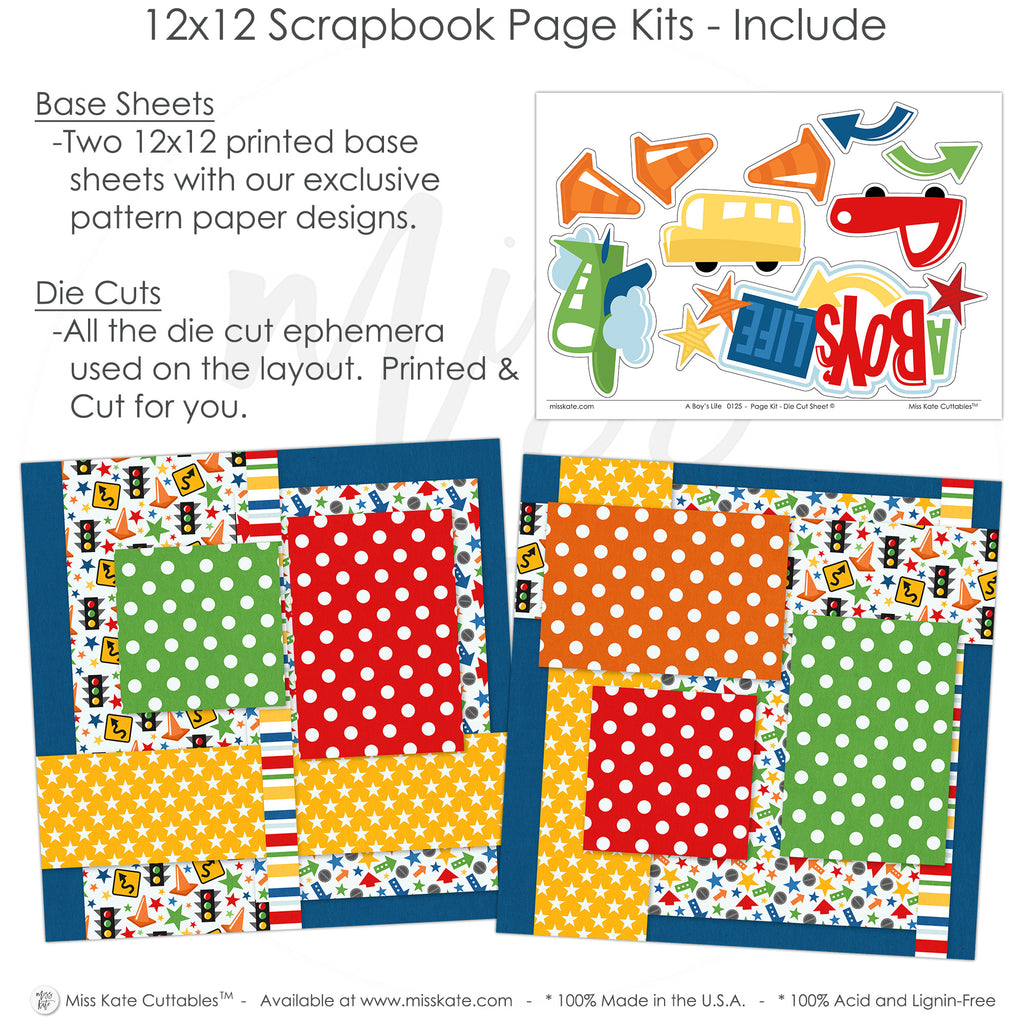 About our Page Kits Our Page Kits include proprietary Miss Kate Pattern Paper and Miss Kate Die Cuts. The cover page features full-color high-resolution pictures of the assembled layouts. Die cuts are left in the sheet and ready for you to easily pop out, this allows you to see them all spread out and helps prevent any accidental loss. These page kits are adorable, easy to do, and at such a great price! We love our Page Kits and think you will too! |