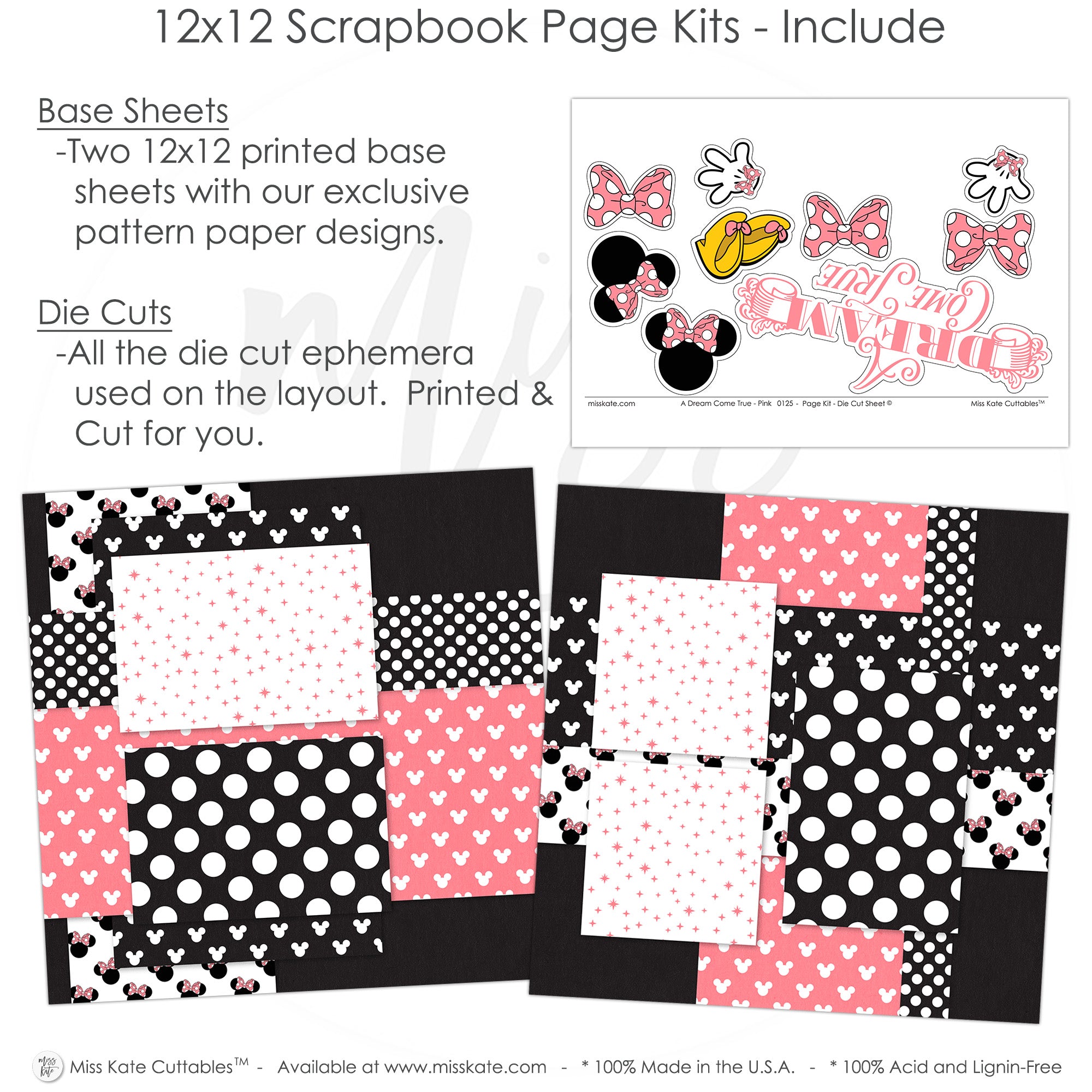 About our Page Kits Our Page Kits include proprietary Miss Kate Pattern Paper and Miss Kate Die Cuts. The cover page features full-color high-resolution pictures of the assembled layouts. Die cuts are left in the sheet and ready for you to easily pop out, this allows you to see them all spread out and helps prevent any accidental loss. These page kits are adorable, easy to do, and at such a great price! We love our Page Kits and think you will too! |