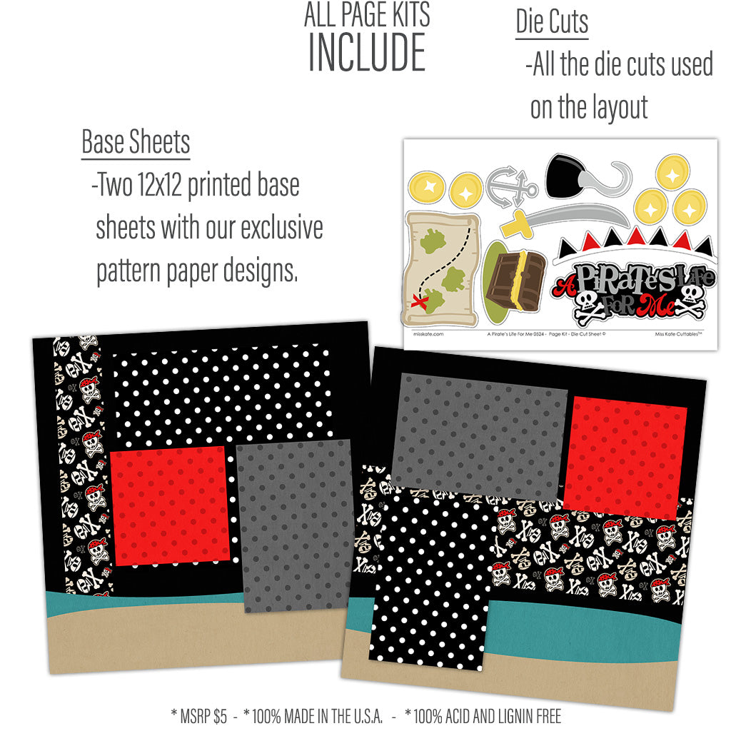 About our Page Kits Our Page Kits include proprietary Miss Kate Pattern Paper and Miss Kate Die Cuts. The cover page features full-color high-resolution pictures of the assembled layouts. Die cuts are left in the sheet and ready for you to easily pop out, this allows you to see them all spread out and helps prevent any accidental loss. These page kits are adorable, easy to do, and at such a great price! We love our Page Kits and think you will too! |