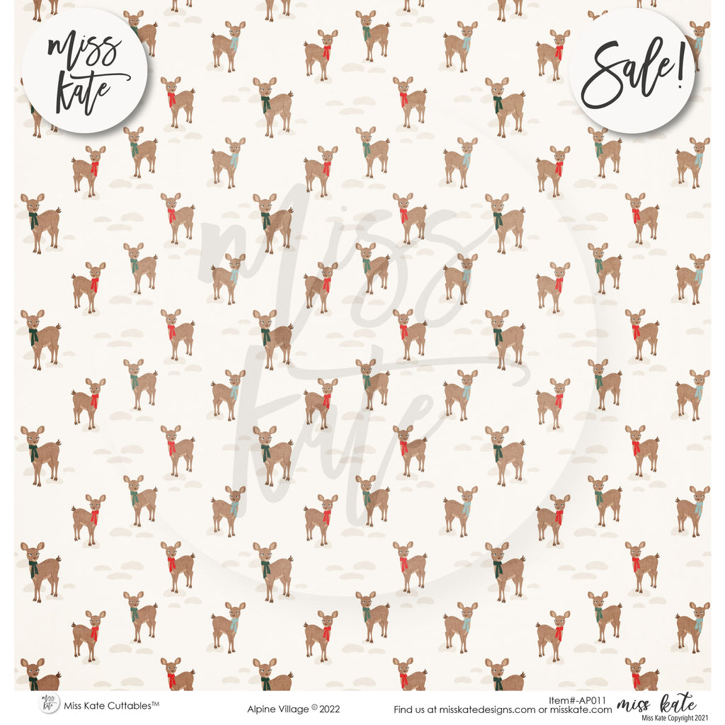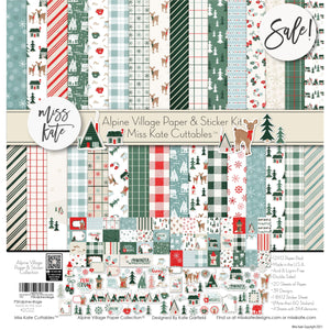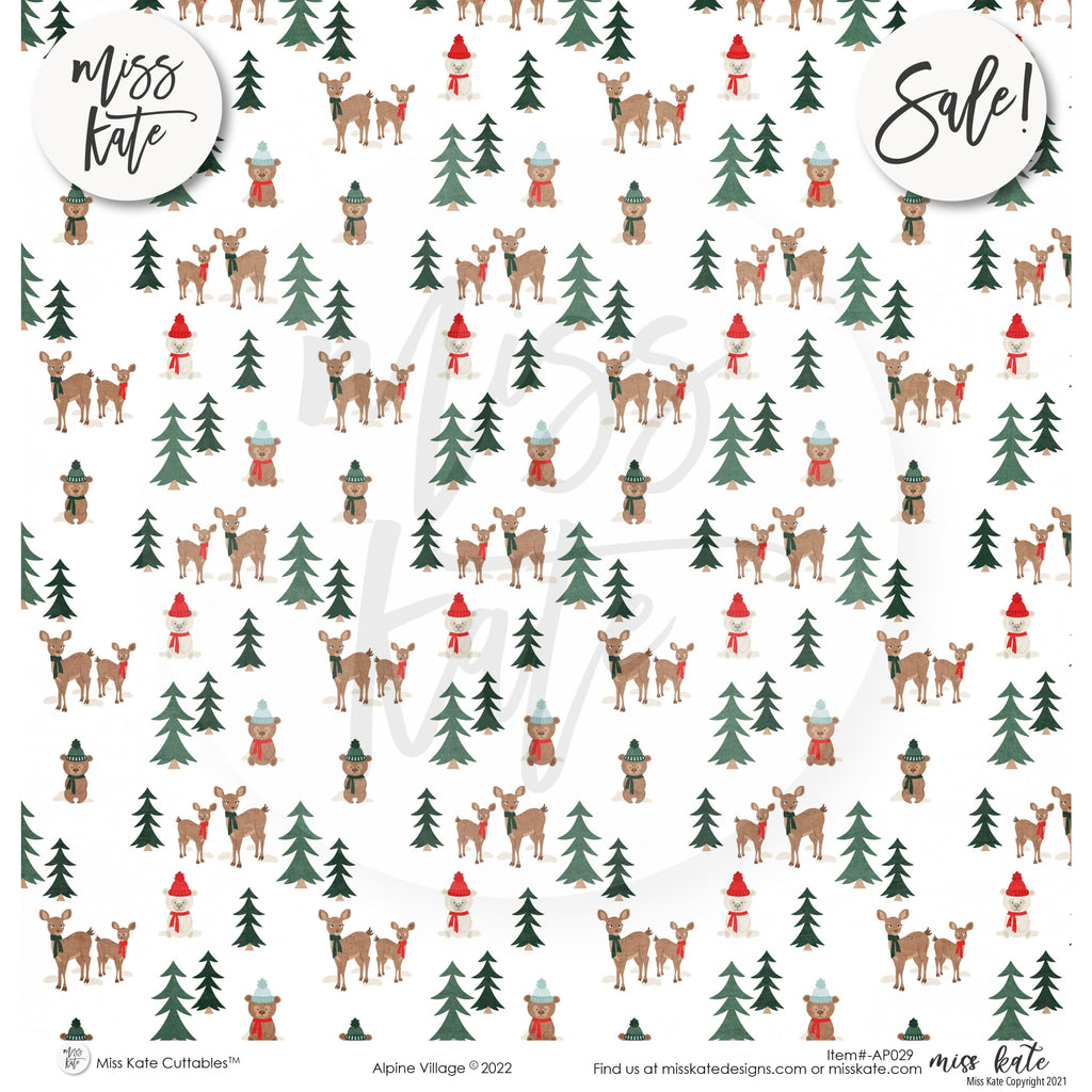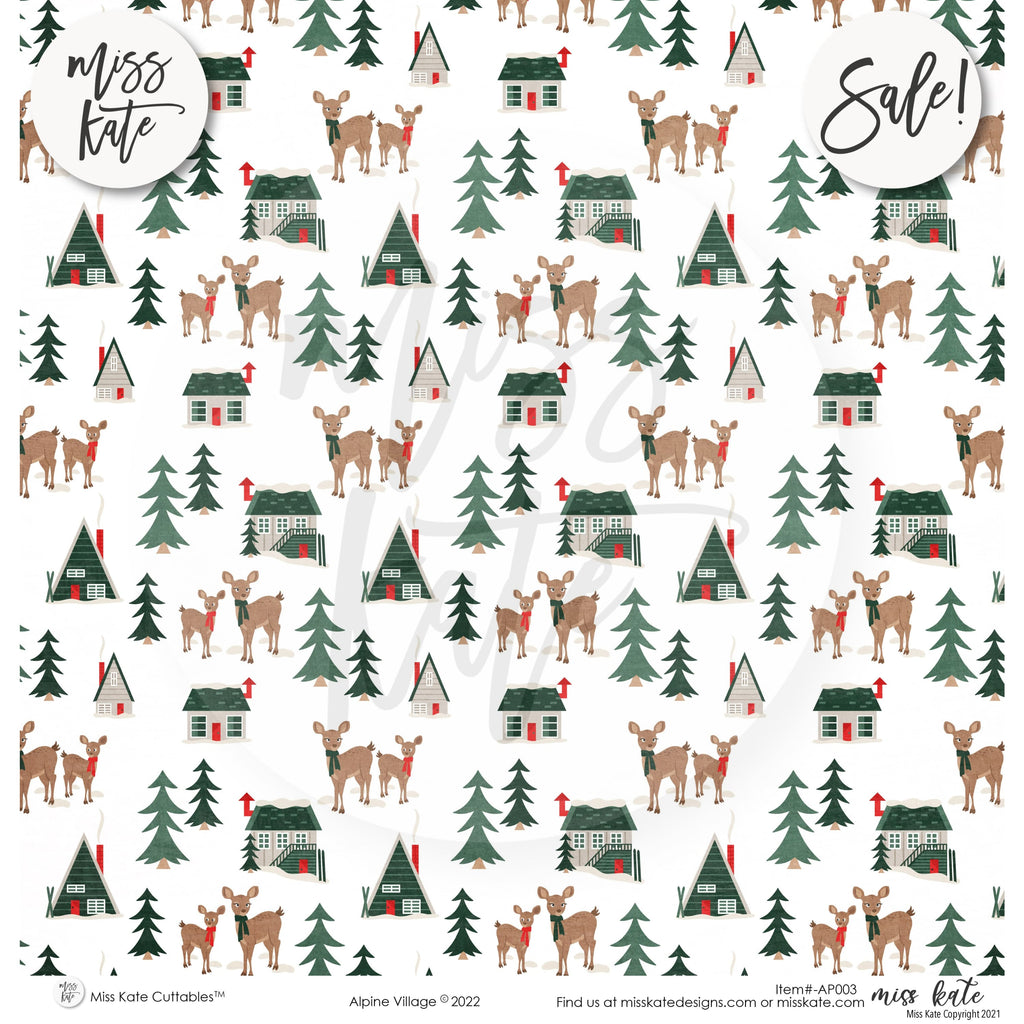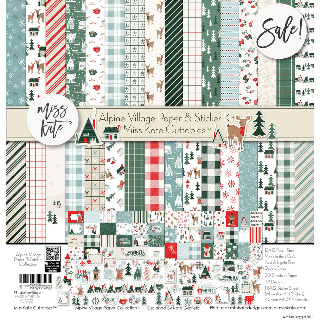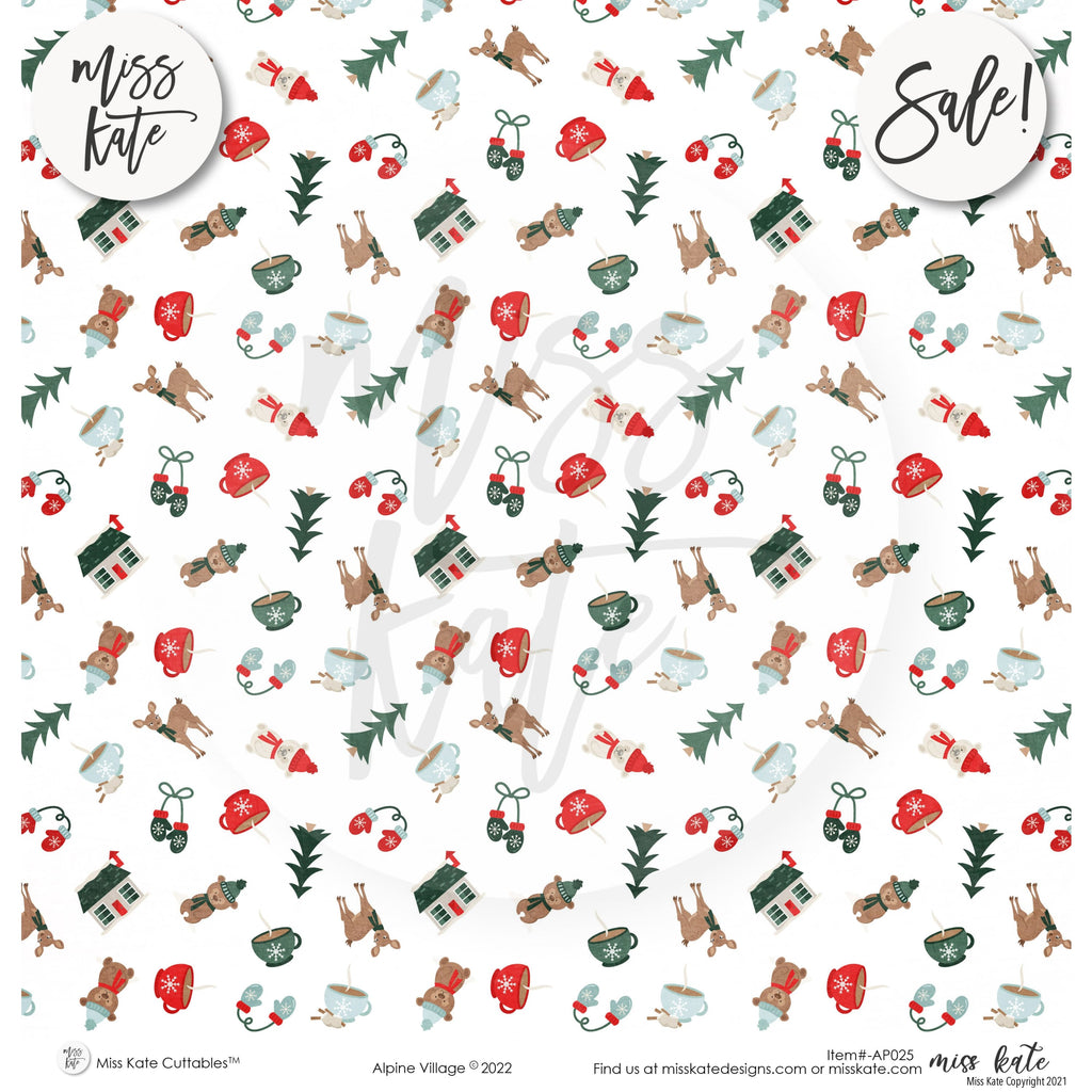 Alpine Village Double Sided Paper- Alpine Village is perfect for outdoor winter activities including skiing, snowboarding, tubing, snowmobiling, etc. With some blues, reds, and greens it evokes a modern take on winter. Includes some outdoor life including a mom deer, a baby deer, a bear, and a polar bear. It would be cute for a cozy, snowed in winter cabin drinking hot cocoa after some snow fun! It has 4-3X4 elements for embellishing and journaling, (if you don't want to use those there is always printing on the back). Stickers would be perfect for a planner!