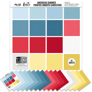 Cardstock Description Single-Sided Linen-Printed Smooth Cardstock Kate created 16 custom colors that perfectly match our Summer Vacation designs, added her exclusive Linen Pattern, and combined them for you in this 32 sheet pack. Colors Match It has NEVER been this easy to match cardstock with paper! About our Paper Our cardstock sheets provide a stiff, strong surface to work on that has a linen feel. You will find that it cuts beautifully in your Cricut, Cameo, or any other cutting machine. It is perfect for backgrounds, die cuts, photo mats, and any other crafting project. We love our Linen Printed Card Stock and think you will too! THEME: Vacation, summer, beach, ocean |