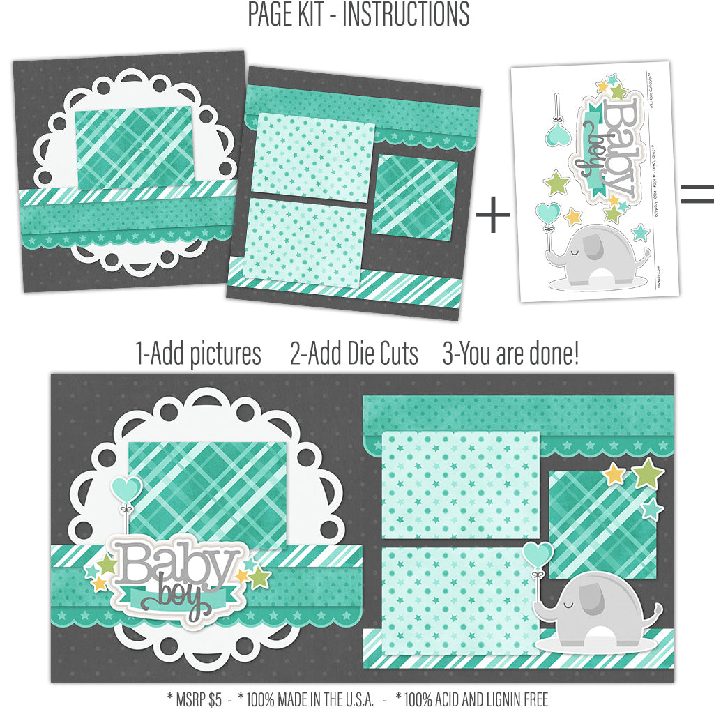 What to expect with our Page KitsWhen you open your kit, you will discover and love that all of the pattern paper designs are pre printed and completed for you! No more cutting long strips of pattern paper and gluing them together.