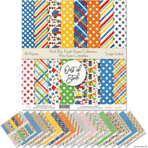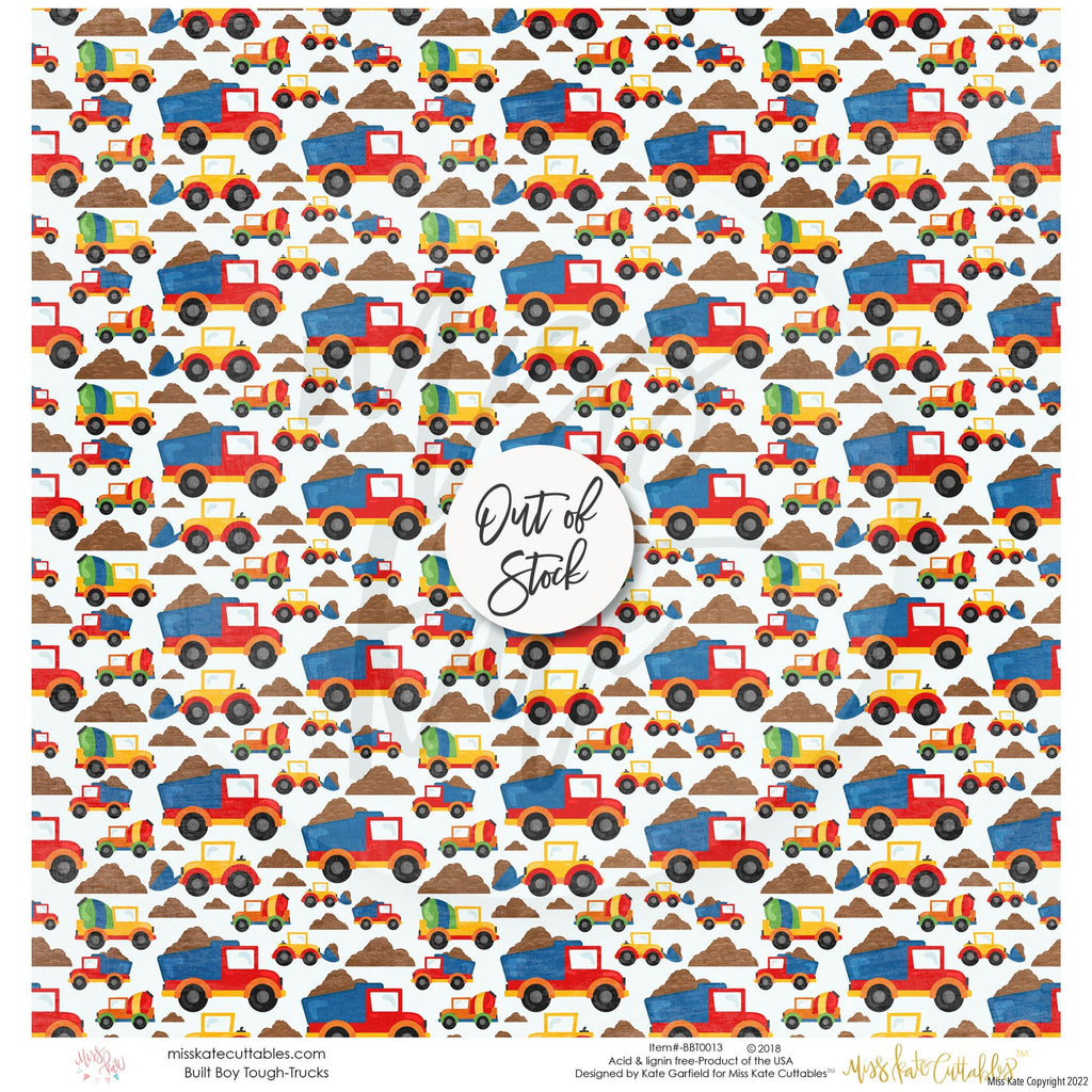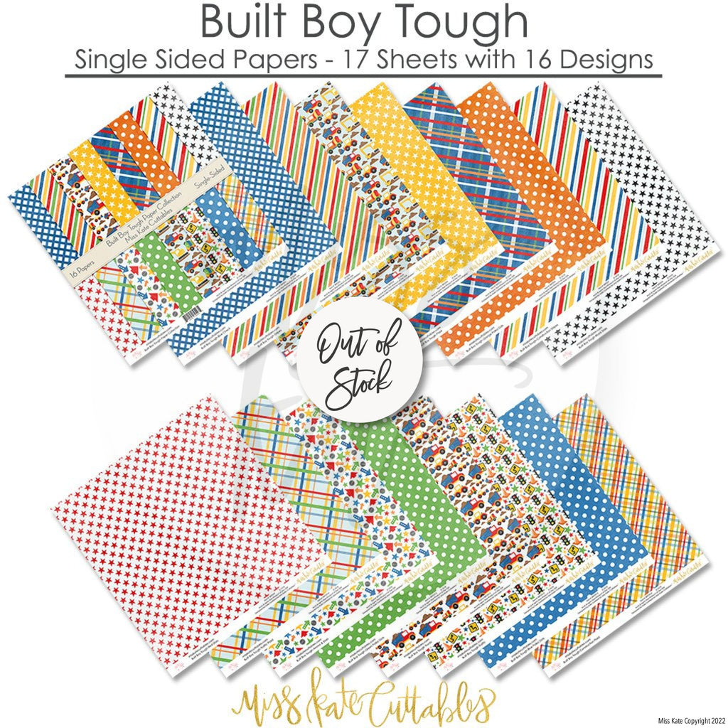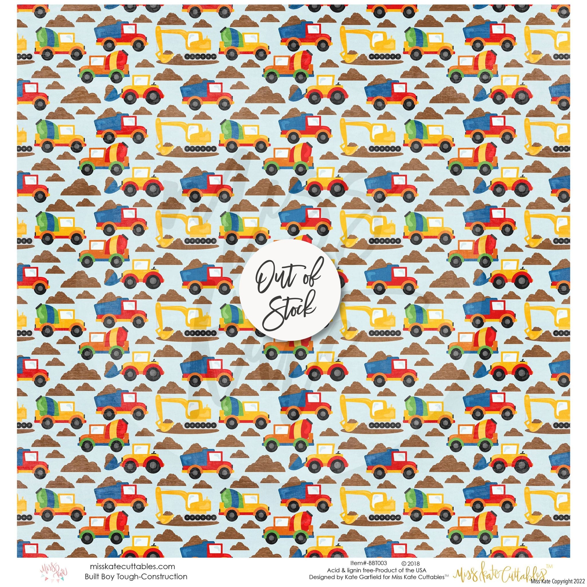 The Built Boy Tough paper pack has a wide variety of Patterns including Polka Dots, Stripes, Plaid, Check, Stars, Dump Truck, Bulldozer, Excavator, Dirt, Stop Lights, Traffic Signs and Traffic Cones. Kids Play Time Construction Theme Playtime