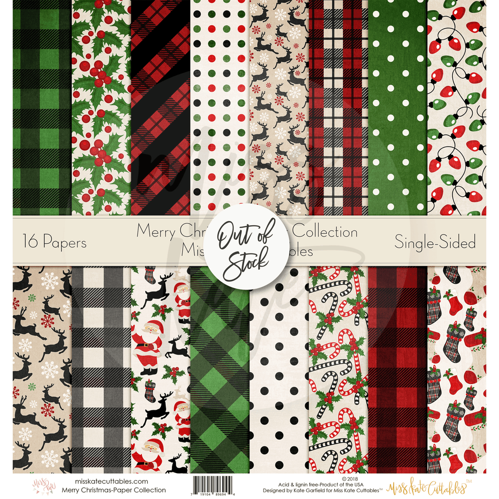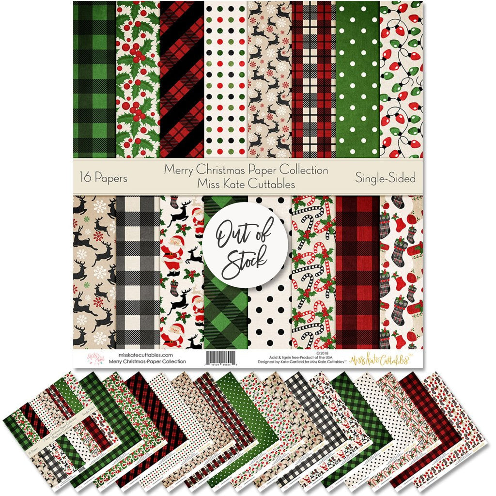 The Merry Christmas paper pack has a wide variety of Patterns including Polka Dots, Stripes, Plaid, Argyle, Stars, Wrapping Paper, Red, Green, and Tan. Santa Claus Holiday December Theme