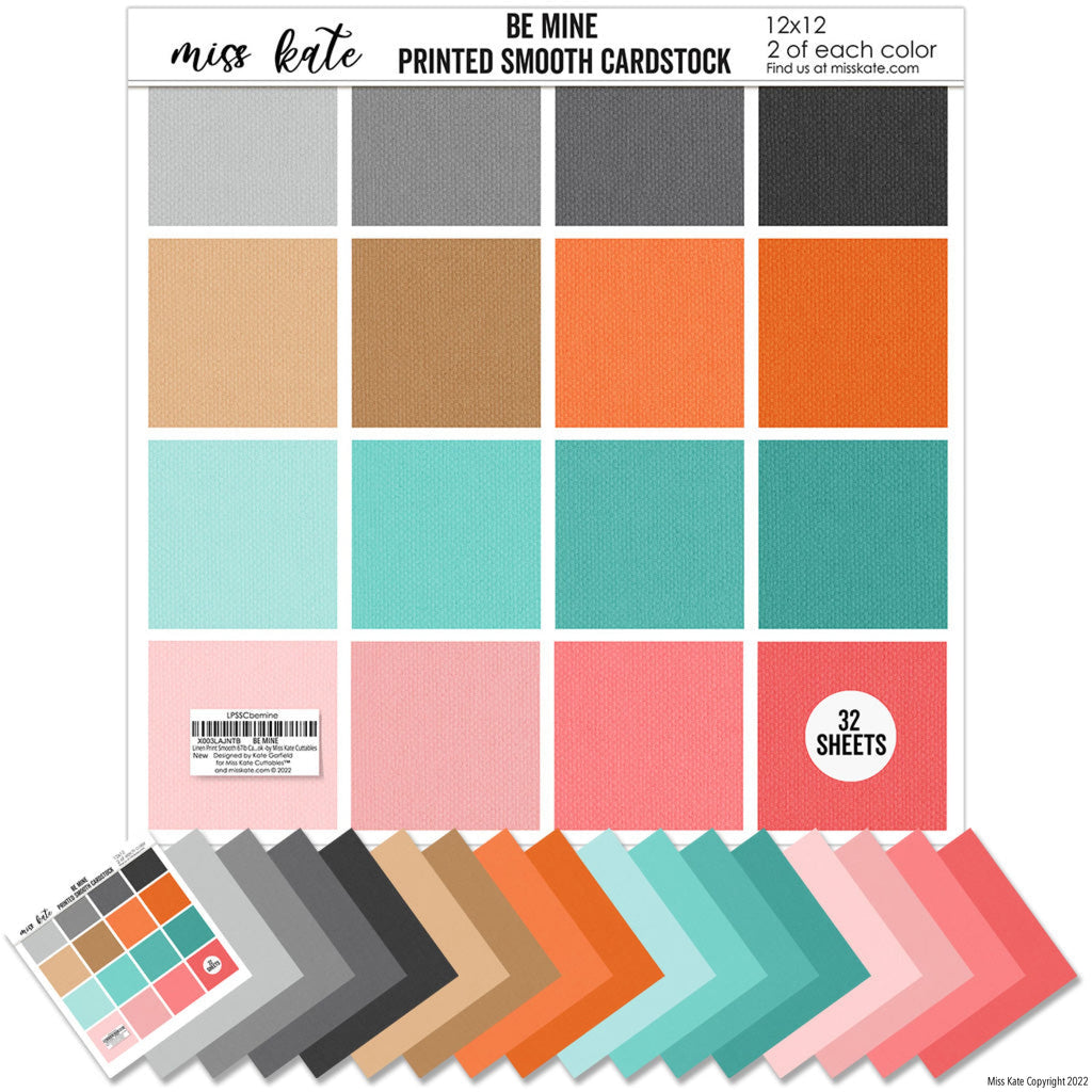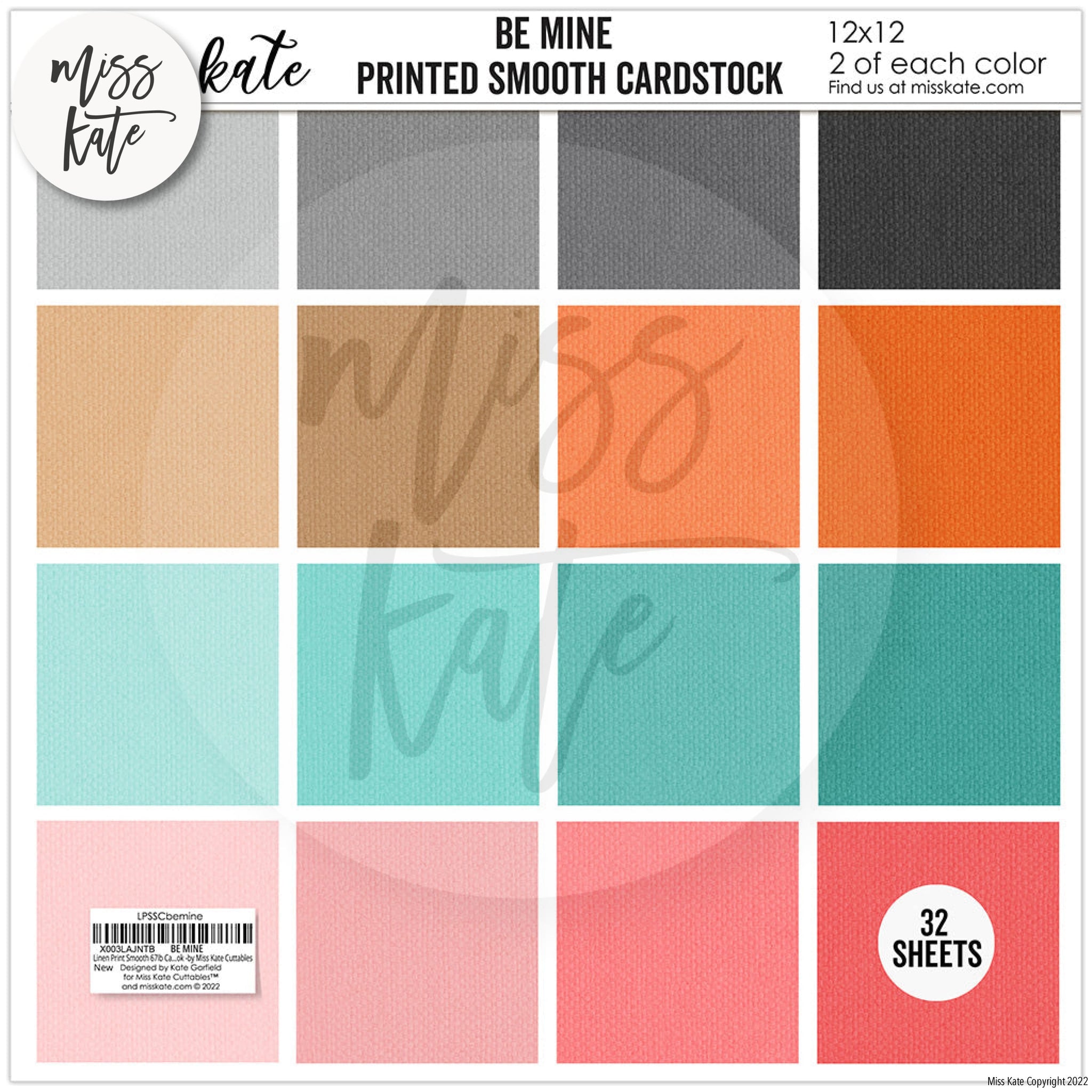 Cardstock Description Single-Sided Linen-Printed Smooth Cardstock Kate created 16 custom colors that perfectly match our Be Mine designs, added her exclusive Linen Pattern, and combined them for you in this 32 sheet pack. Colors Match It has NEVER been this easy to match cardstock with paper! About our Paper Our cardstock sheets provide a stiff, strong surface to work on that has a linen look. You will find that it cuts beautifully in your Cricut, Cameo, or any other cutting machine. It is perfect for backgrounds, die cuts, photo mats, and any other crafting project. We love our Linen Printed Card Stock and think you will too! |