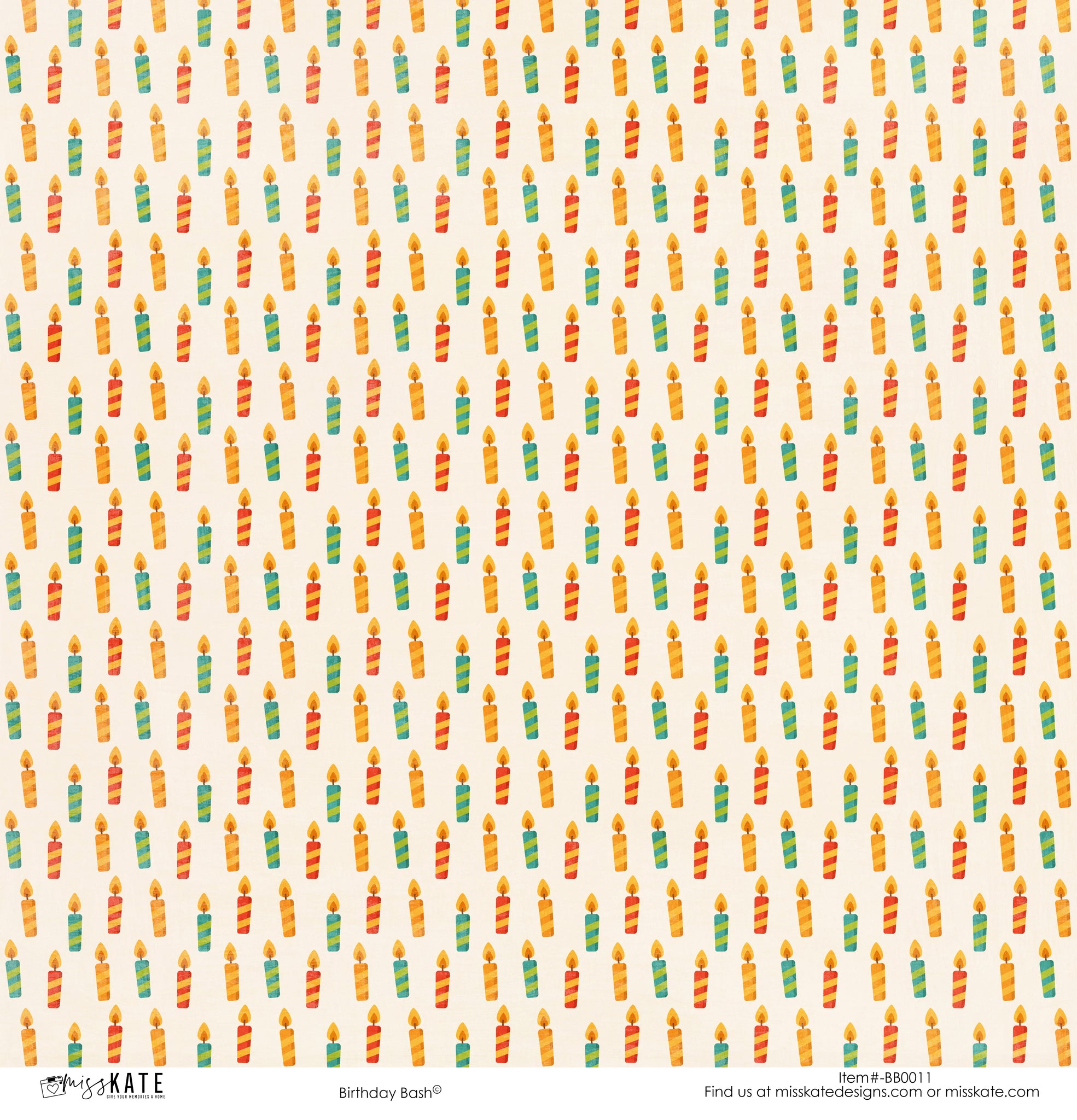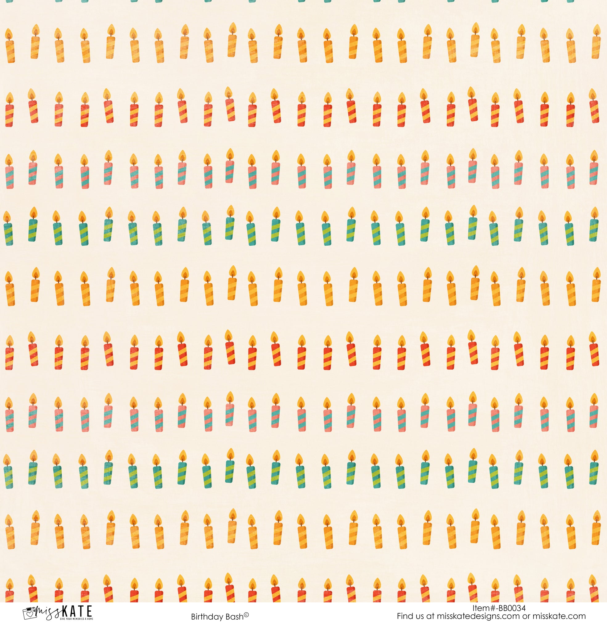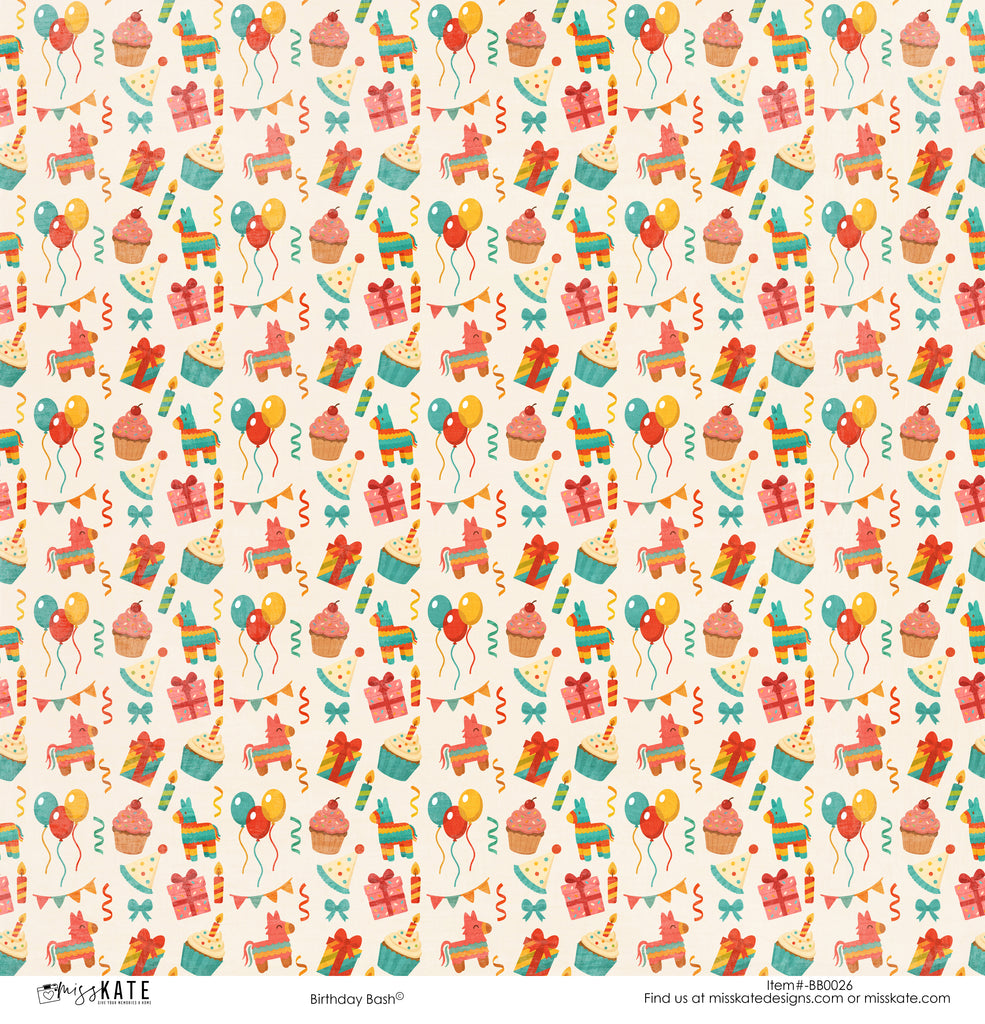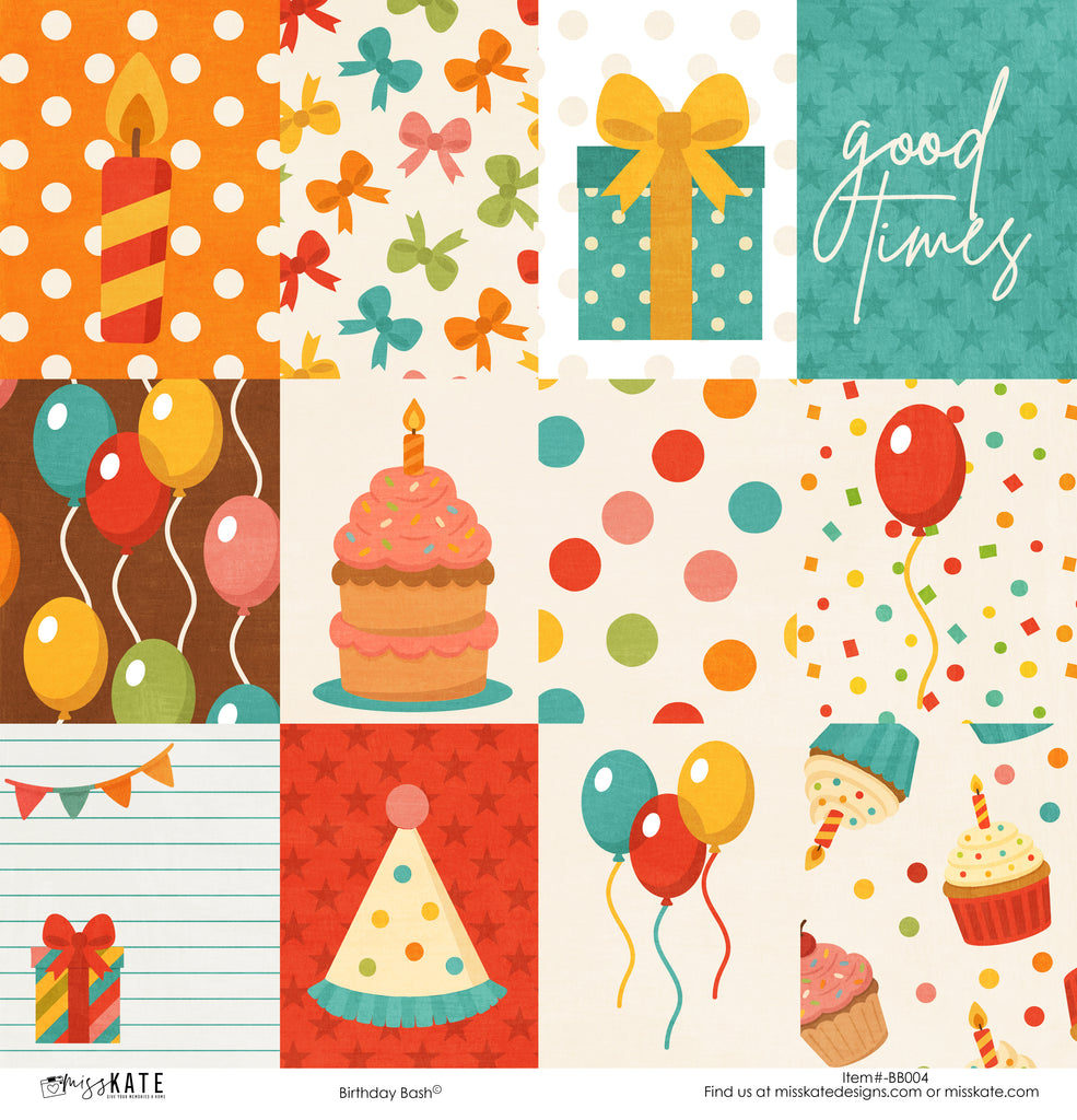 This lively “Birthday Bash” paper collection bursts with cheerful color and festive celebration. The cover sheet showcases a vibrant mix of patterned papers in oranges, yellows, aquas, pinks, and greens, featuring balloons, candles, cakes, confetti, stripes, plaids, and playful polka dots. Across the center, a bold “Birthday Bash” title—decorated with balloons and a slice of cake—sets a joyful tone. Below, an array of coordinating stickers and die-cut elements highlights everything you’d need for birthday crafting: cupcakes, presents, banners, party hats, numbers, bows, and themed phrases for both boys and girls. With 20 double-sided sheets and more than 60 stickers, this kit offers a fun, cohesive palette perfect for scrapbooking birthday parties, making cards, or crafting party decorations. The whole set feels bright, happy, and ready to celebrate life’s sweetest moments.