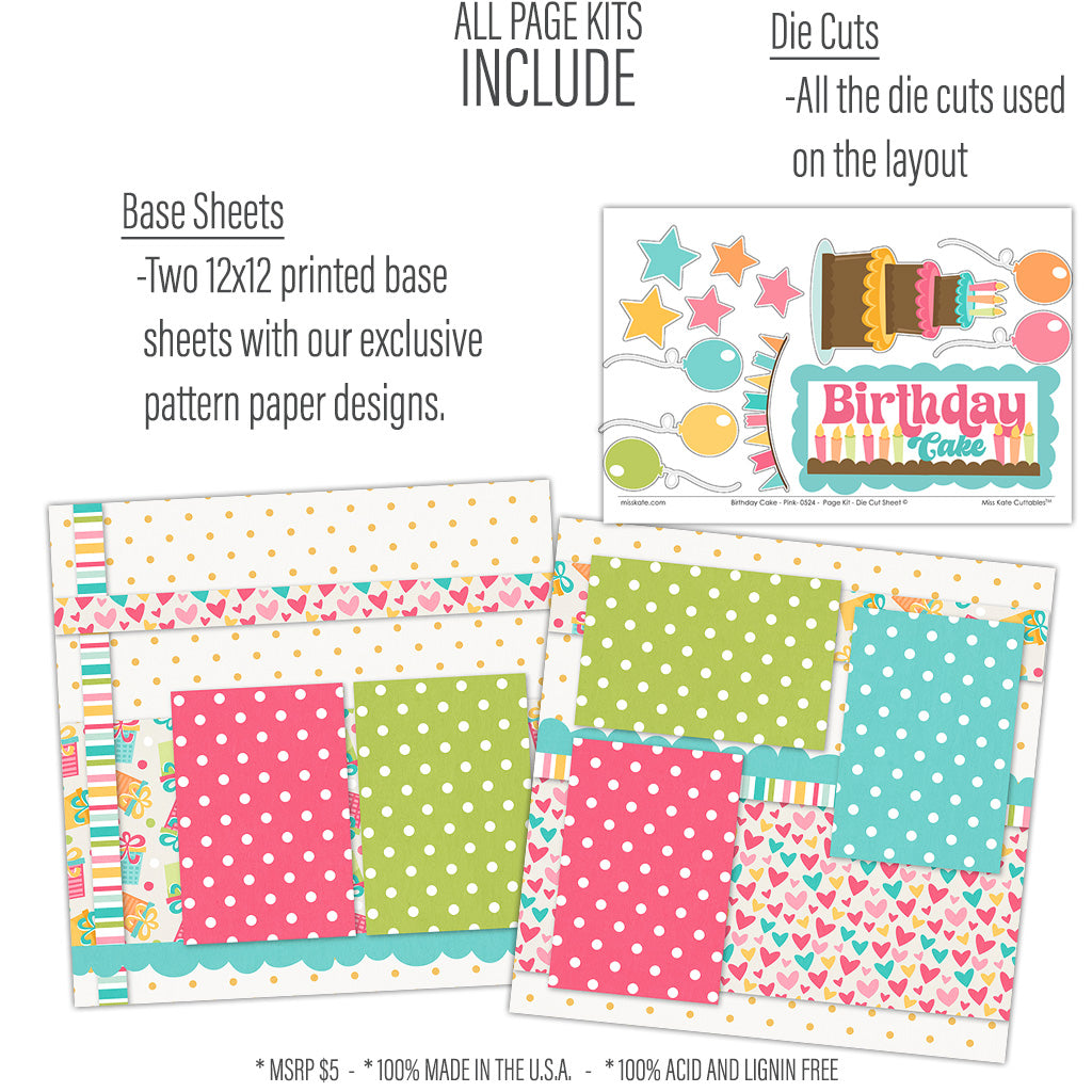 About our Page Kits Our Page Kits include proprietary Miss Kate Pattern Paper and Miss Kate Die Cuts. The cover page features full-color high-resolution pictures of the assembled layouts. Die cuts are left in the sheet and ready for you to easily pop out, this allows you to see them all spread out and helps prevent any accidental loss. These page kits are adorable, easy to do, and at such a great price! We love our Page Kits and think you will too! |