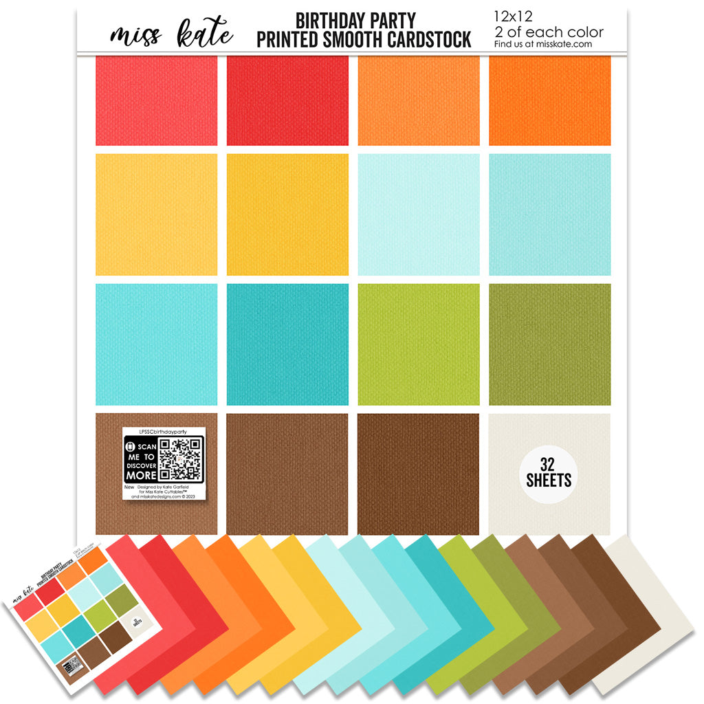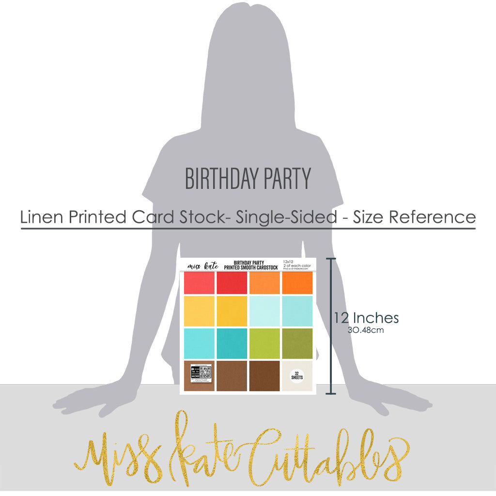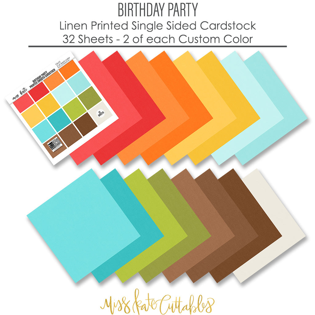 Cardstock Description Single-Sided Linen-Printed Smooth Cardstock Kate created 16 custom colors that perfectly match our Birthday Party designs, added her exclusive Linen Pattern, and combined them for you in this 32 sheet pack. Colors Match It has NEVER been this easy to match cardstock with paper! About our Paper Our cardstock sheets provide a stiff, strong surface to work on that has a linen feel. You will find that it cuts beautifully in your Cricut, Cameo, or any other cutting machine. It is perfect for backgrounds, die cuts, photo mats, and any other crafting project. We love our Linen Printed Card Stock and think you will too! |