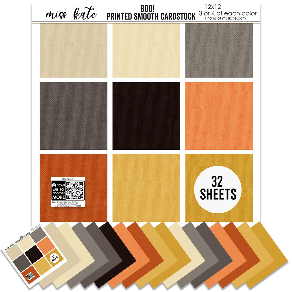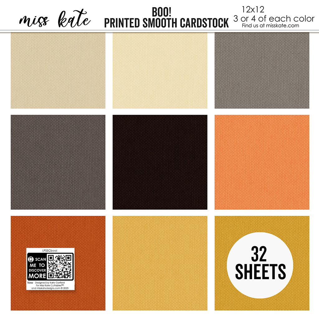Boo!ColorsKate created 9 custom colors that perfectly match our Boo! designs, added her exclusive Linen Pattern, and combined them for you in this 32 sheet pack.