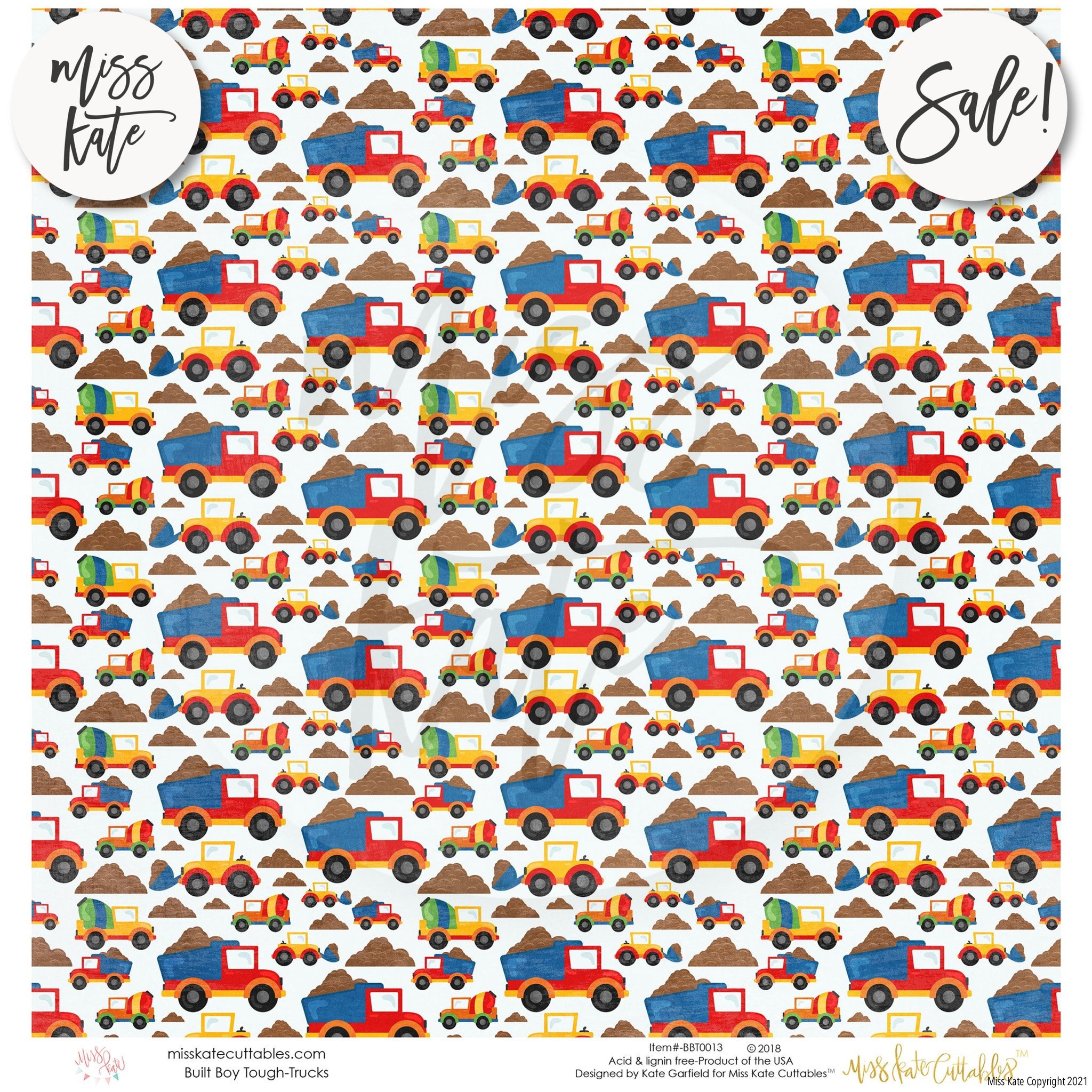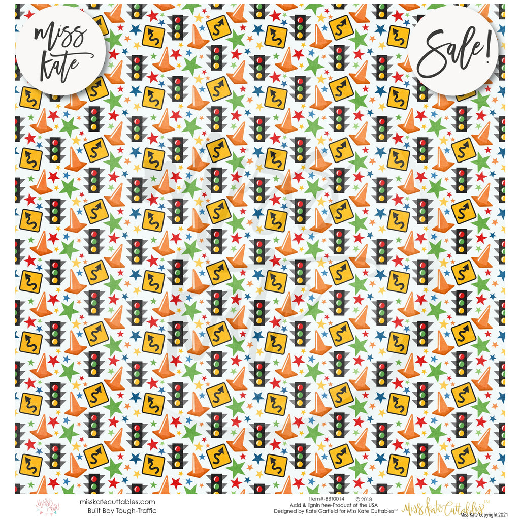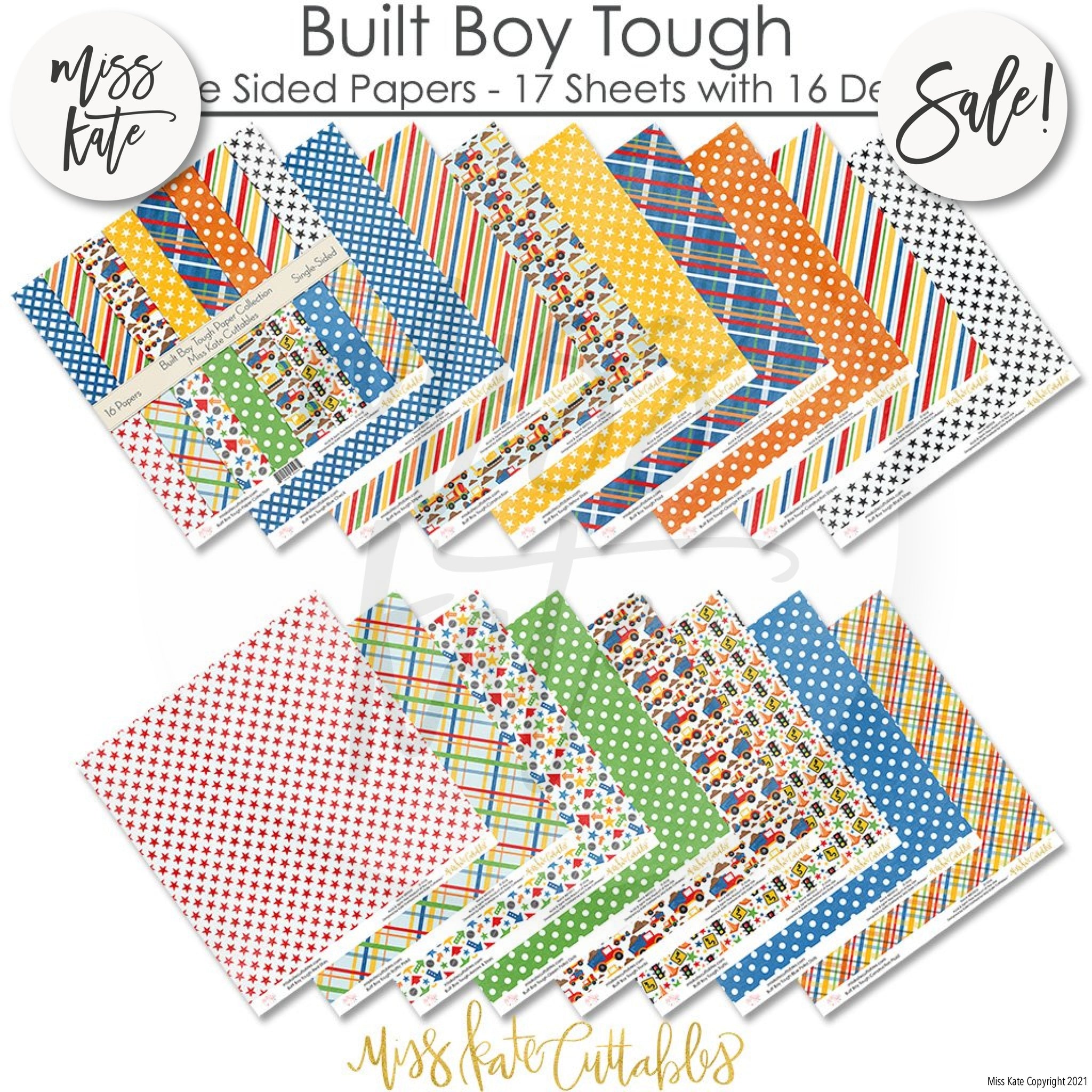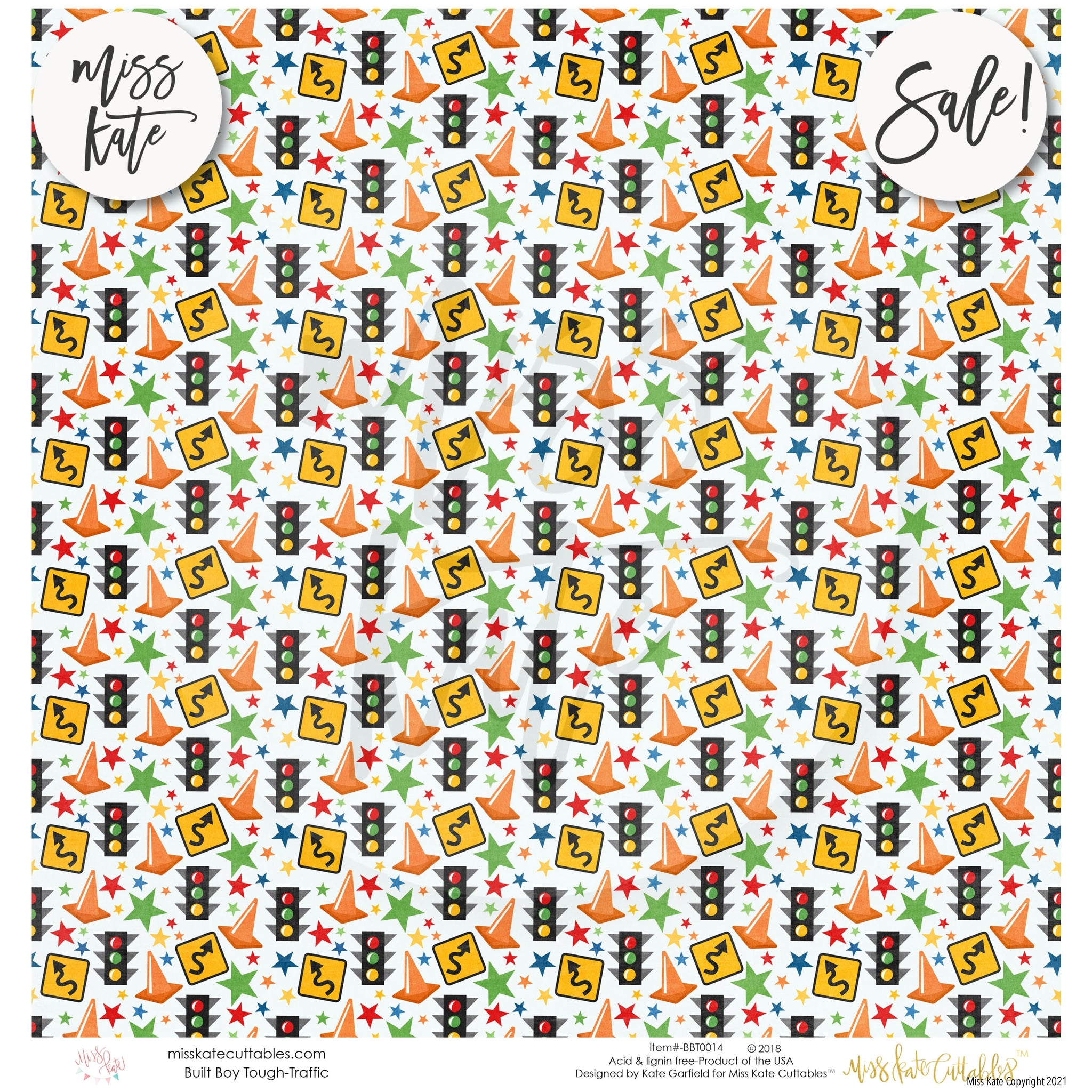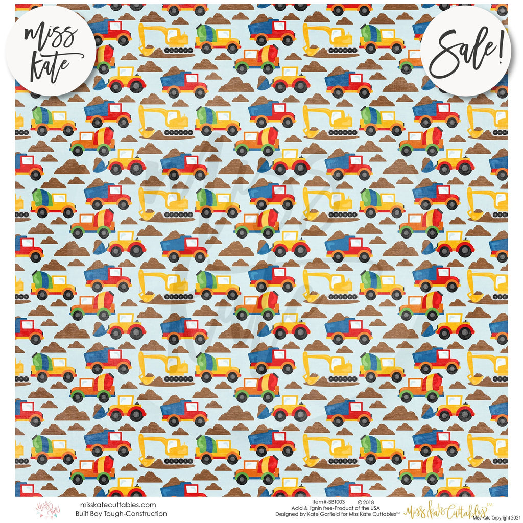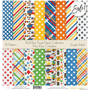 The Built Boy Tough paper pack has a wide variety of Patterns including Polka Dots, Stripes, Plaid, Check, Stars, Dump Truck, Bulldozer, Excavator, Dirt, Stop Lights, Traffic Signs and Traffic Cones. Kids Play Time Construction Theme Playtime