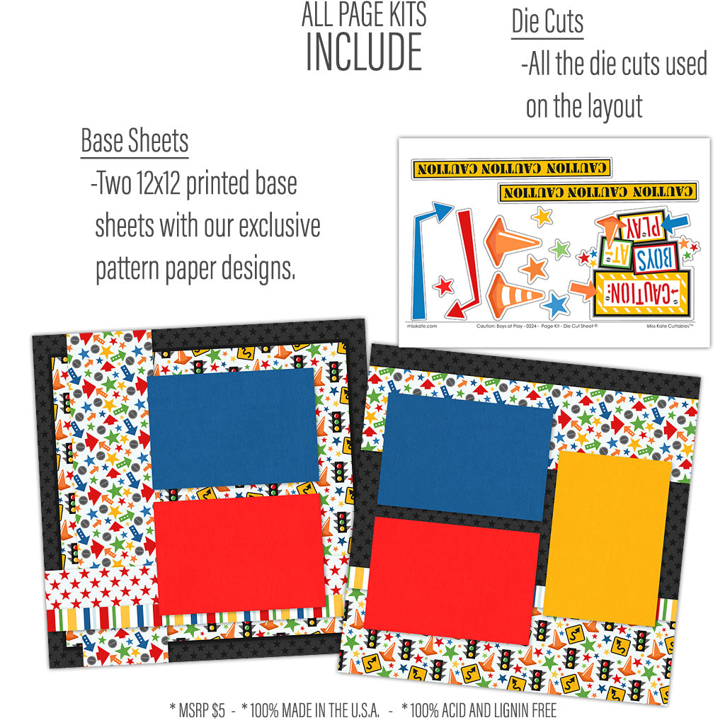About our Page Kits Our Page Kits include proprietary Miss Kate Pattern Paper and Miss Kate Die Cuts. The cover page features full-color high-resolution pictures of the assembled layouts. Die cuts are left in the sheet and ready for you to easily pop out, this allows you to see them all spread out and helps prevent any accidental loss. These page kits are adorable, easy to do, and at such a great price! We love our Page Kits and think you will too! |