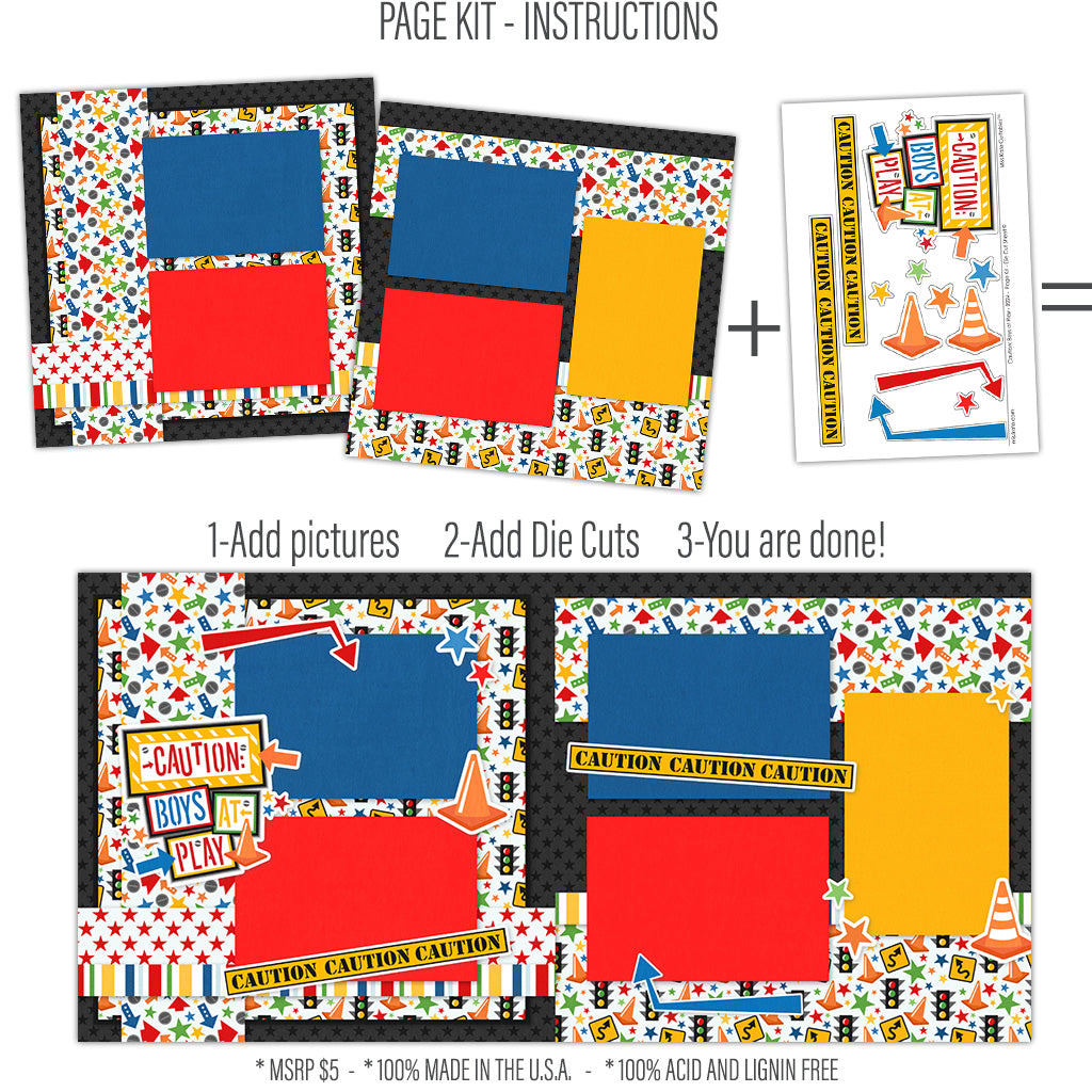 What to expect with our Page KitsWhen you open your kit, you will discover and love that all of the pattern paper designs are pre printed and completed for you! No more cutting long strips of pattern paper and gluing them together.