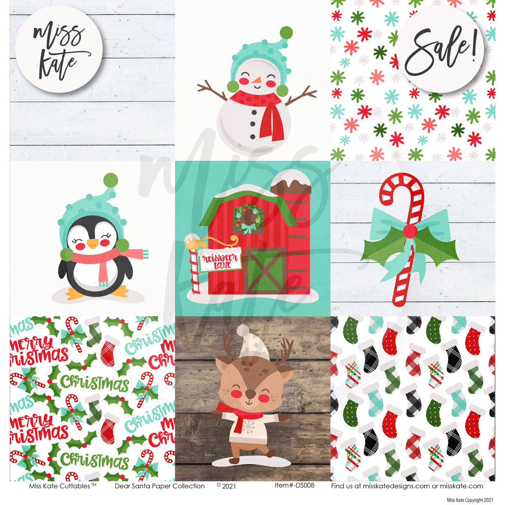 The Dear Santa Double Sided Paper- The Dear Santa Scrapbook Paper has a wide variety of patterns including Snowflakes, Buffalo Check, Penguins with Sweaters and Beanies, Plaid, Argyle, Peace, Joy, Noel, Wreaths, Owls, Foxes, Raccoons, Snowman, Trees, Stockings, Stripes, Santa, Ho Ho Ho, Candy Canes, Bows, Holly Berry, Christmas Tree on a Truck, Reindeer Lane Sign.