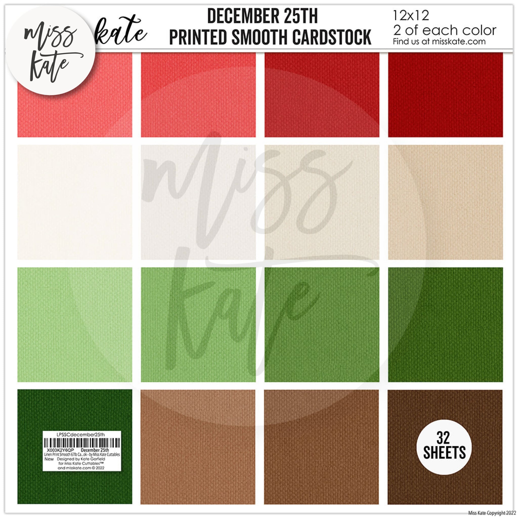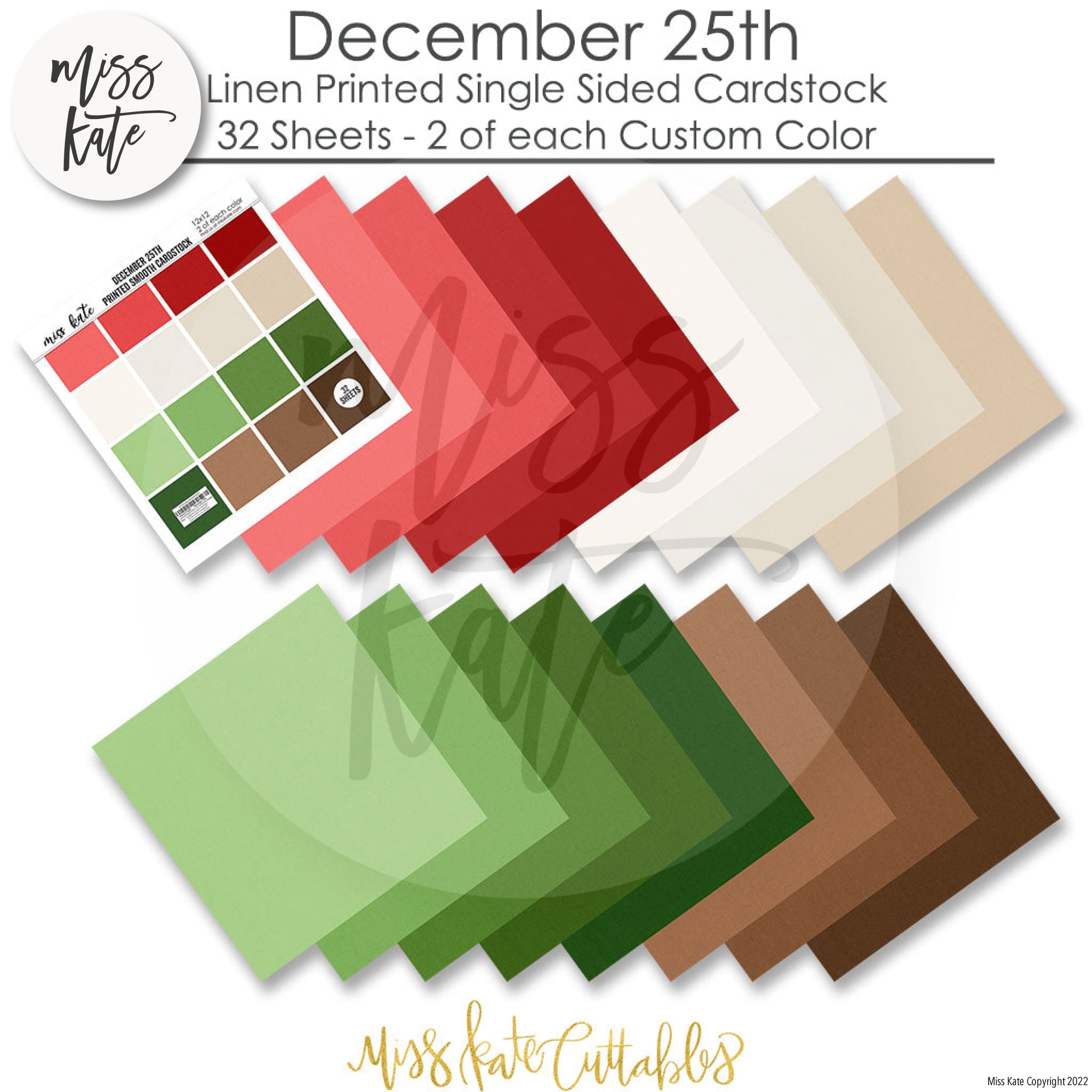 Cardstock Description Single-Sided Linen-Printed Smooth Cardstock Kate created 16 custom colors that perfectly match our December 25th designs, added her exclusive Linen Pattern, and combined them for you in this 32 sheet pack. Colors Match It has NEVER been this easy to match cardstock with paper! About our Paper Our cardstock sheets provide a stiff, strong surface to work on that has a linen feel. You will find that it cuts beautifully in your Cricut, Cameo, or any other cutting machine. It is perfect for backgrounds, die cuts, photo mats, and any other crafting project. We love our Linen Printed Card Stock and think you will too! THEME: Works with Santa Claus Holiday December 24th 25th Christmas Eve Night Before Christmas Jolly old Elf on the Shelf |