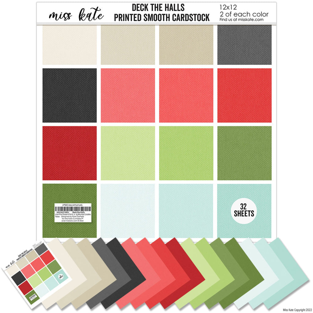 Cardstock Description Single-Sided Linen-Printed Smooth Cardstock Kate created 16 custom colors that perfectly match our Deck the Halls designs, added her exclusive Linen Pattern, and combined them for you in this 32 sheet pack. Colors Match It has NEVER been this easy to match cardstock with paper! About our Paper Our cardstock sheets provide a stiff, strong surface to work on that has a linen feel. You will find that it cuts beautifully in your Cricut, Cameo, or any other cutting machine. It is perfect for backgrounds, die cuts, photo mats, and any other crafting project. We love our Linen Printed Card Stock and think you will too! THEME: Christmas, Holidays, December, Santa, Christmas Eve, Winter. |