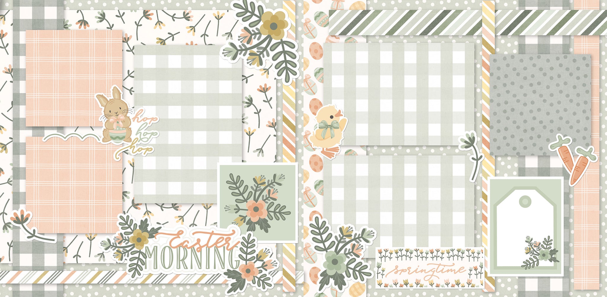 Die Cuts: All the die cuts you see on our layout picture, all cut out for you and ready to embellish your page kit!