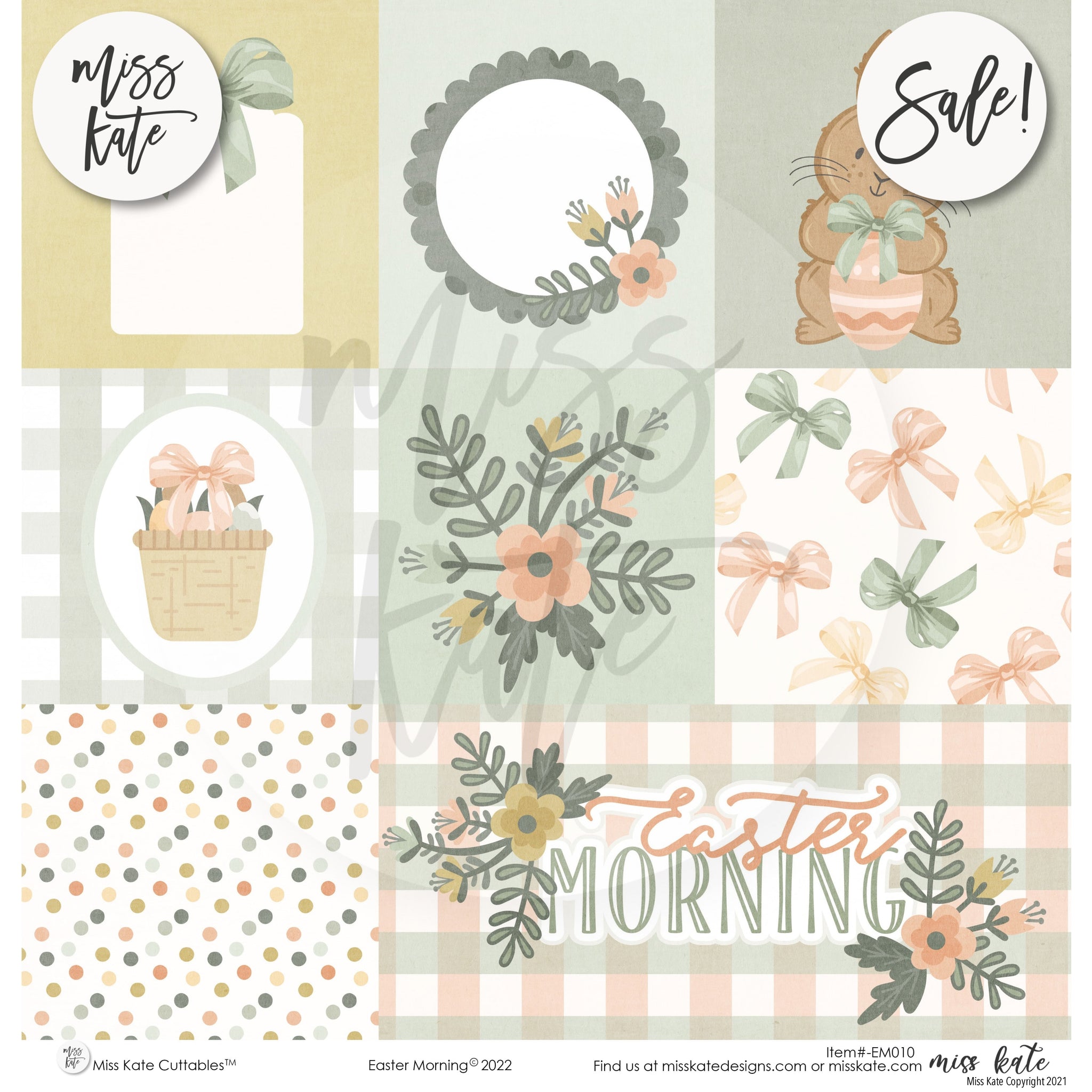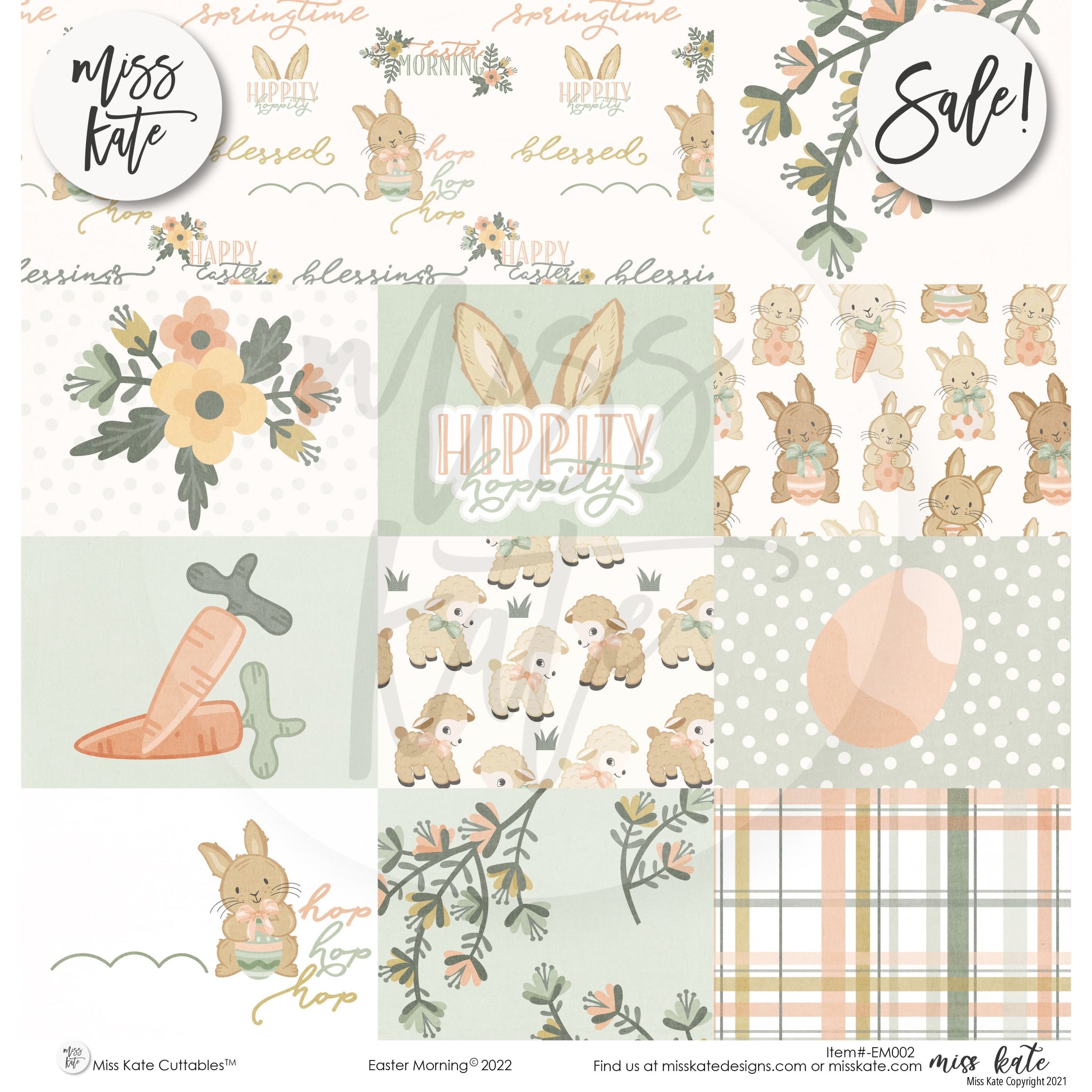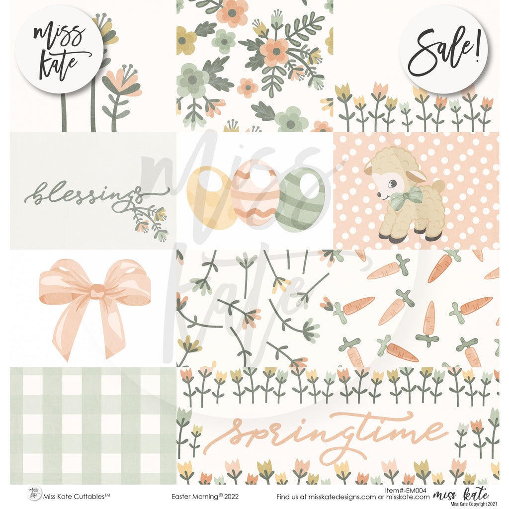 The Easter Morning Paper Pack- has a wide variety of patterns including polka dots, plaid, stripes, spring flowers, Easter bunny, chicks, Easter eggs, and Easter baskets, in cute modern colors.