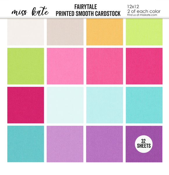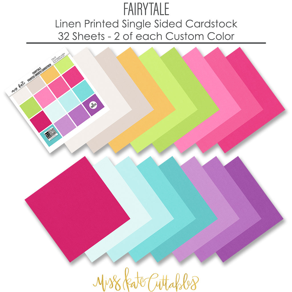 Cardstock Description Single-Sided Linen-Printed Smooth Cardstock Kate created 16 custom colors that perfectly match our Fairytale designs, added her exclusive Linen Pattern, and combined them for you in this 32 sheet pack. Colors Match It has NEVER been this easy to match cardstock with paper! About our Paper Our cardstock sheets provide a stiff, strong surface to work on that has a linen feel. You will find that it cuts beautifully in your Cricut, Cameo, or any other cutting machine. It is perfect for backgrounds, die cuts, photo mats, and any other crafting project. We love our Linen Printed Card Stock and think you will too! |