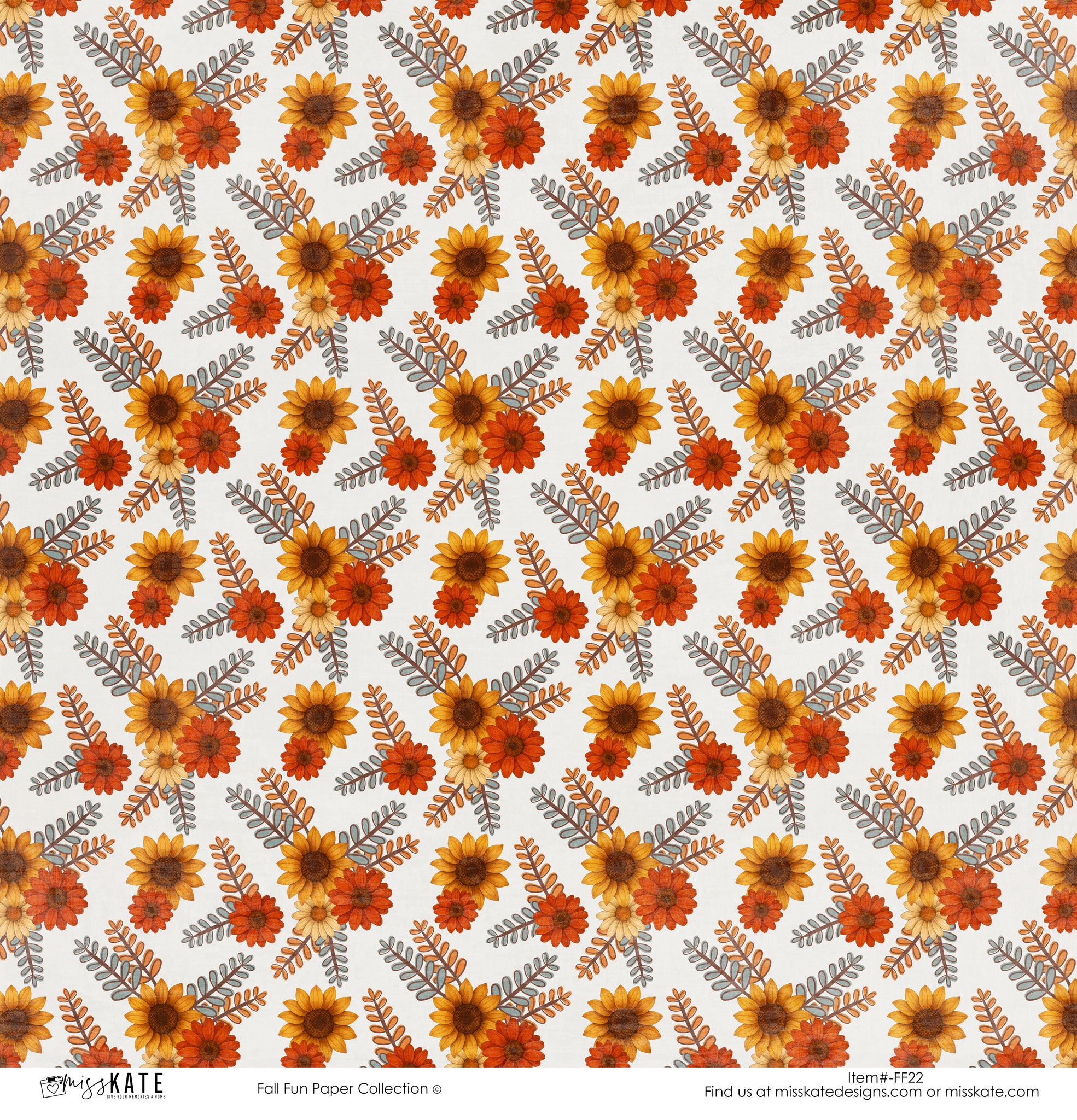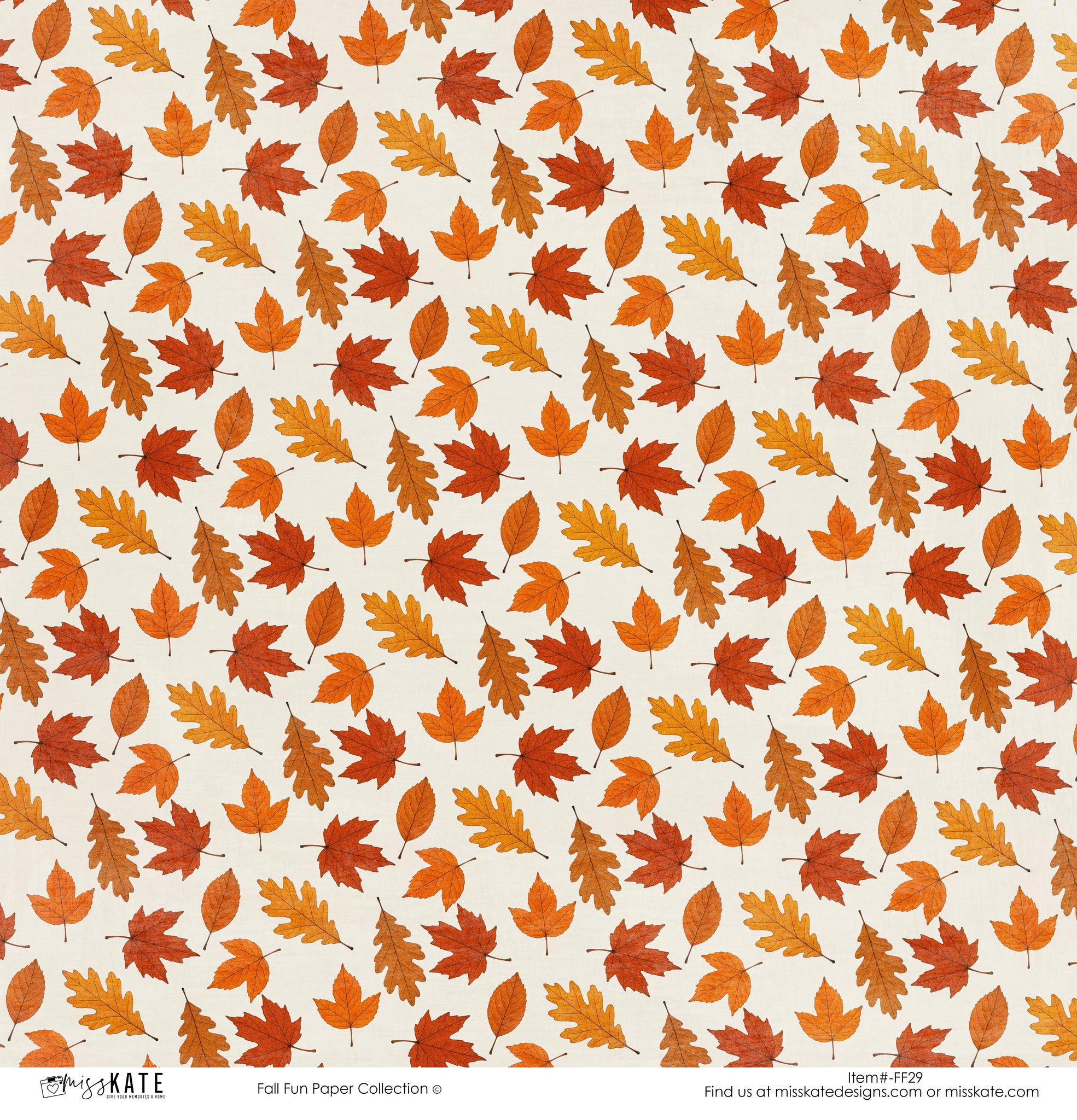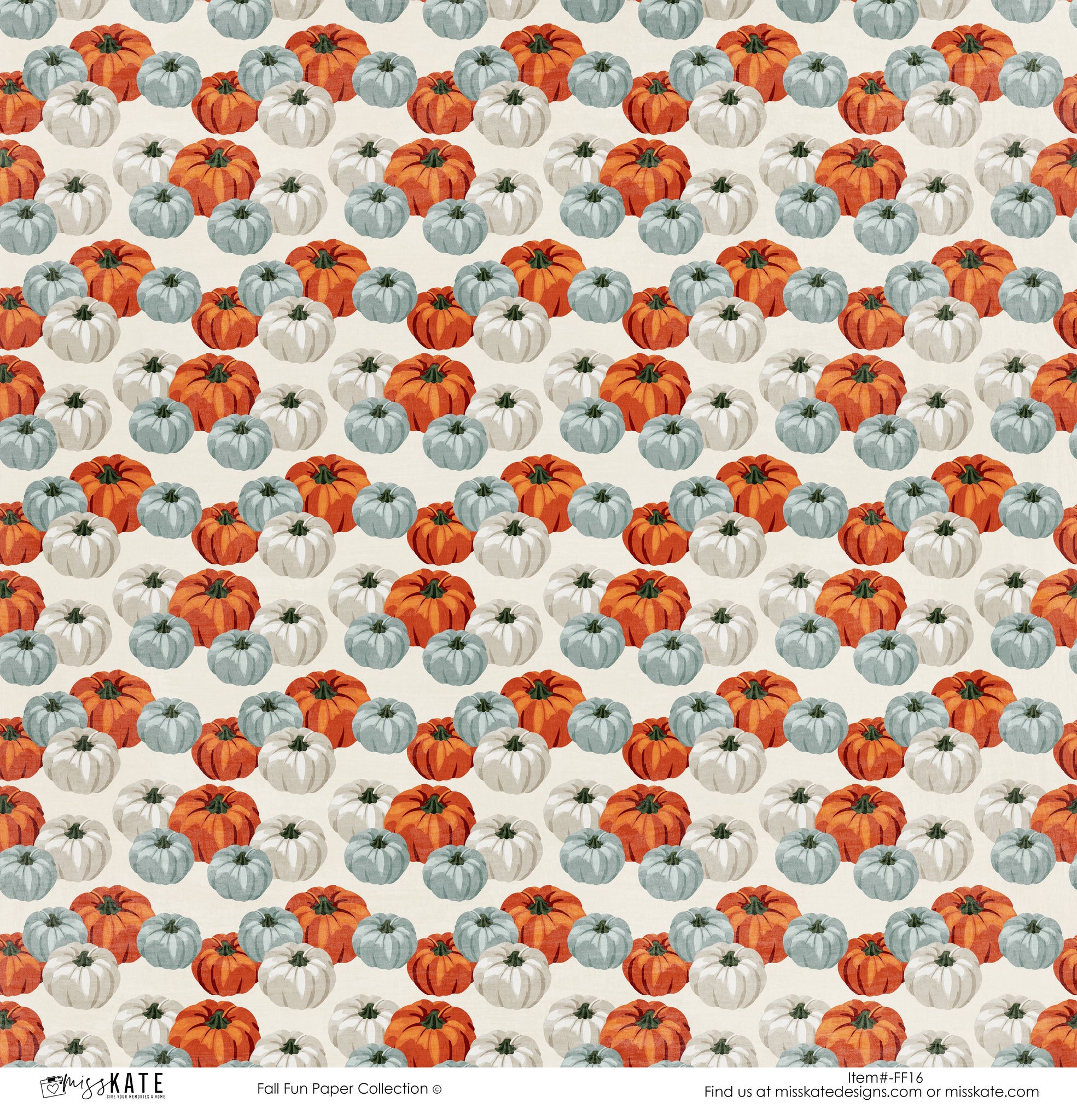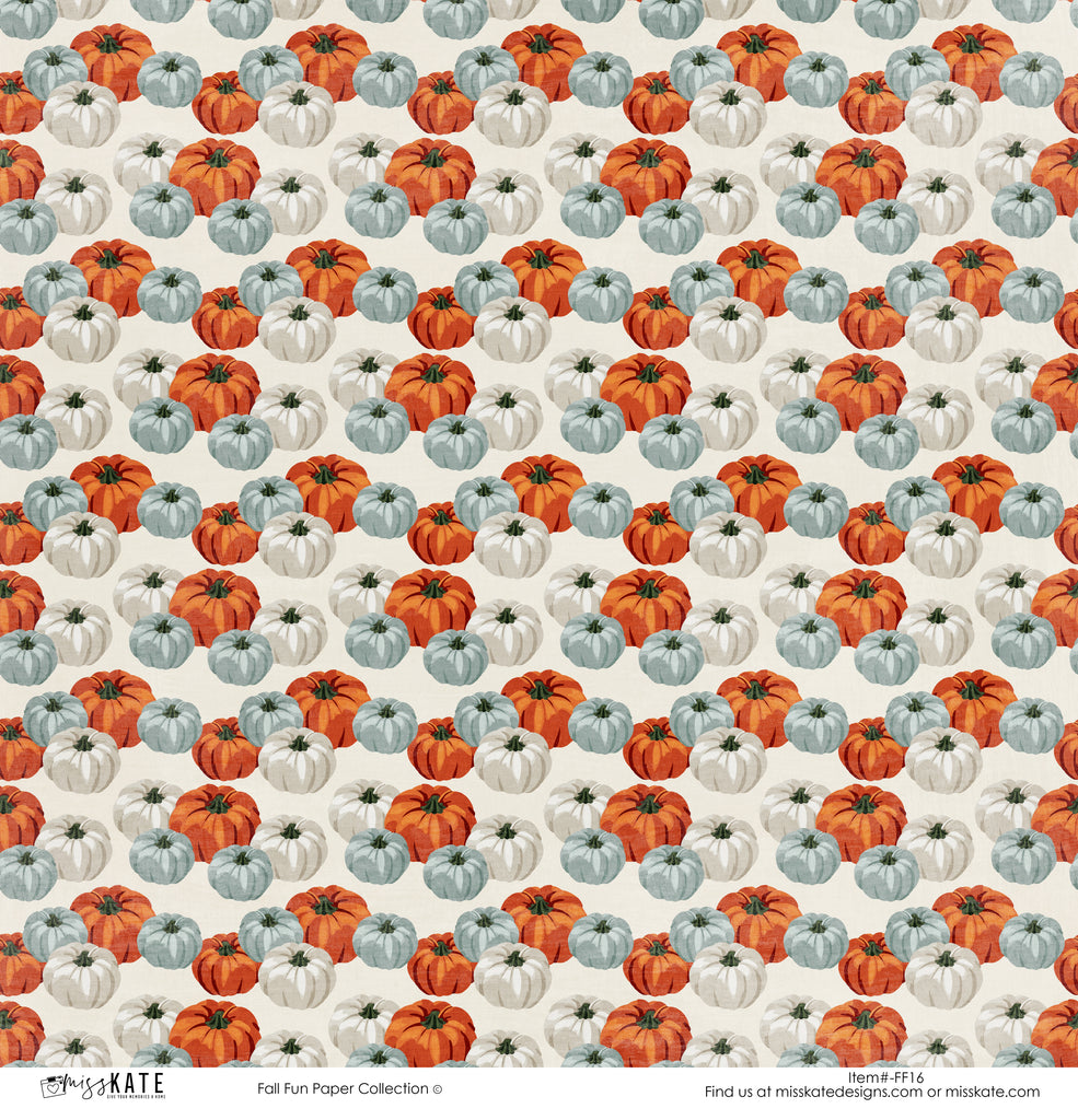 This “Fall Fun” paper collection by Miss Kate captures the cozy, colorful essence of autumn through a warm palette of burnt orange, mustard yellow, soft teal, cream, and chocolate brown. The pack features 12x12 patterned papers with charming fall motifs including leaves, pumpkins, plaids, hearts, and gingham designs. Accented by playful textures and layered patterns, the collection evokes feelings of crisp autumn days and cozy gatherings. The coordinating stickers and die-cut elements include cheerful phrases like “Fall Fun,” “Grateful Heart,” and “Crunchy Leaves,” along with pumpkins, sunflowers, and acorns that bring each page to life. Perfect for scrapbooking, card making, or seasonal crafts, this kit beautifully blends rustic charm with modern design, creating a heartwarming celebration of everything that makes fall special.
