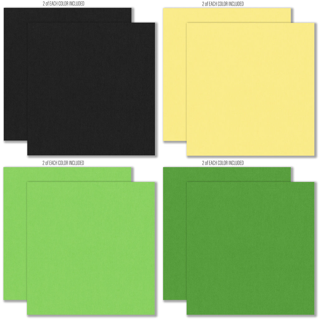 This Feelin’ Lucky cardstock pack features a vibrant mix of colors perfect for St. Patrick’s Day and other festive crafting. It includes a bright lime green, a fresh and vivid shade, alongside a medium grass green, which offers a natural and balanced tone. For a deeper contrast, the dark forest green provides a rich and bold look. The pack also includes a soft pastel yellow, adding a light and cheerful touch, as well as a golden yellow, which brings warmth and energy. A bright aqua blue introduces a fun and refreshing pop of color, complementing the rich hues. The warm orange is bold and lively, while the deep red adds a striking and passionate accent. Finally, the solid black offers a classic and grounding element, perfect for contrast and emphasis in any project.