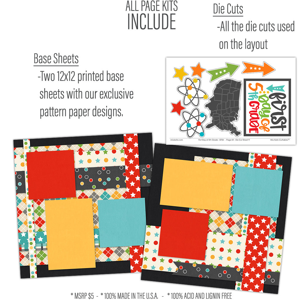 About our Page Kits Our Page Kits include proprietary Miss Kate Pattern Paper and Miss Kate Die Cuts. The cover page features full-color high-resolution pictures of the assembled layouts. Die cuts are left in the sheet and ready for you to easily pop out, this allows you to see them all spread out and helps prevent any accidental loss. These page kits are adorable, easy to do, and at such a great price! We love our Page Kits and think you will too! |