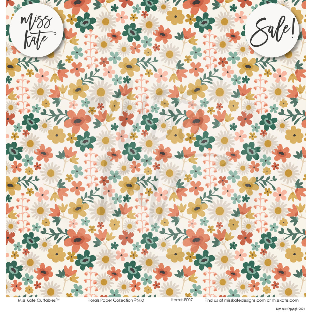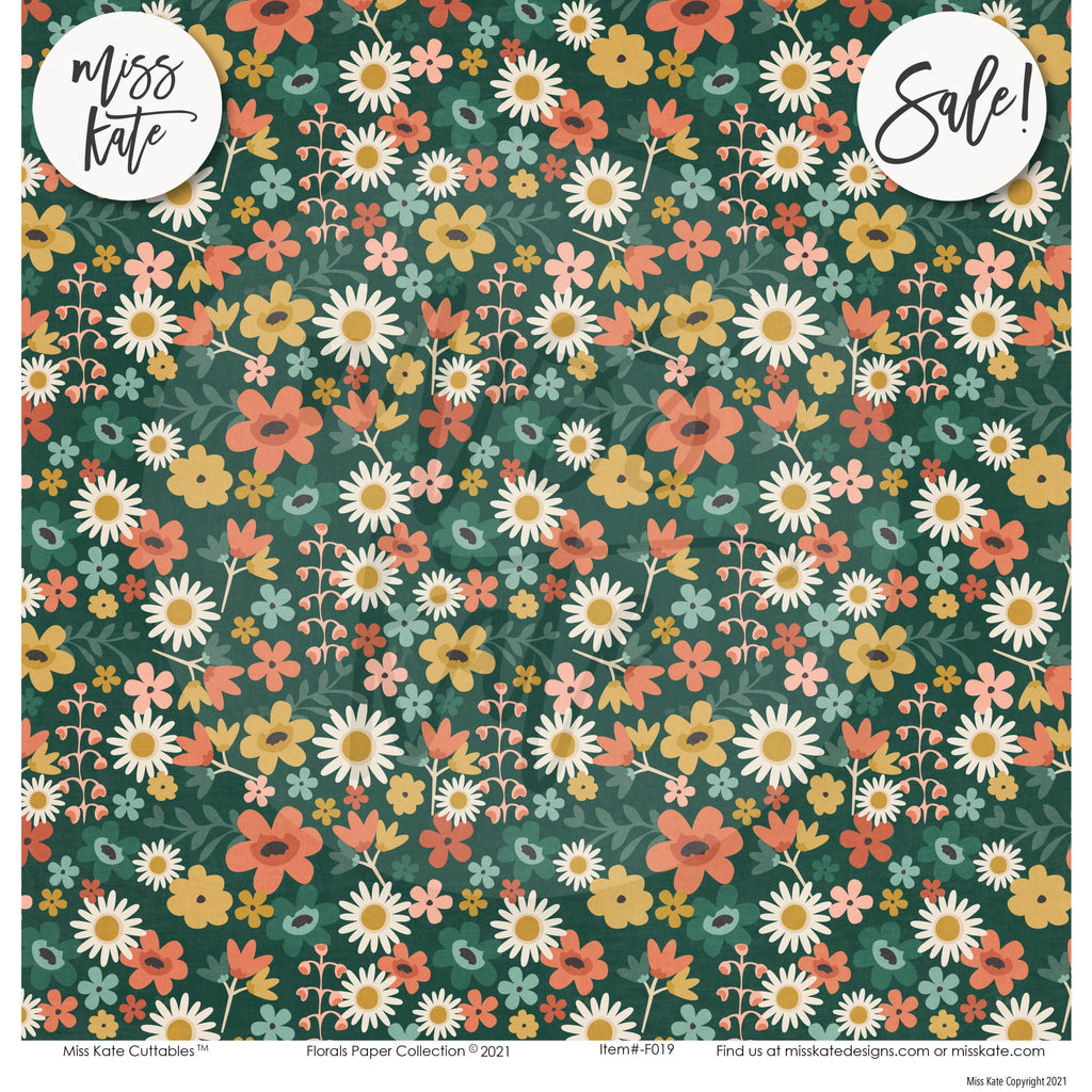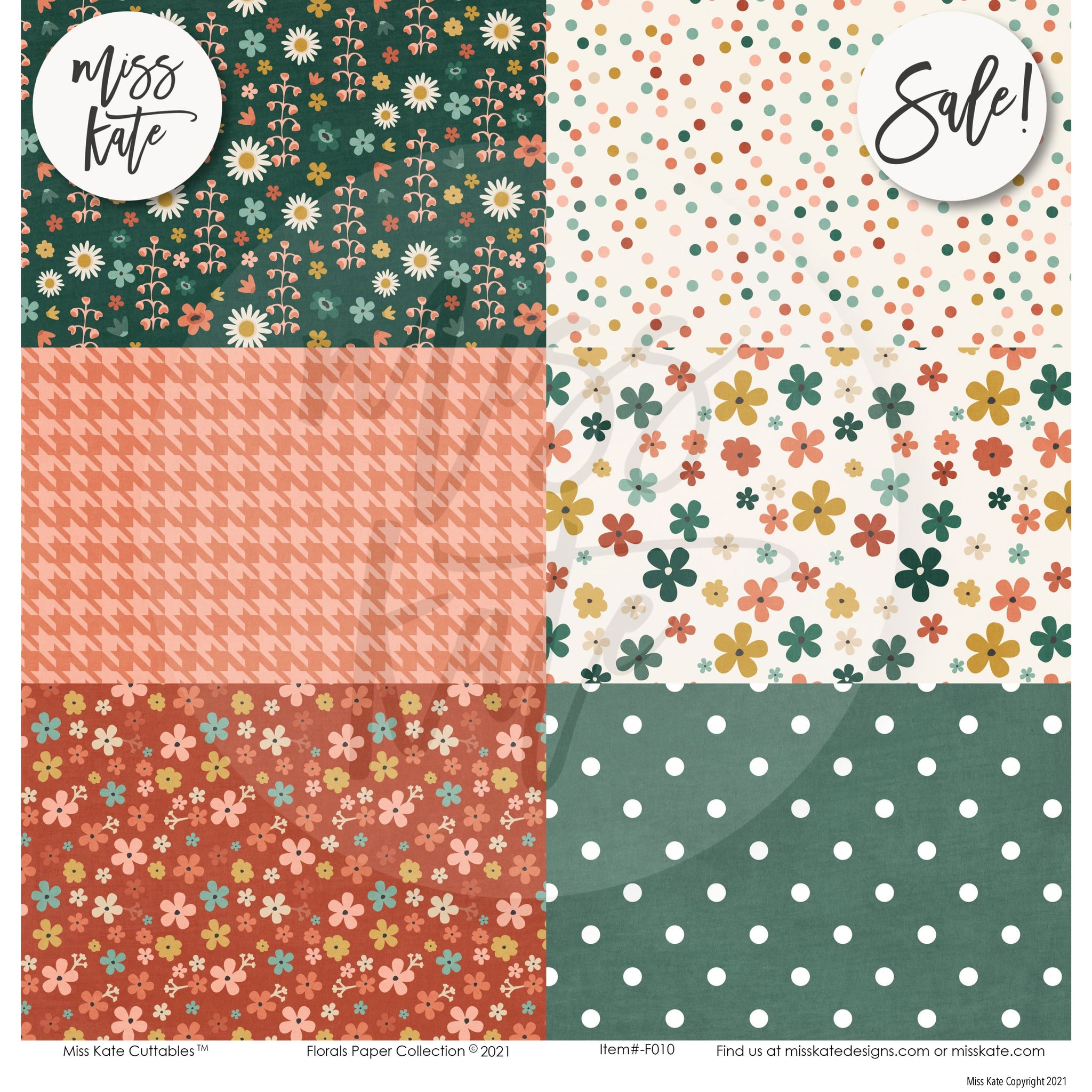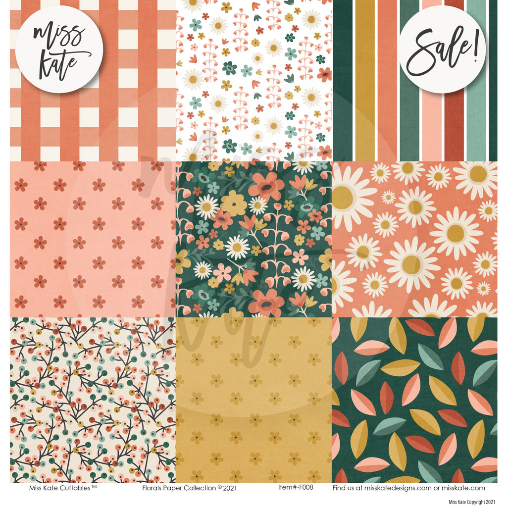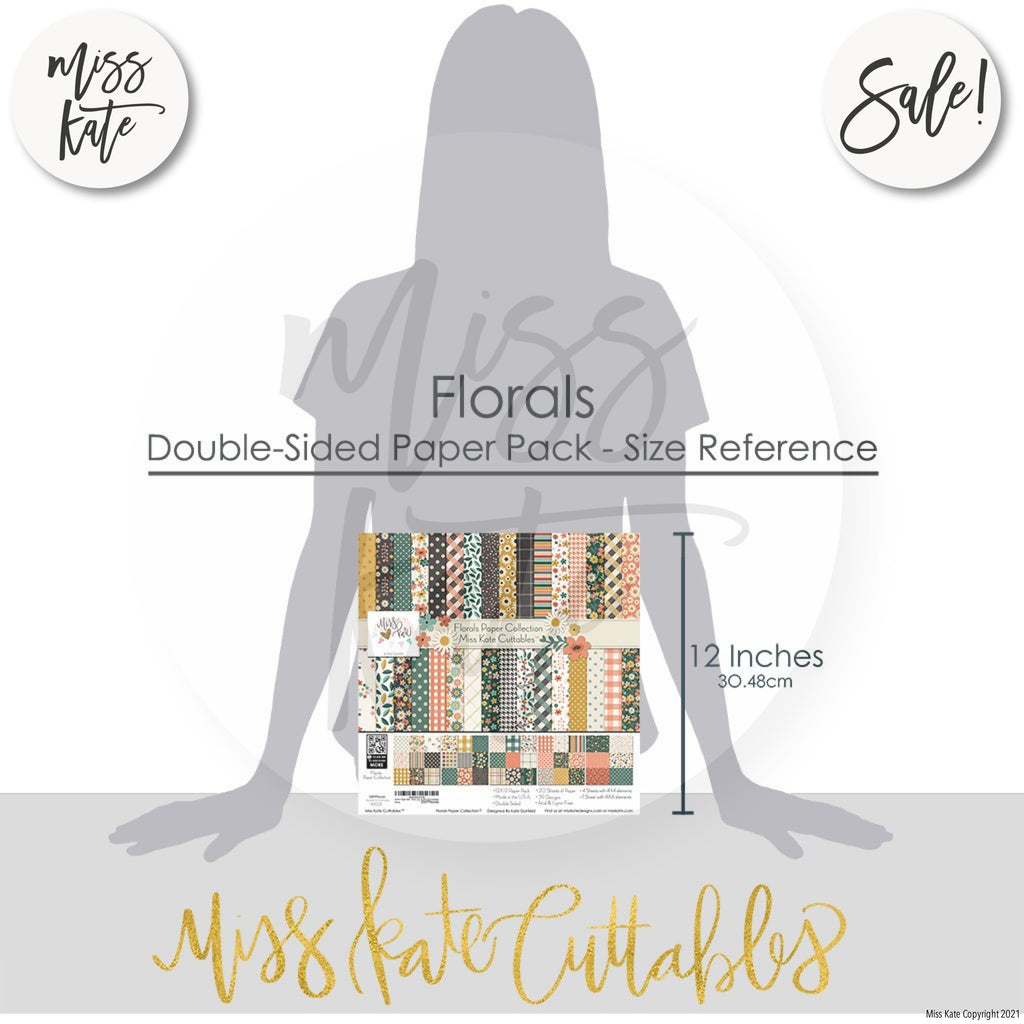 The Double Sided Florals Paper Pack has a wide variety of designs, including Flowers, Daisies, Polka Dots, Buffalo Check, Leaves, Plaid, Stripes, Hounds Tooth, Berries. Includes 4x4 & 4x6 Elements.