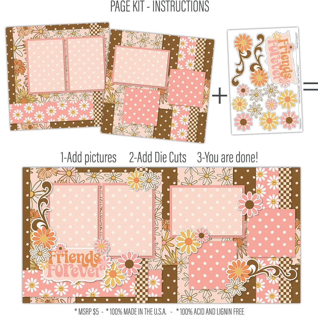 About our Page Kits Our Page Kits include proprietary Miss Kate Pattern Paper and Miss Kate Die Cuts. The cover page features full-color high-resolution pictures of the assembled layouts. Die cuts are left in the sheet and ready for you to easily pop out, this allows you to see them all spread out and helps prevent any accidental loss. These page kits are adorable, easy to do, and at such a great price! We love our Page Kits and think you will too! |