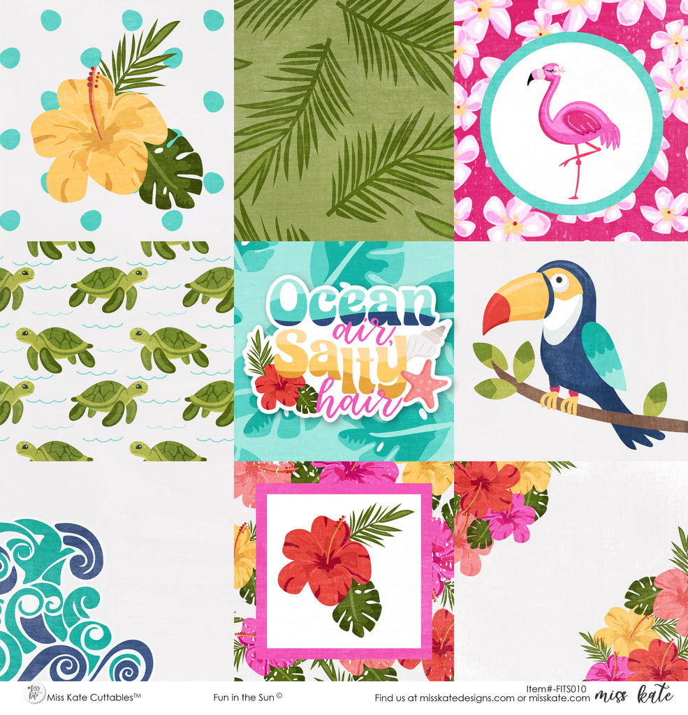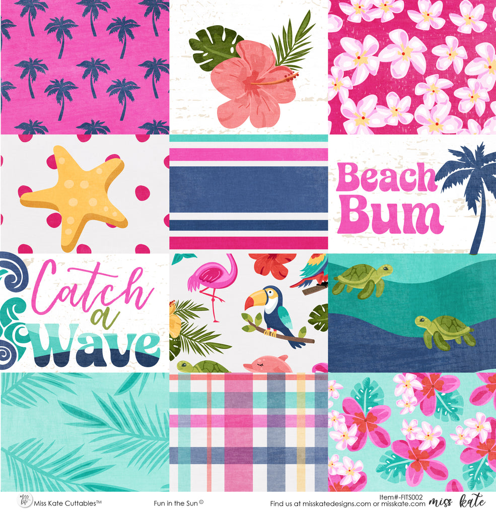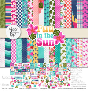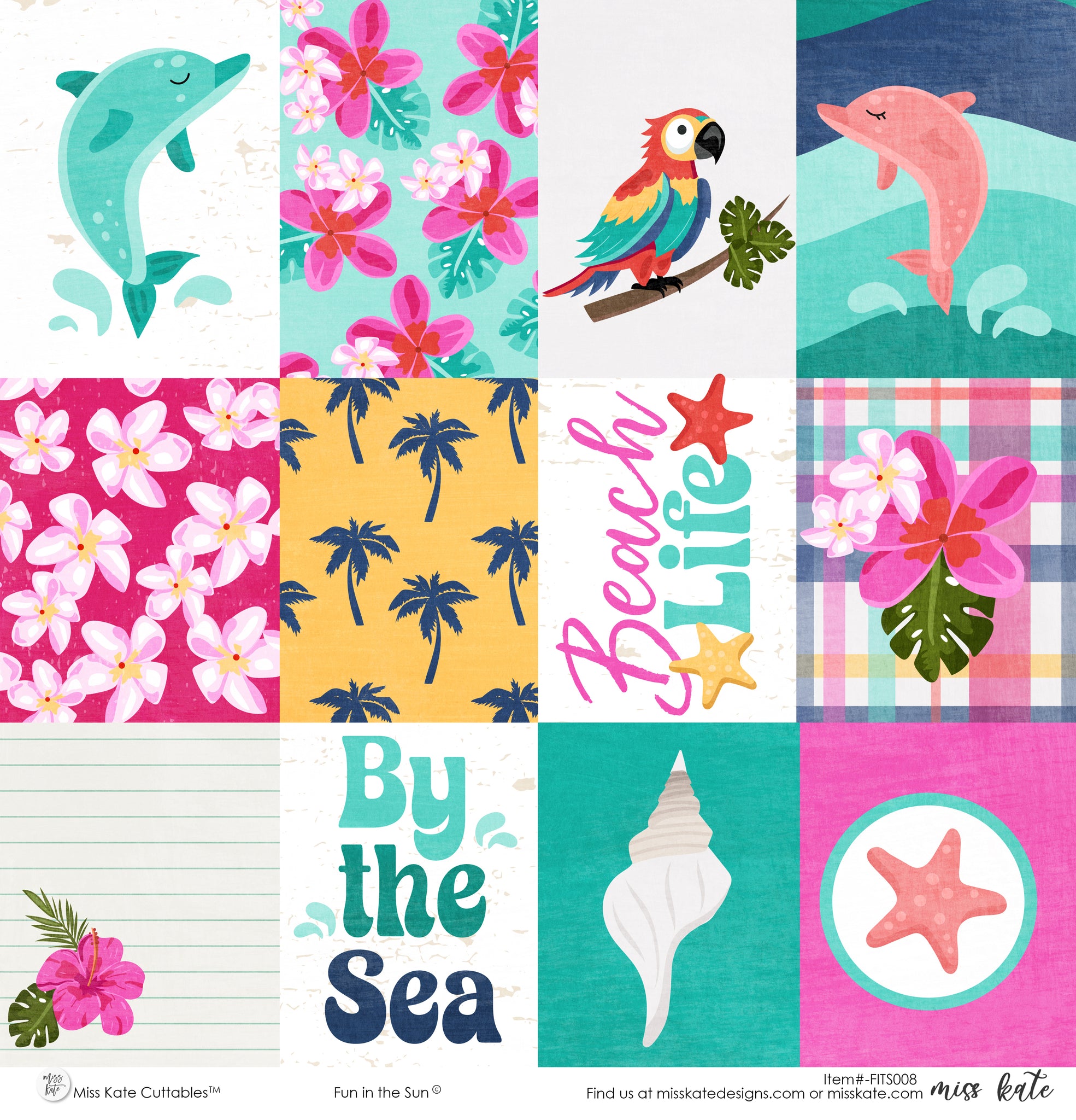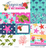 This collection features a stunning array of tropical-inspired designs in bright, cheerful colors like pink, teal, yellow, navy, and green. Patterns include palm leaves, hibiscus flowers, flamingos, polka dots, stripes, plaids, and whimsical sea elements like starfish and dolphins. The paper pack includes 20 double-sided sheets (12x12 inches) with 39 unique designs, all acid- and lignin-free, perfect for scrapbooking and paper crafting. Coordinating stickers, die cuts, and cut-apart sheets complement the paper designs, offering titles like “Tropical Paradise,” “Ocean Air Salty Hair,” and “Splash Splash.” This collection is ideal for documenting beach days, summer vacations, pool fun, and tropical adventures, bringing a lively and sunny vibe to any memory-keeping project. |