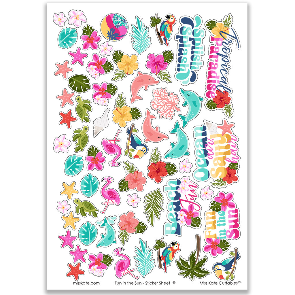 🌞 Fun in the Sun Sticker Sheet 🌞Vibrant Designs for Your Summer Fun!This "Fun in teh Sun" sticker sheet by Miss Kate Cuttables is filled with playful, sunshine-filled designs. Sunny Phrases for Your Mood!The sheet includes sunny phrases They enhance the cheerful mood of the stickers, making them ideal for expressing your summer spirit. Enjoy crafting with these vibrant, cheerful stickers! |