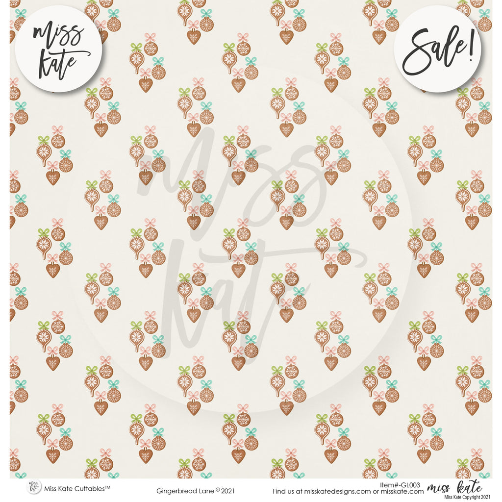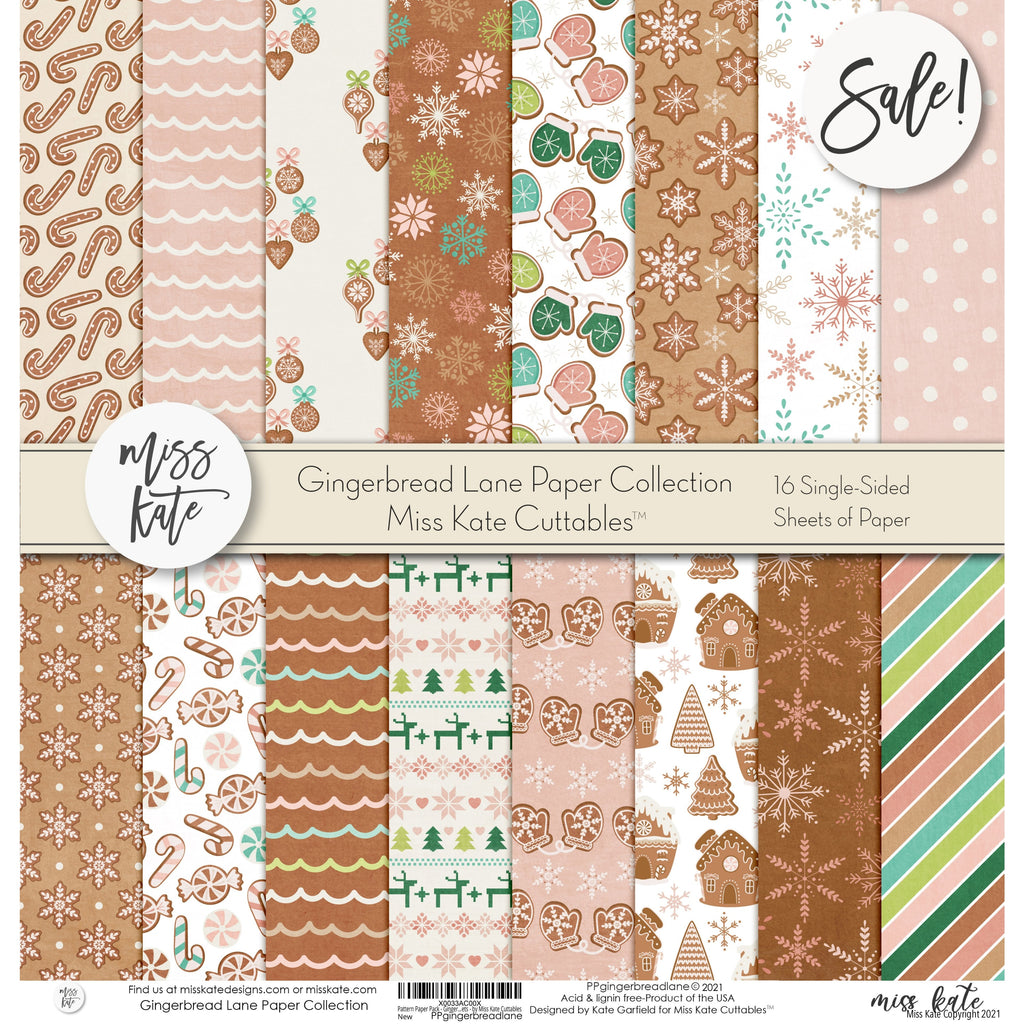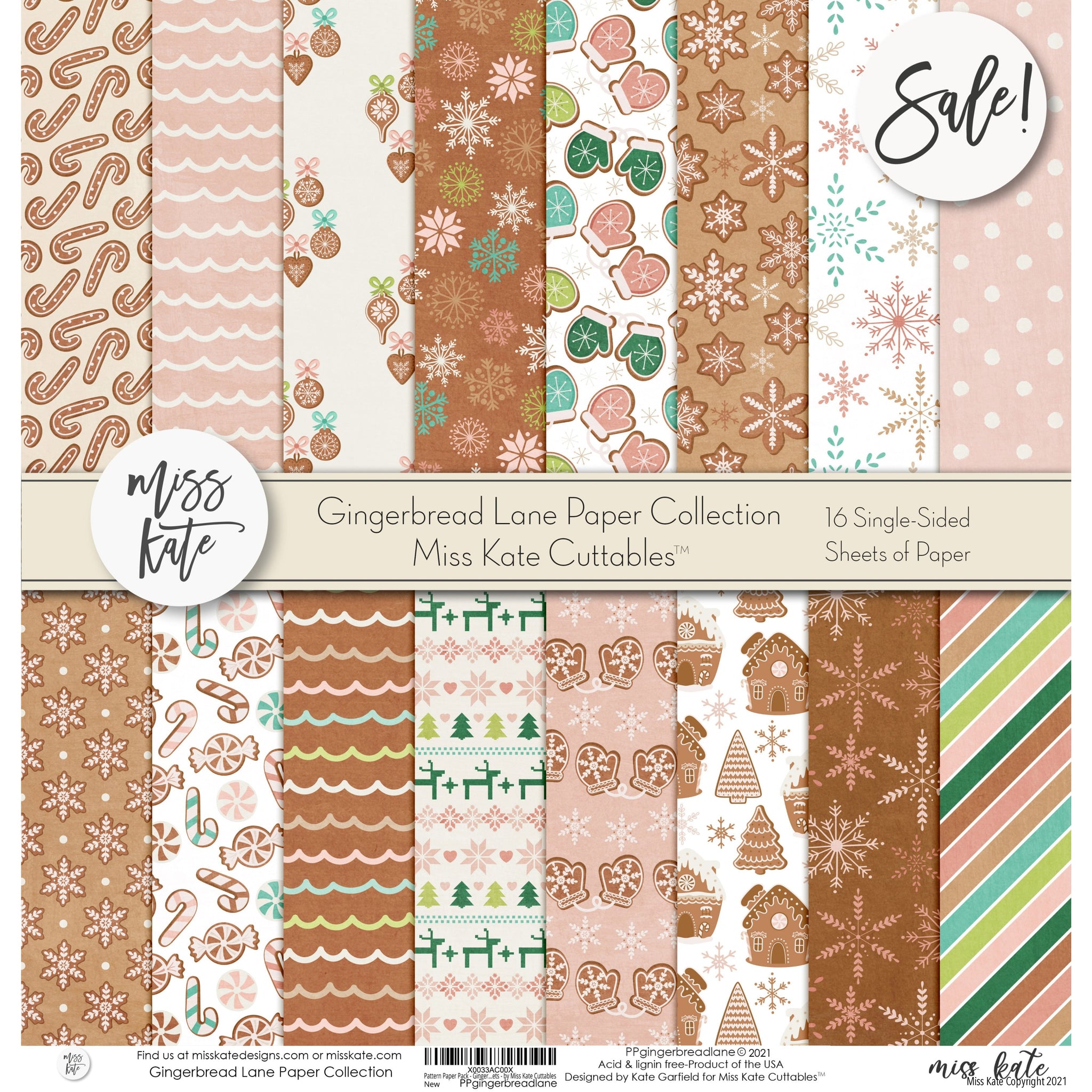The Gingerbread Lane Paper has a wide variety of patterns including Polka Dots, Christmas Cookies, Gingerbread House, Icing, Candy Canes, Gingerbread Men, Stripes, Snowman, Trees, Cookies, Christmas Sweaters, Reindeer, Snowflakes, Gumdrops, 4x4 & 4x6 Elements.