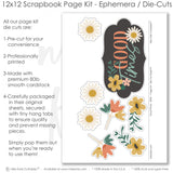 Die Cuts: All the die cuts you see on our layout picture, all cut out for you and ready to embellish your page kit!