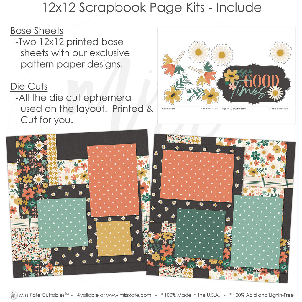 About our Page Kits Our Page Kits include proprietary Miss Kate Pattern Paper and Miss Kate Die Cuts. The cover page features full-color high-resolution pictures of the assembled layouts. Die cuts are left in the sheet and ready for you to easily pop out, this allows you to see them all spread out and helps prevent any accidental loss. These page kits are adorable, easy to do, and at such a great price! We love our Page Kits and think you will too! |