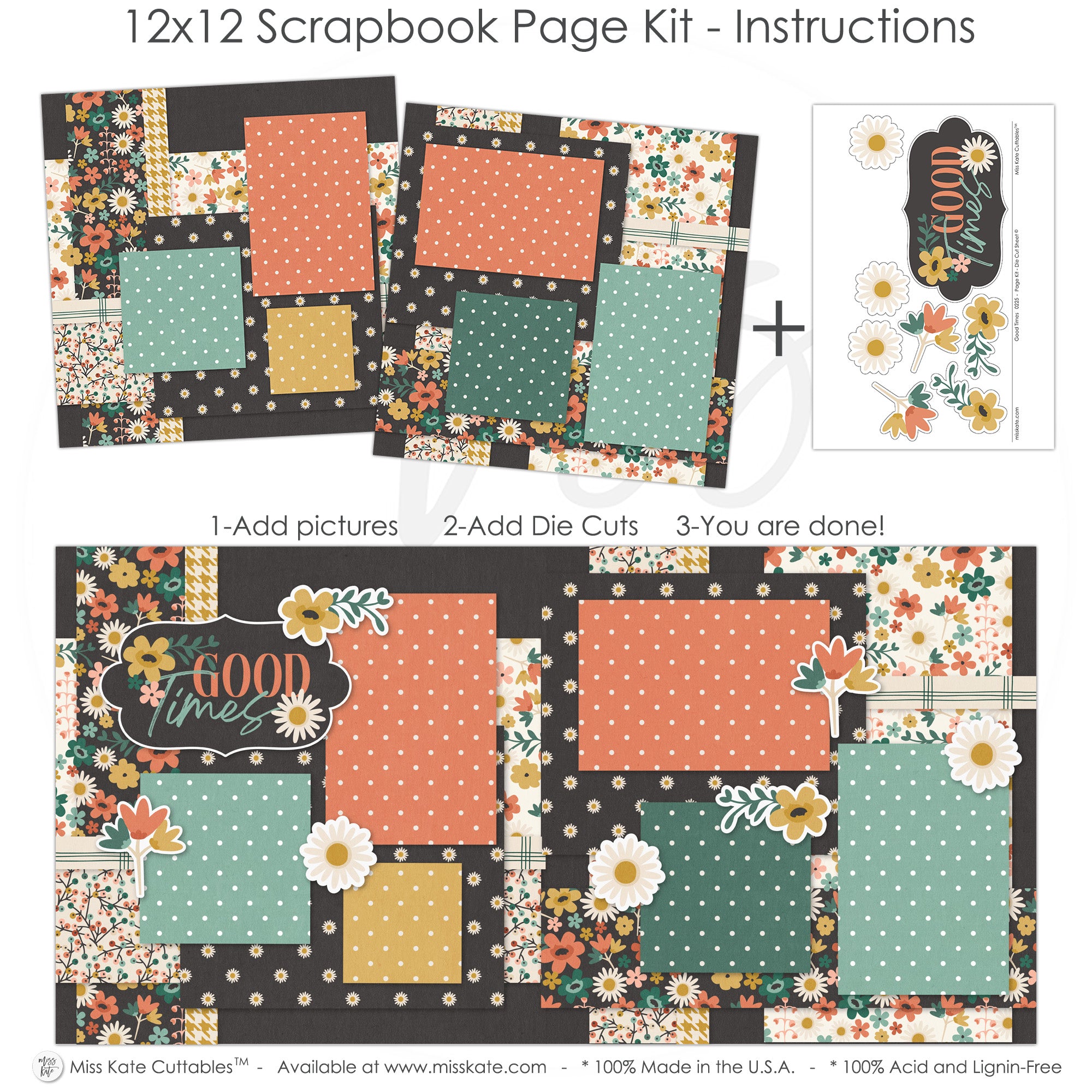 Description:The Good Times 12x12 Scrapbook Page Kit is a beautifully crafted layout featuring warm autumnal tones and vintage floral elements. Designed with coordinating polka dot and floral patterns, this kit is perfect for capturing fall gatherings, family moments, outdoor adventures, rustic weddings, or Thanksgiving celebrations. Here is what you get in our Page Kits