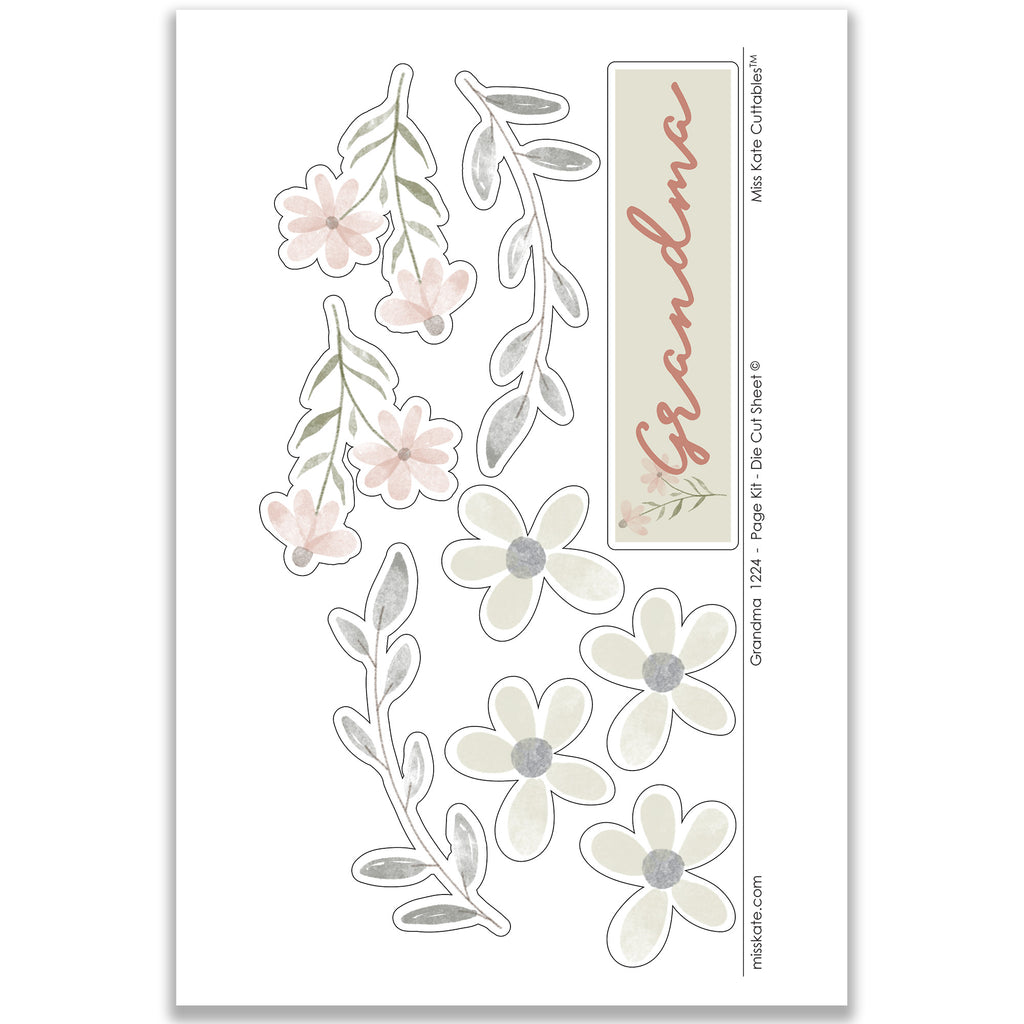Die Cuts: All the die cuts you see on our layout picture, all cut out for you and ready to embellish your page kit!