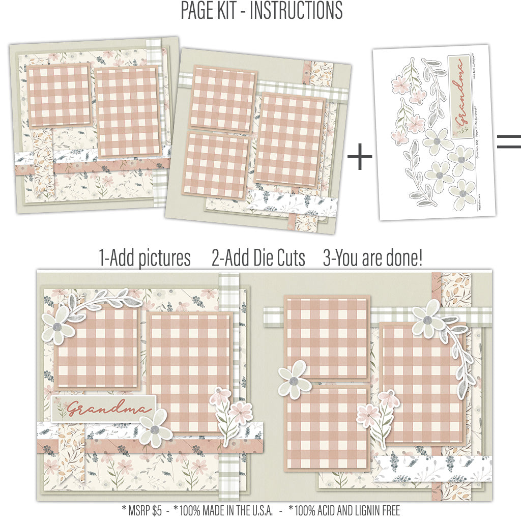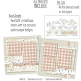 What to expect with our Page KitsWhen you open your kit, you will discover and love that all of the pattern paper designs are pre printed and completed for you! No more cutting long strips of pattern paper and gluing them together.