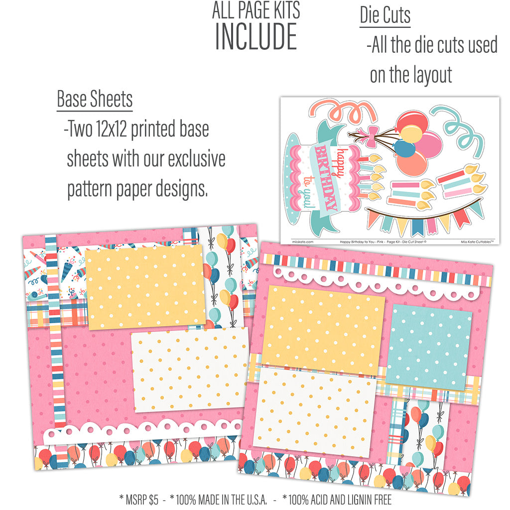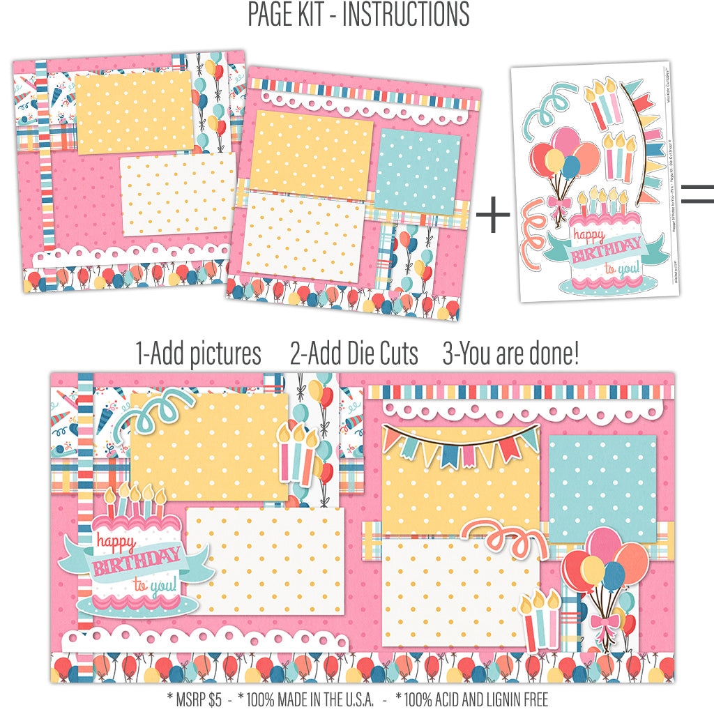 About our Page Kits Our Page Kits include proprietary Miss Kate Pattern Paper and Miss Kate Die Cuts. The cover page features full-color high-resolution pictures of the assembled layouts. Die cuts are left in the sheet and ready for you to easily pop out, this allows you to see them all spread out and helps prevent any accidental loss. These page kits are adorable, easy to do, and at such a great price! We love our Page Kits and think you will too! |