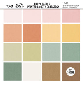 Cardstock Description Single-Sided Linen-Printed Smooth Cardstock Kate created 16 custom colors that perfectly match our Happy Easter designs, added her exclusive Linen Pattern, and combined them for you in this 32 sheet pack. Colors Match It has NEVER been this easy to match cardstock with paper! About our Paper Our cardstock sheets provide a stiff, strong surface to work on that has a linen feel. You will find that it cuts beautifully in your Cricut, Cameo, or any other cutting machine. It is perfect for backgrounds, die cuts, photo mats, and any other crafting project. We love our Linen Printed Card Stock and think you will too! THEME: Easter, Spring |