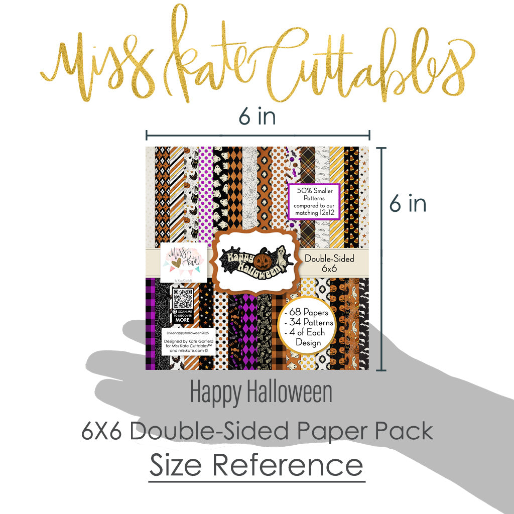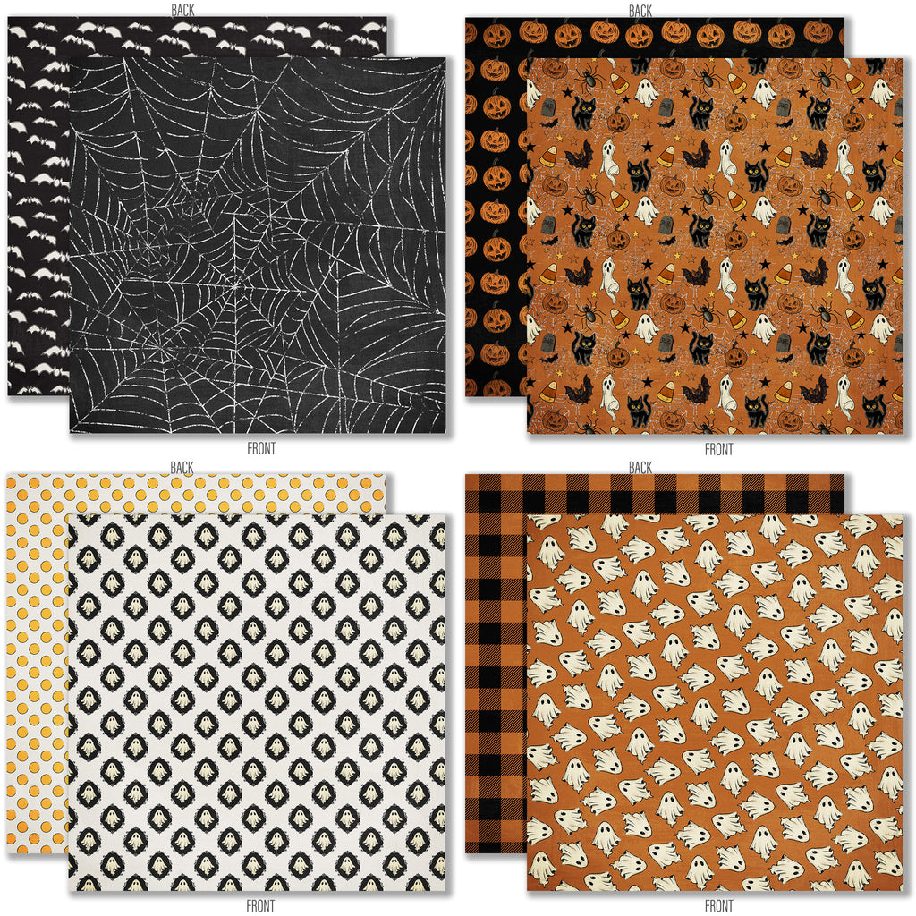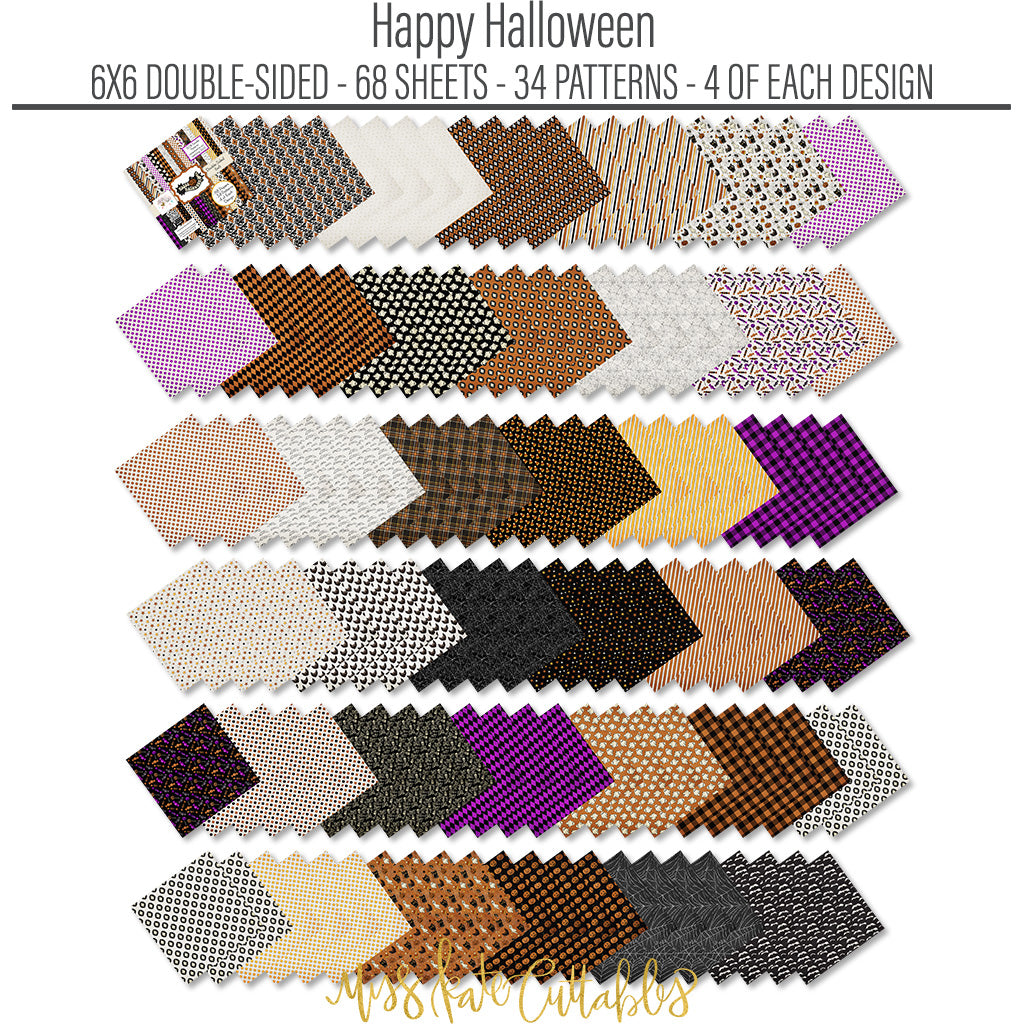 This “Happy Halloween” paper collection is a festive and delightfully spooky crafting kit designed to bring Halloween memories to life. Featuring a rich mix of traditional Halloween tones—pumpkin orange, midnight black, bone white, and pops of purple—this set includes classic seasonal patterns like spiderwebs, candy corn stripes, flying bats, creepy ghosts, bold plaids, and vintage-style diamonds. The collection showcases both playful and eerie artwork, from charming carved pumpkins and friendly ghosts to cauldrons, black cats, witches’ hats, and irresistible Halloween treats. With double-sided 12x12 papers, coordinating stickers, and themed accents like stars, candy, spiderwebs, and cute trick-or-treat characters, this kit offers endless scrapbooking, cardmaking, and DIY decor possibilities. Perfect for capturing costume photos, trick-or-treat adventures, haunted house fun, or October party memories, this set blends classic Halloween nostalgia with whimsical charm to help give your holiday moments a cozy, creative home. This 6x6-inch size is perfect for scrapbooking, card making, journaling, and DIY decor. The smaller scaled patterns work beautifully for photo mats, backgrounds, die cuts, embellishments, and layering in handmade crafts. With 68 sheets total (four of each design), this collection ensures ample variety for multiple creative projects. |