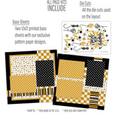 Die Cuts: All the die cuts you see on our layout picture, all cut out for you and ready to embellish your page kit!