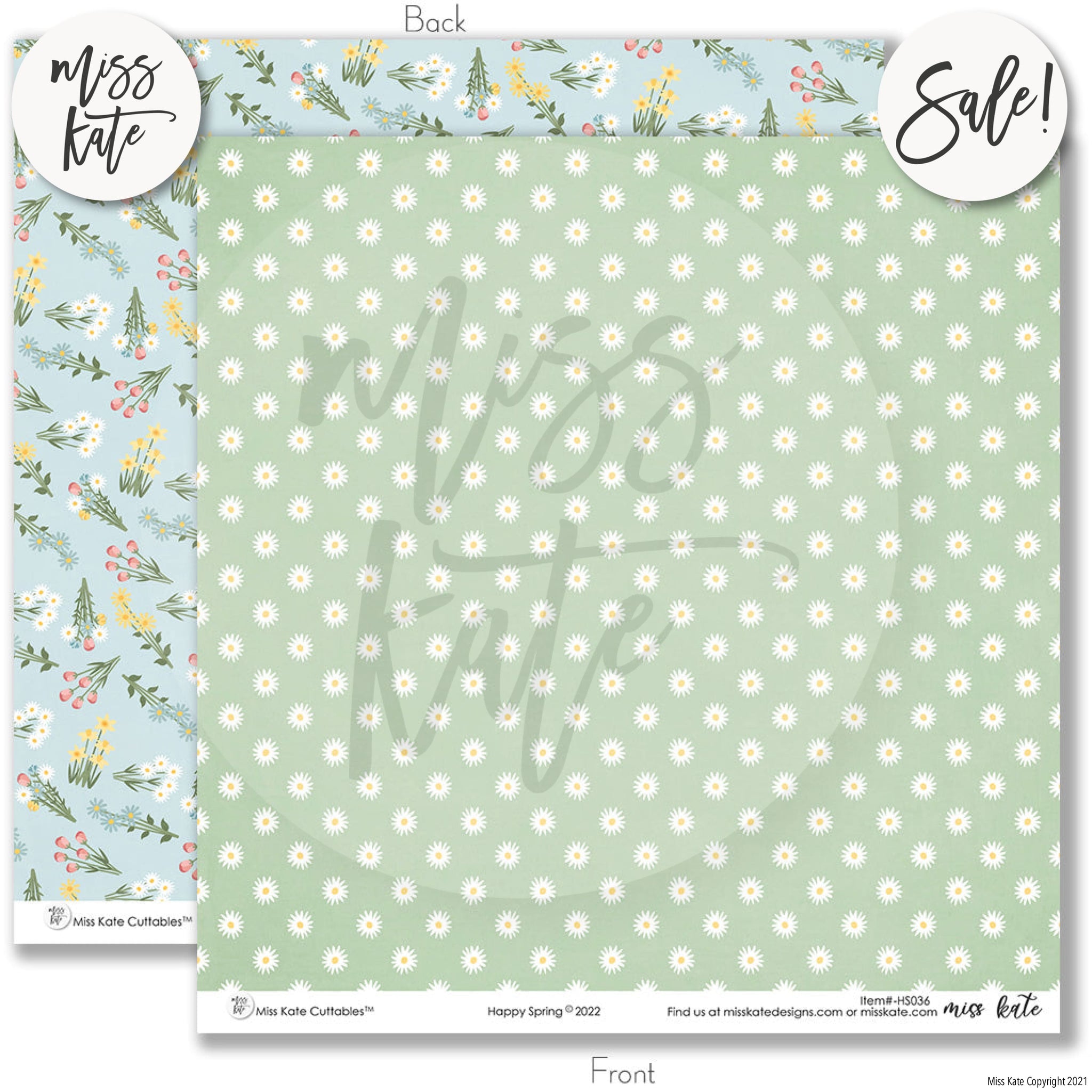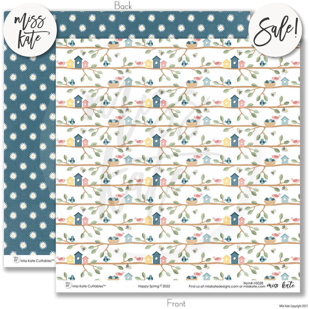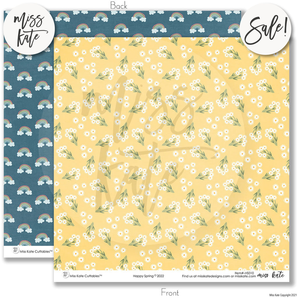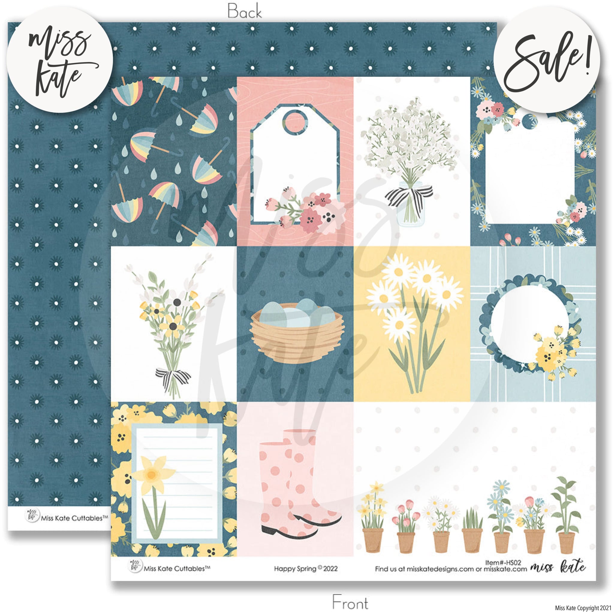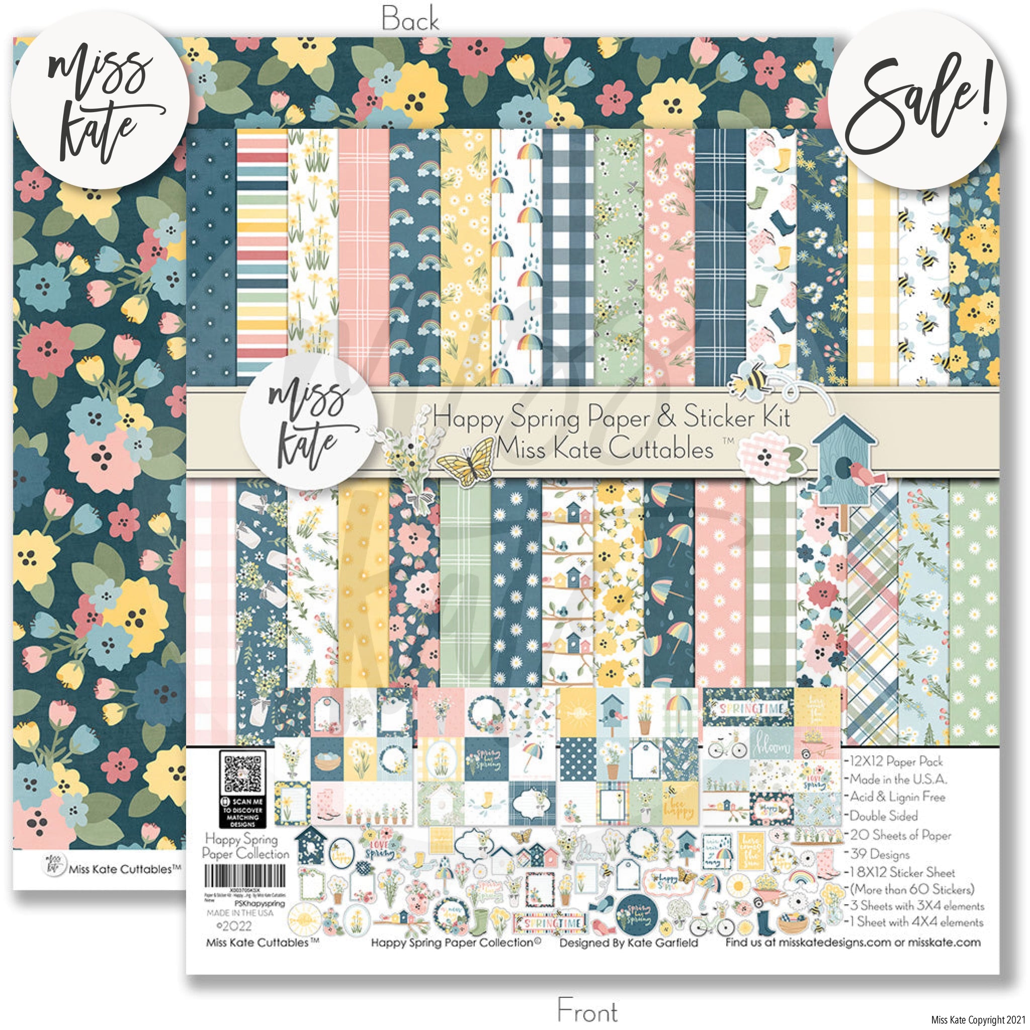 The Happy Spring Paper Pack- has a wide variety of patterns including polka dots, plaid, stripes, spring flowers, rain boots, umbrellas, bees, daffodils, butterflies, rainbows, and birds in cute modern spring colors.