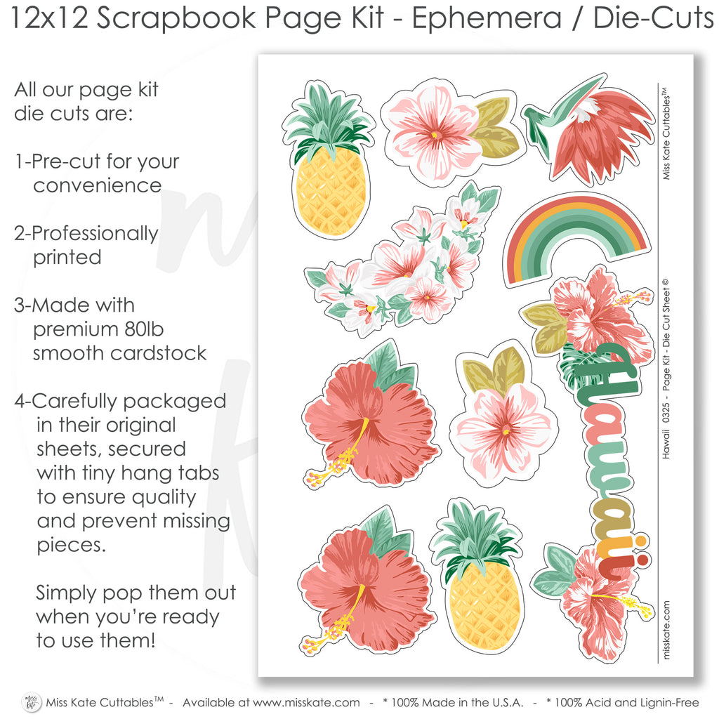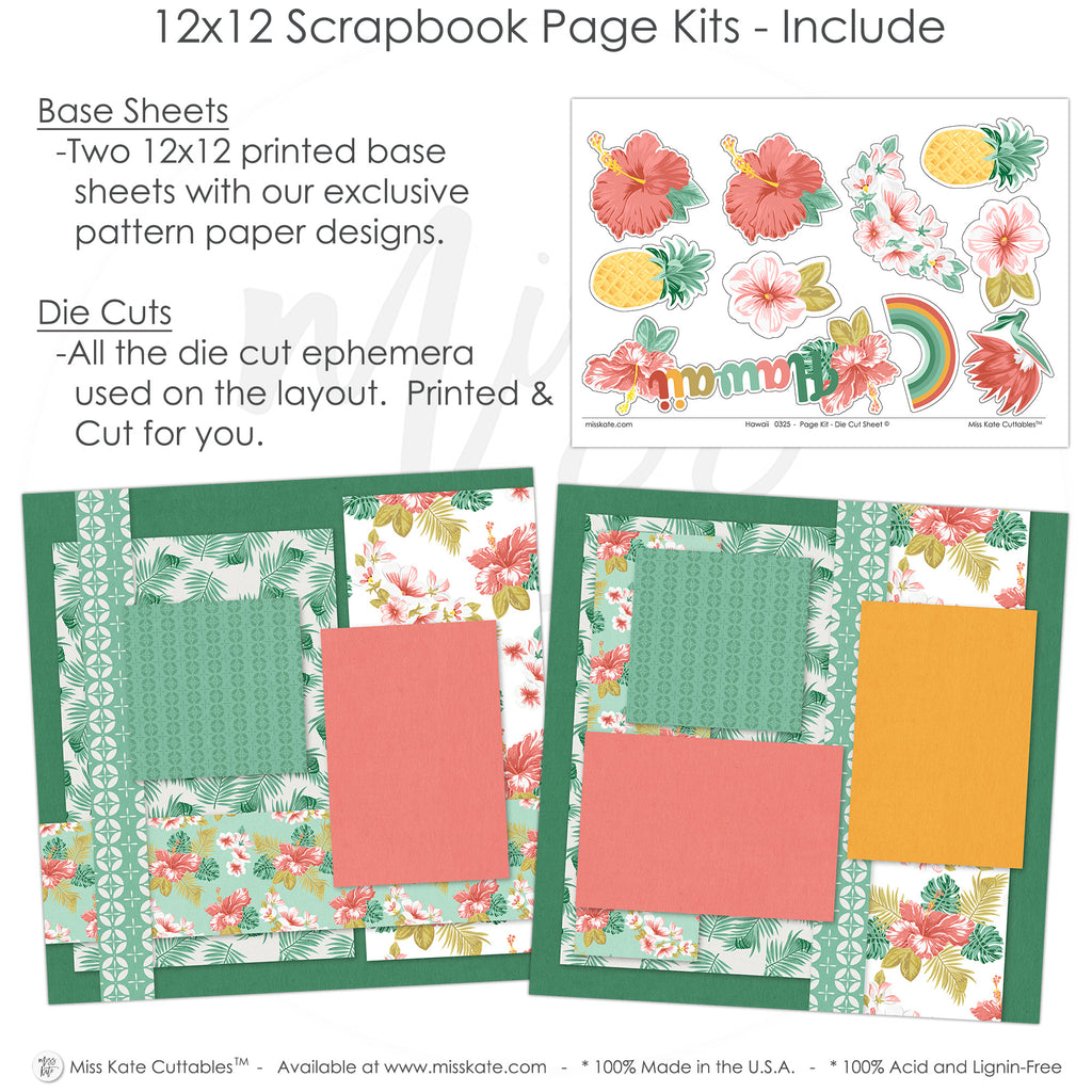 About our Page Kits Our Page Kits include proprietary Miss Kate Pattern Paper and Miss Kate Die Cuts. The cover page features full-color high-resolution pictures of the assembled layouts. Die cuts are left in the sheet and ready for you to easily pop out, this allows you to see them all spread out and helps prevent any accidental loss. These page kits are adorable, easy to do, and at such a great price! We love our Page Kits and think you will too! |