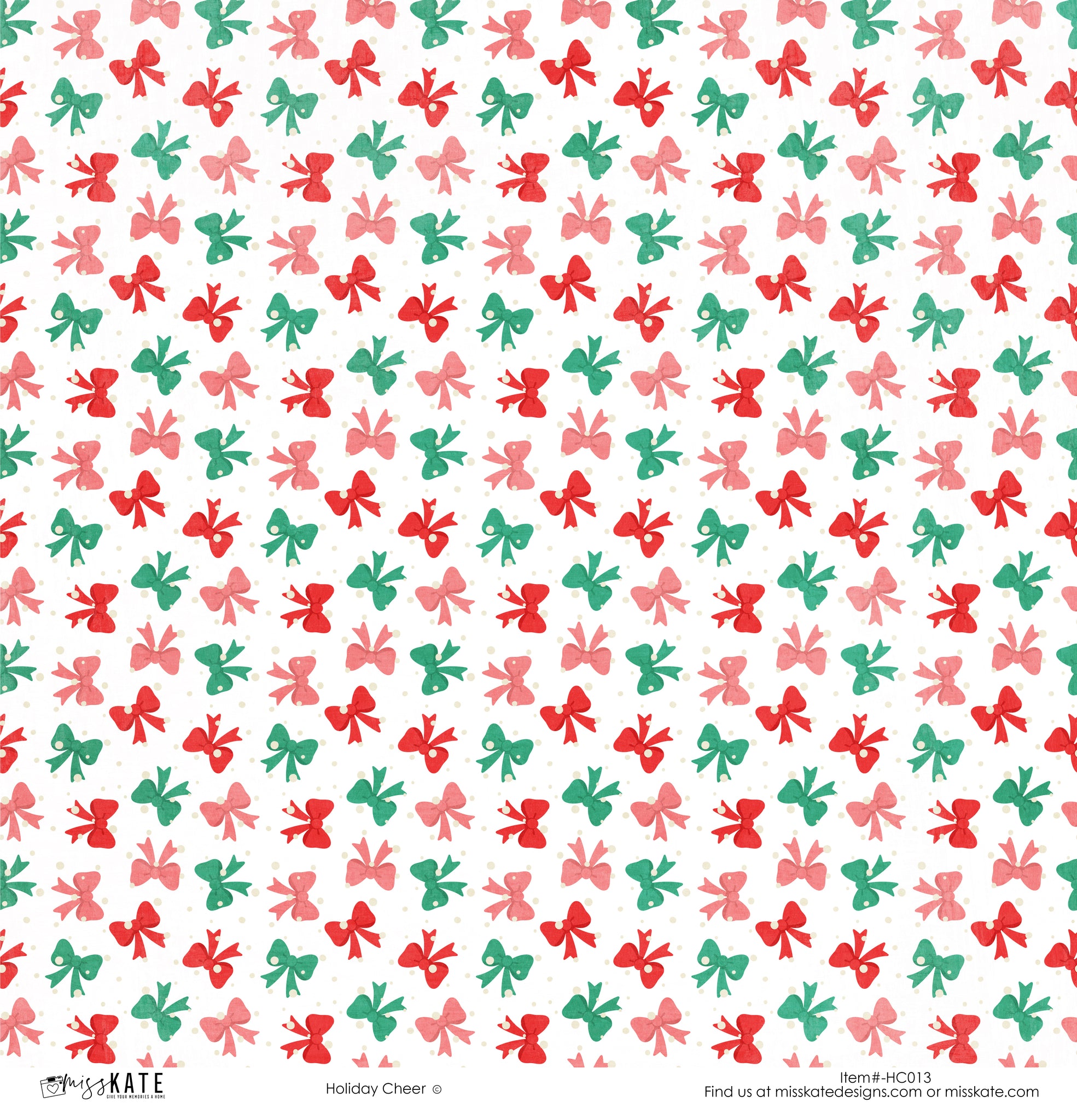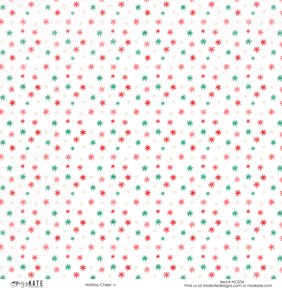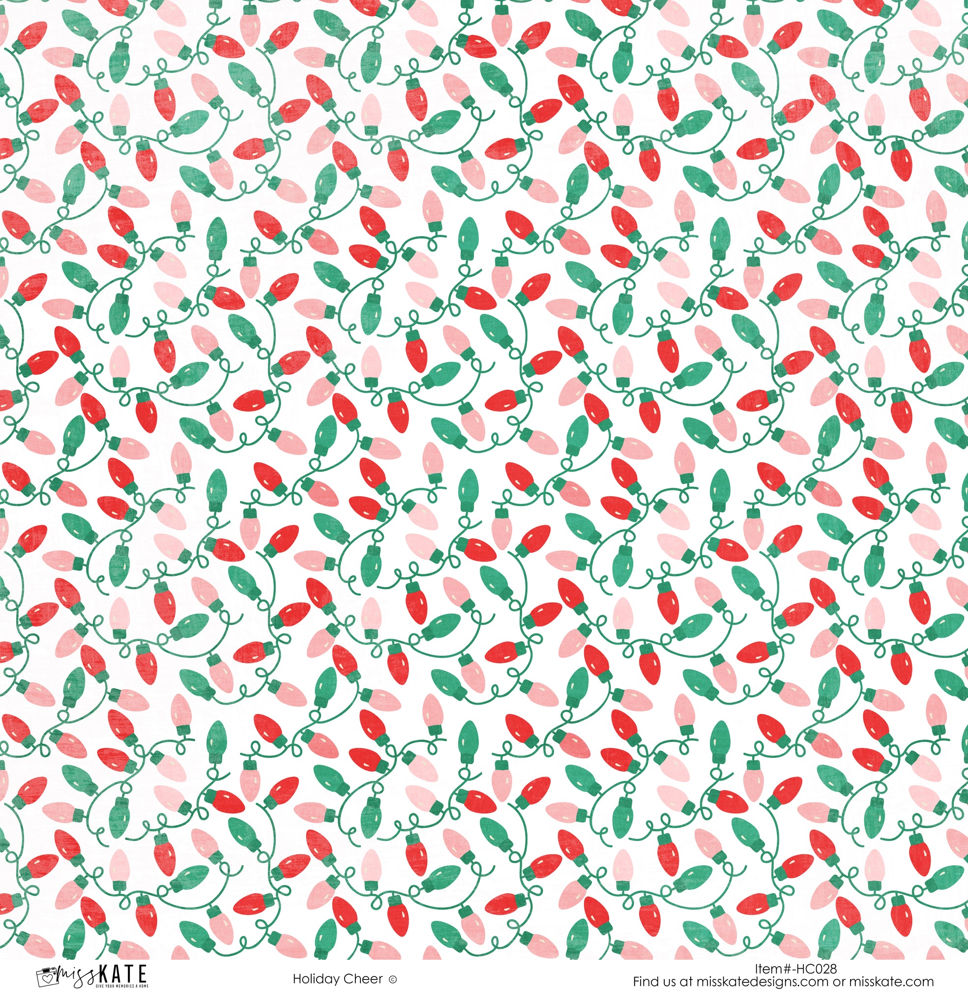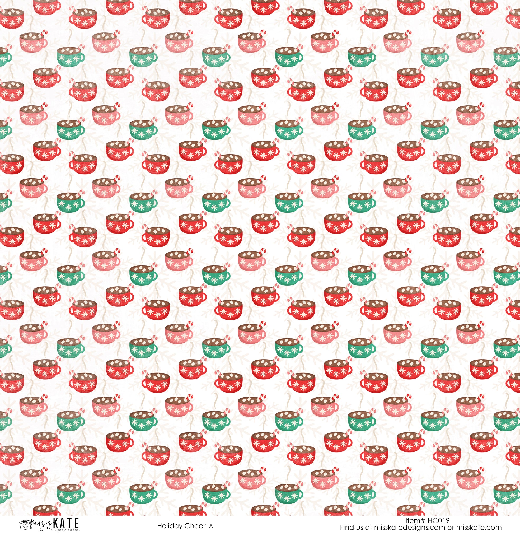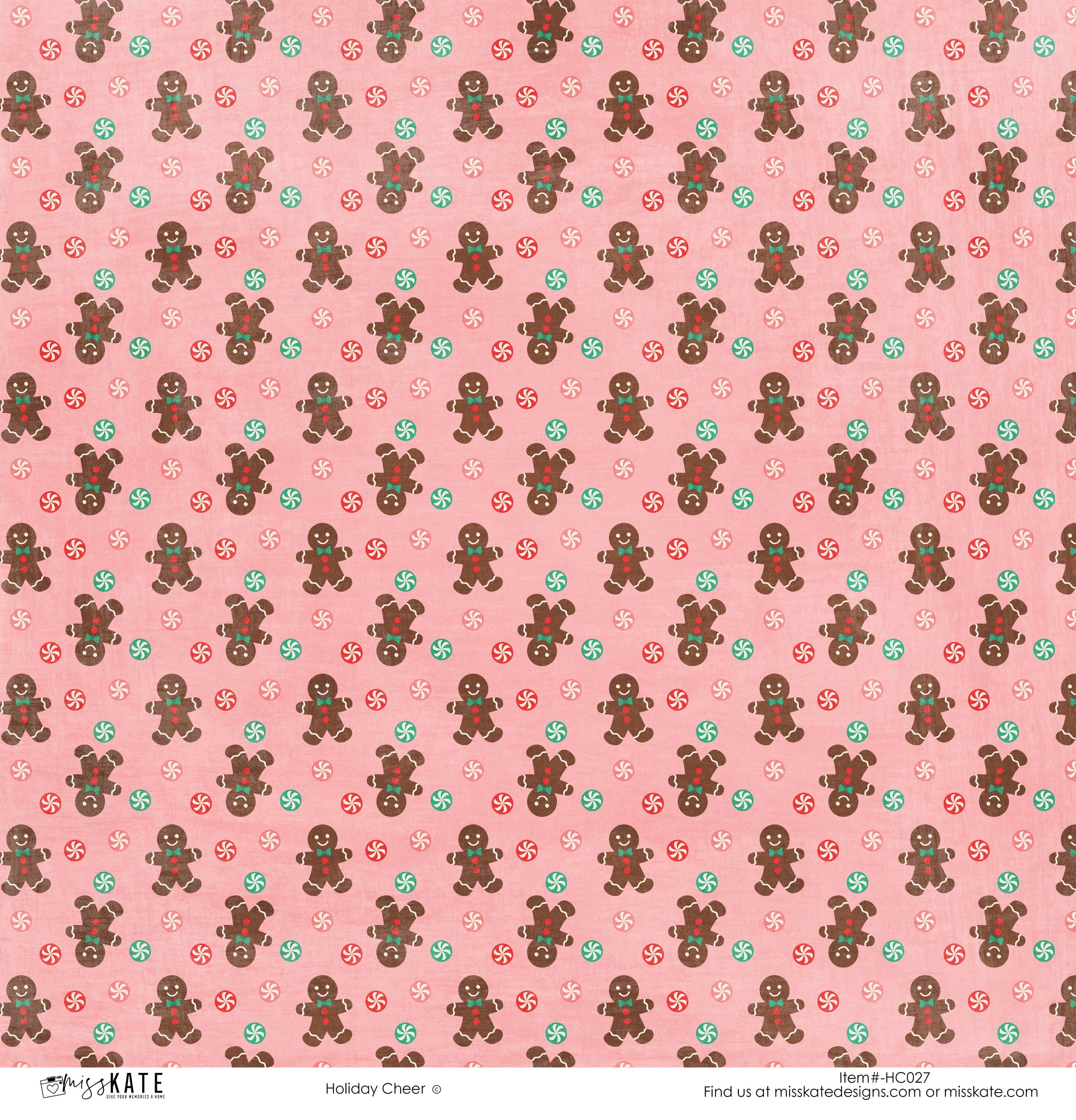 This cheerful holiday paper collection showcases a bright and playful Christmas color palette of red, green, pink, and soft cream tones. A wide variety of festive patterns fill the page, including candy canes, gingerbread cookies, ornaments, holly, snowflakes, Santa faces, plaid, stripes, and whimsical holiday phrases. The mix of classic motifs and modern illustrations creates a joyful, family-friendly feel that’s perfect for documenting seasonal memories. Centered on the page, the “Holiday Cheer” title ties the collection together, while the coordinated sticker sheet along the bottom features matching icons, sentiments, and decorative elements for easy embellishing. Overall, the collection feels warm, nostalgic, and fun—ideal for Christmas scrapbooking, card making, and holiday crafts.