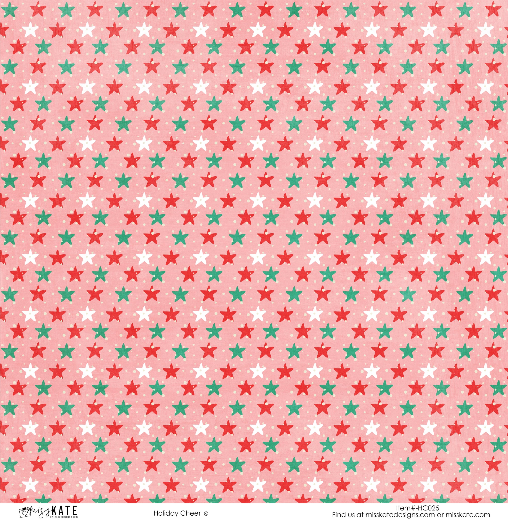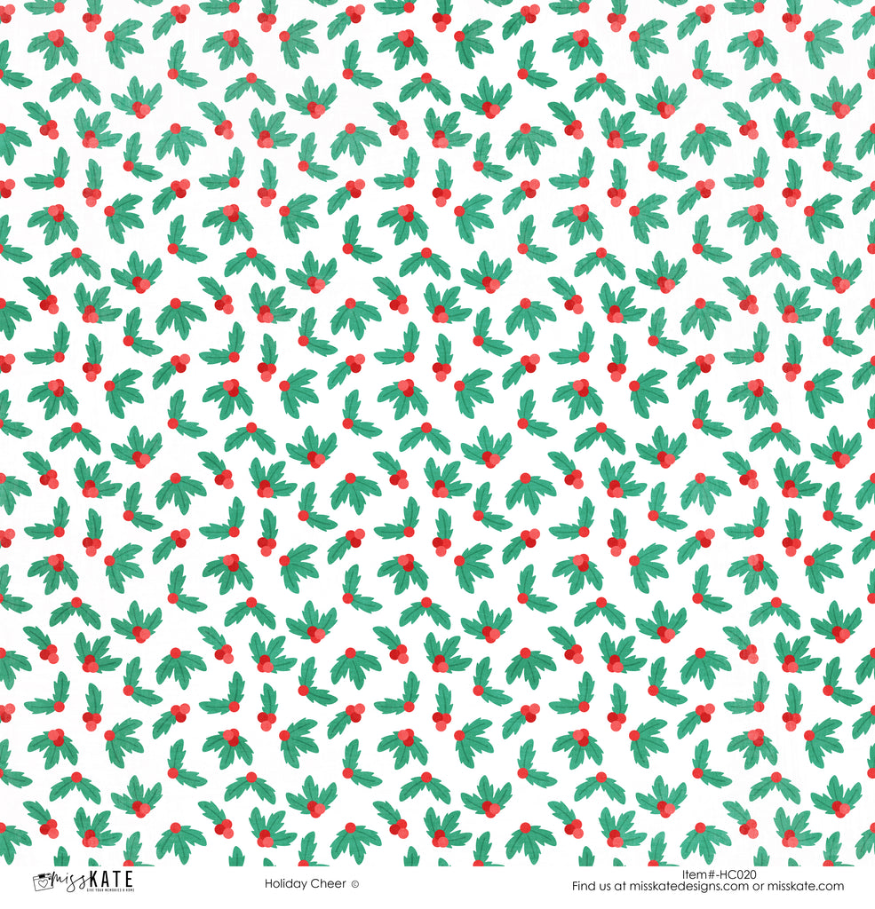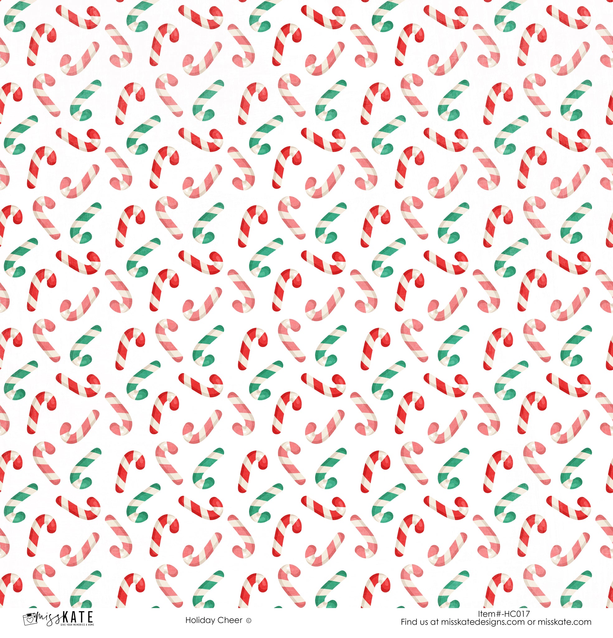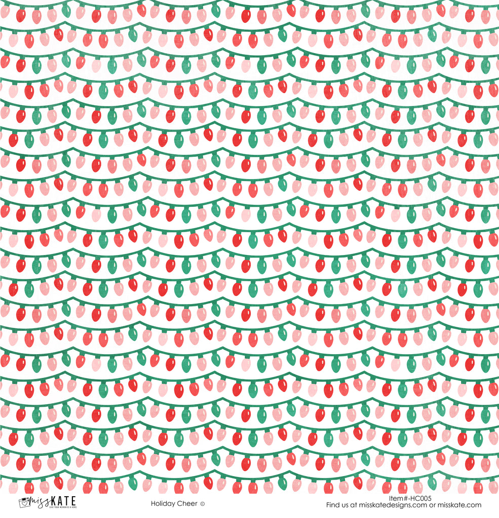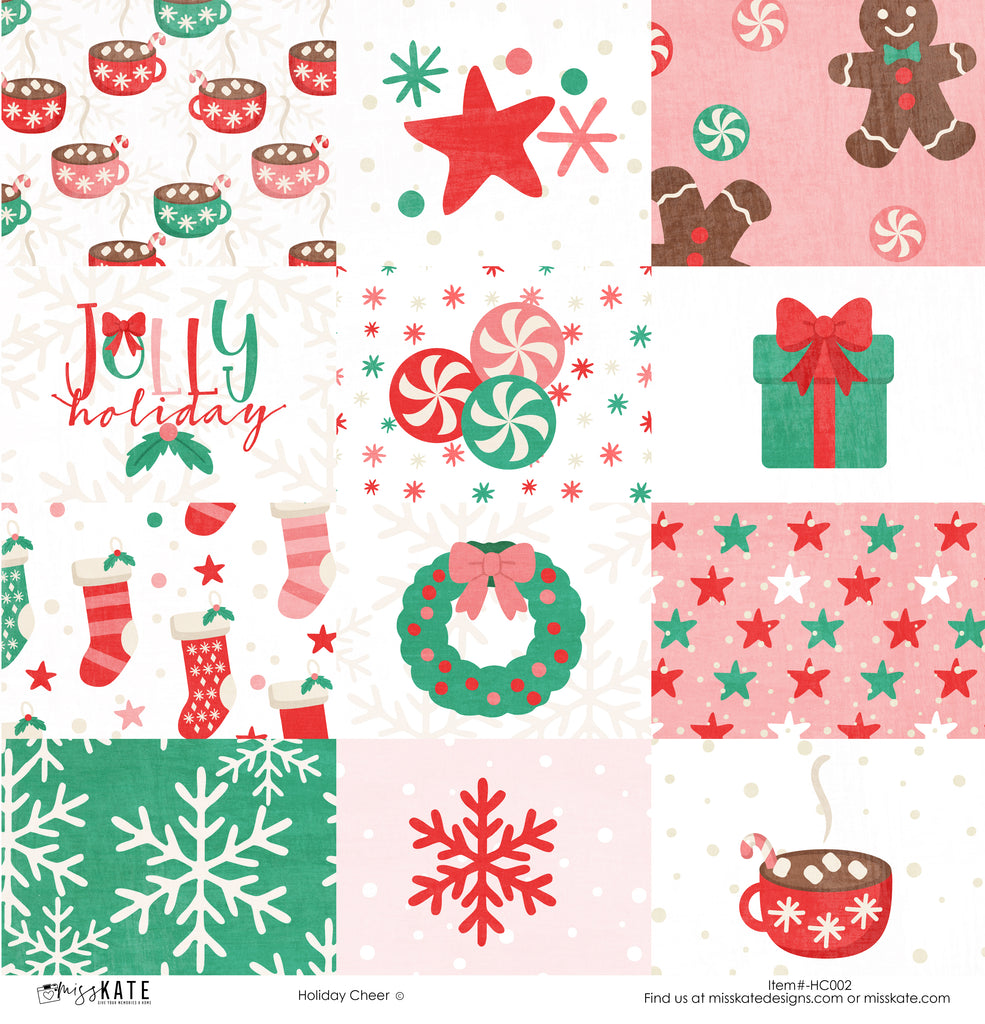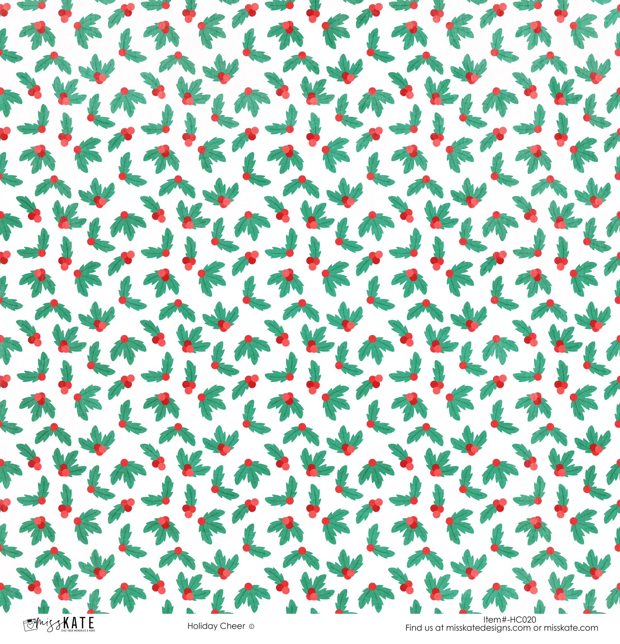 This cheerful holiday paper collection showcases a bright and playful Christmas color palette of red, green, pink, and soft cream tones. A wide variety of festive patterns fill the page, including candy canes, gingerbread cookies, ornaments, holly, snowflakes, Santa faces, plaid, stripes, and whimsical holiday phrases. The mix of classic motifs and modern illustrations creates a joyful, family-friendly feel that’s perfect for documenting seasonal memories. Centered on the page, the “Holiday Cheer” title ties the collection together, while the coordinated sticker sheet along the bottom features matching icons, sentiments, and decorative elements for easy embellishing. Overall, the collection feels warm, nostalgic, and fun—ideal for Christmas scrapbooking, card making, and holiday crafts.