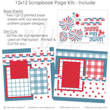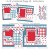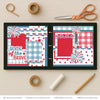 Description:This patriotic scrapbook layout titled "Home of the Brave" bursts with red, white, and blue pride, making it perfect for celebrating Independence Day, military appreciation, or any all-American moment. The design features a classic Americana color palette, with patterned papers in red polka dots, blue and red gingham, star prints, and a deep blue plaid background that ties everything together. The left page showcases a bold “Home of the Brave” title, accented by red, white, and blue stars, along with a large firework embellishment at the top for a festive touch. The layout includes multiple rectangular photo mats in coordinating patterns, all bordered in crisp red and blue frames. Decorative elements such as firework bursts, cascading star clusters, and patriotic banner trims with red bows add layers of excitement and movement across the spread. The symmetry between the two pages, combined with the bright and bold accents, creates a cohesive and celebratory scene. This layout is ideal for preserving memories from Fourth of July parades, fireworks displays, backyard BBQs, or honoring the service of loved ones in the armed forces. |