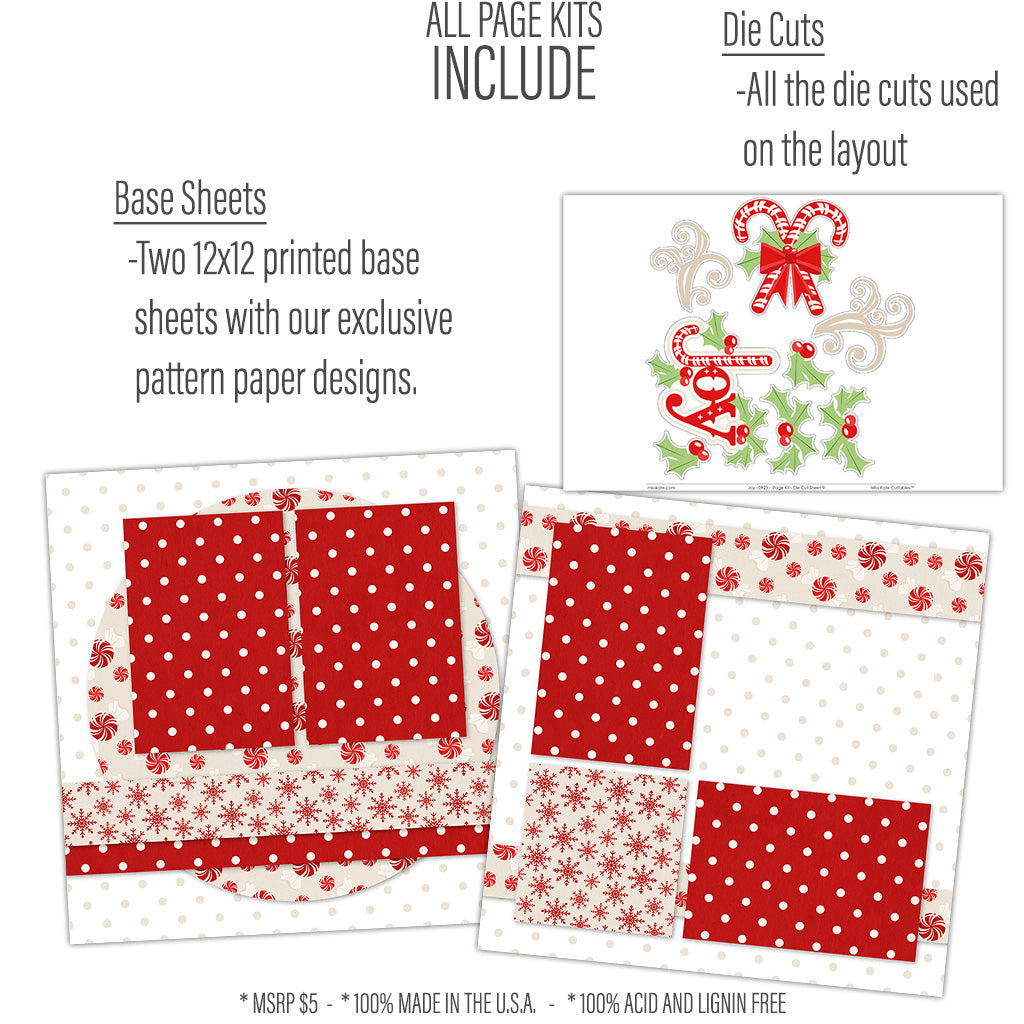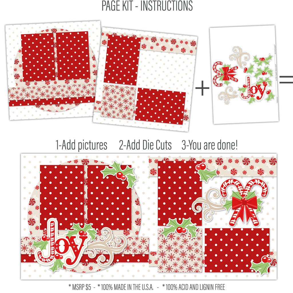 Die Cuts: All the die cuts you see on our layout picture, all cut out for you and ready to embellish your page kit!
