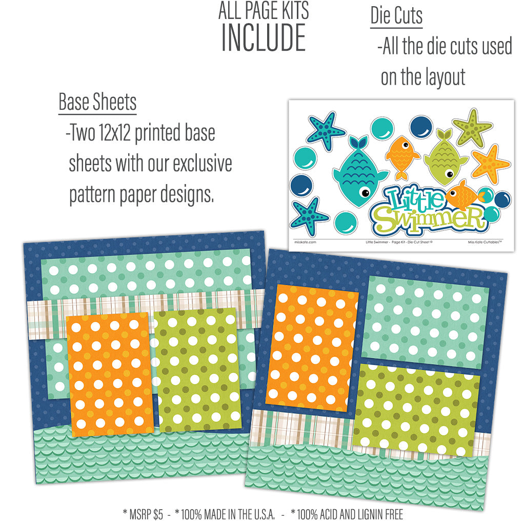 About our Page Kits Our Page Kits include proprietary Miss Kate Pattern Paper and Miss Kate Die Cuts. The cover page features full-color high-resolution pictures of the assembled layouts. Die cuts are left in the sheet and ready for you to easily pop out, this allows you to see them all spread out and helps prevent any accidental loss. These page kits are adorable, easy to do, and at such a great price! We love our Page Kits and think you will too! |