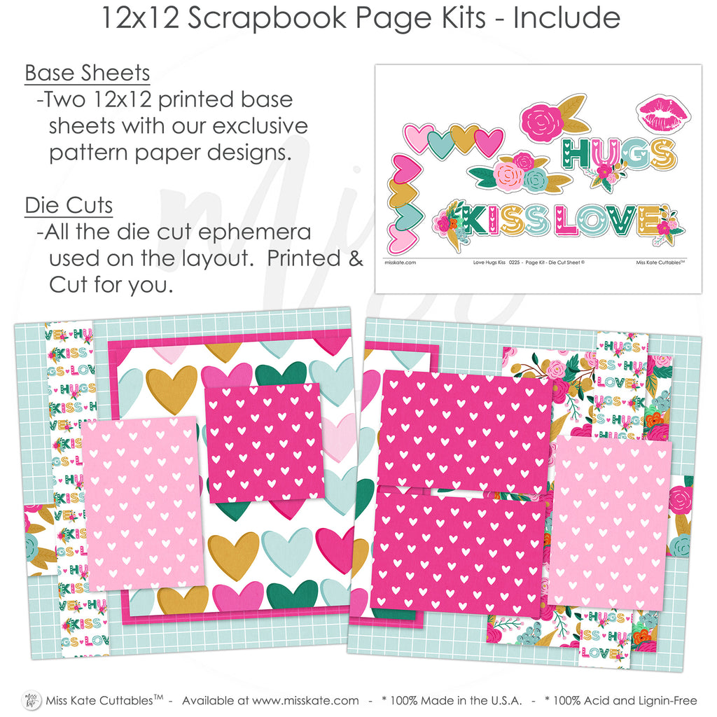 About our Page Kits Our Page Kits include proprietary Miss Kate Pattern Paper and Miss Kate Die Cuts. The cover page features full-color high-resolution pictures of the assembled layouts. Die cuts are left in the sheet and ready for you to easily pop out, this allows you to see them all spread out and helps prevent any accidental loss. These page kits are adorable, easy to do, and at such a great price! We love our Page Kits and think you will too! |