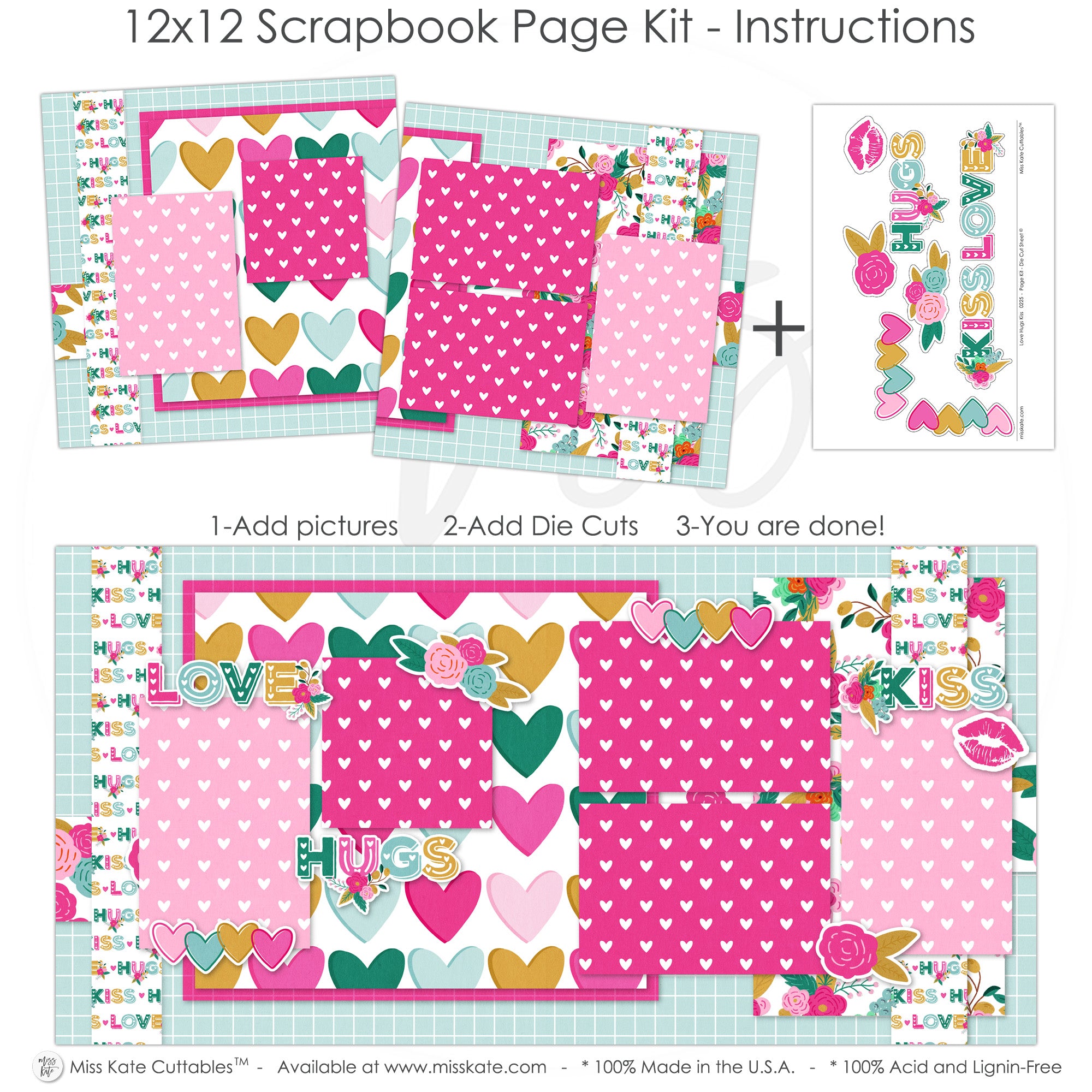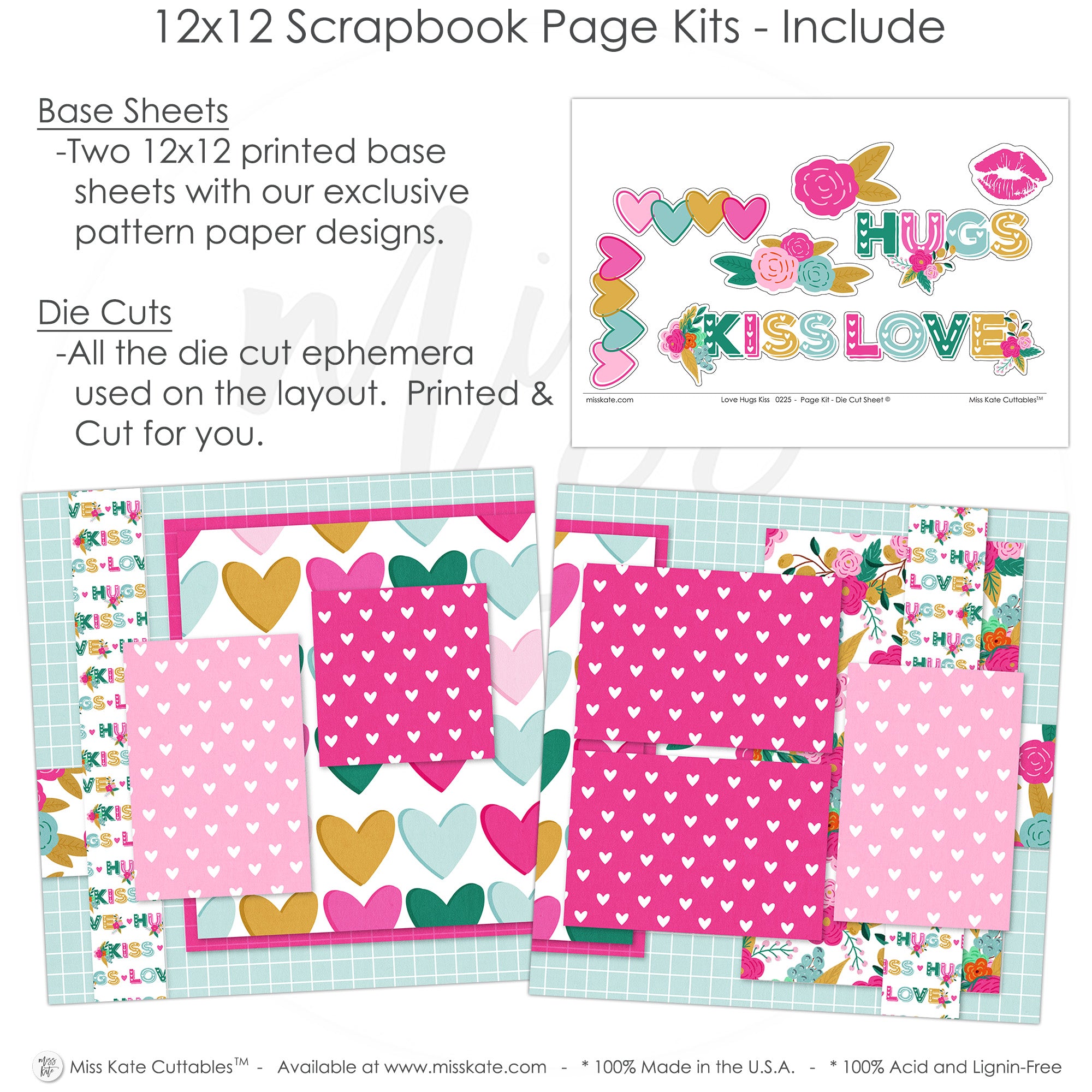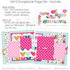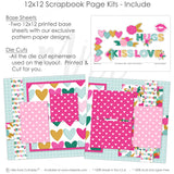 This 12x12 scrapbook page kit is a colorful and playful design, perfect for capturing love-filled moments. With vibrant heart patterns, affectionate word art, and floral embellishments, it’s ideal for Valentine’s Day, anniversaries, or celebrating friendships. The mix of bold colors and fun die-cuts makes it easy to create an eye-catching scrapbook layout. Use it for romantic memories, heartfelt notes, or fun snapshots with loved ones. Here is what you get in our Page Kits
