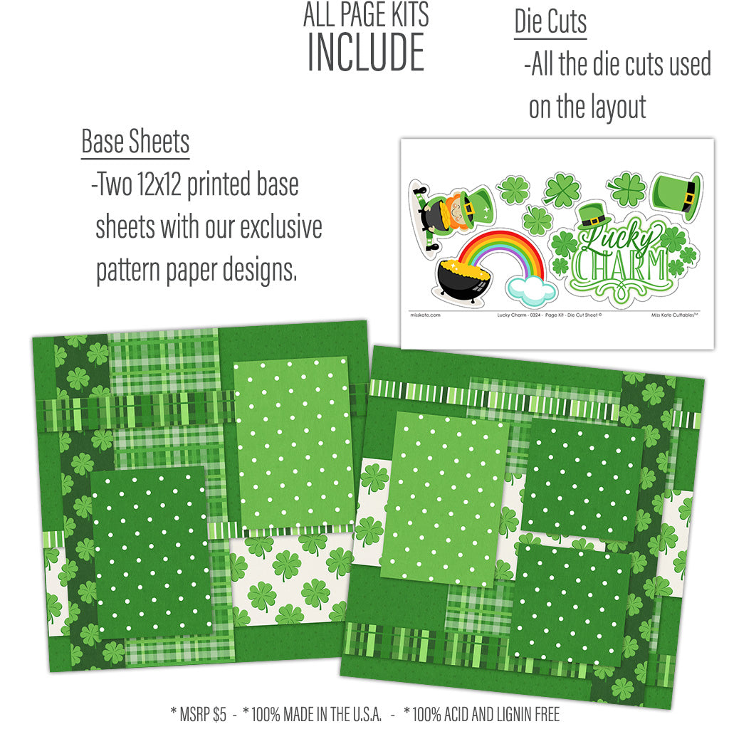 About our Page Kits Our Page Kits include proprietary Miss Kate Pattern Paper and Miss Kate Die Cuts. The cover page features full-color high-resolution pictures of the assembled layouts. Die cuts are left in the sheet and ready for you to easily pop out, this allows you to see them all spread out and helps prevent any accidental loss. These page kits are adorable, easy to do, and at such a great price! We love our Page Kits and think you will too! |