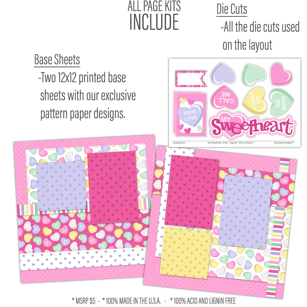 About our Page Kits Our Page Kits include proprietary Miss Kate Pattern Paper and Miss Kate Die Cuts. The cover page features full-color high-resolution pictures of the assembled layouts. Die cuts are left in the sheet and ready for you to easily pop out, this allows you to see them all spread out and helps prevent any accidental loss. These page kits are adorable, easy to do, and at such a great price! We love our Page Kits and think you will too! |